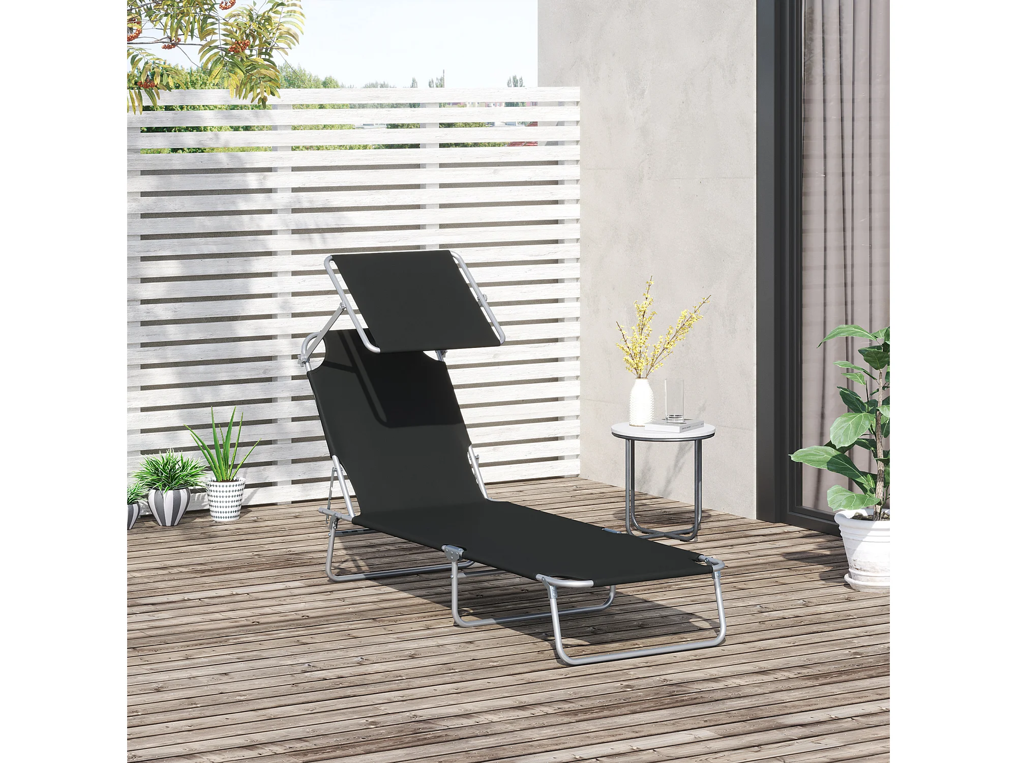Chaise longue pliable avec toit Aluminium et textilène Noir