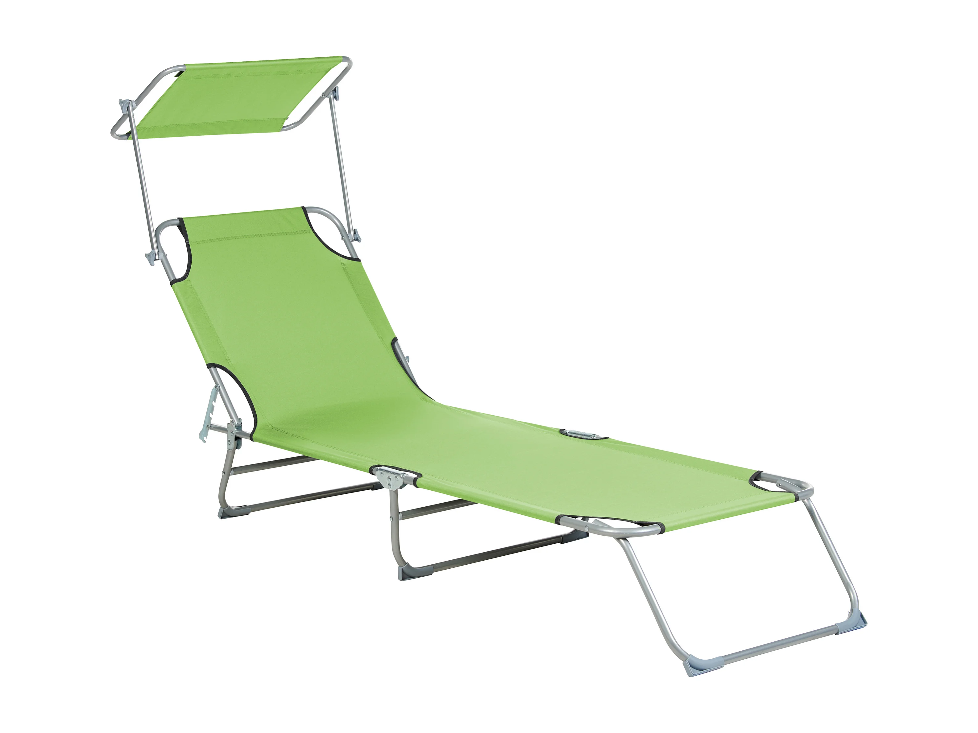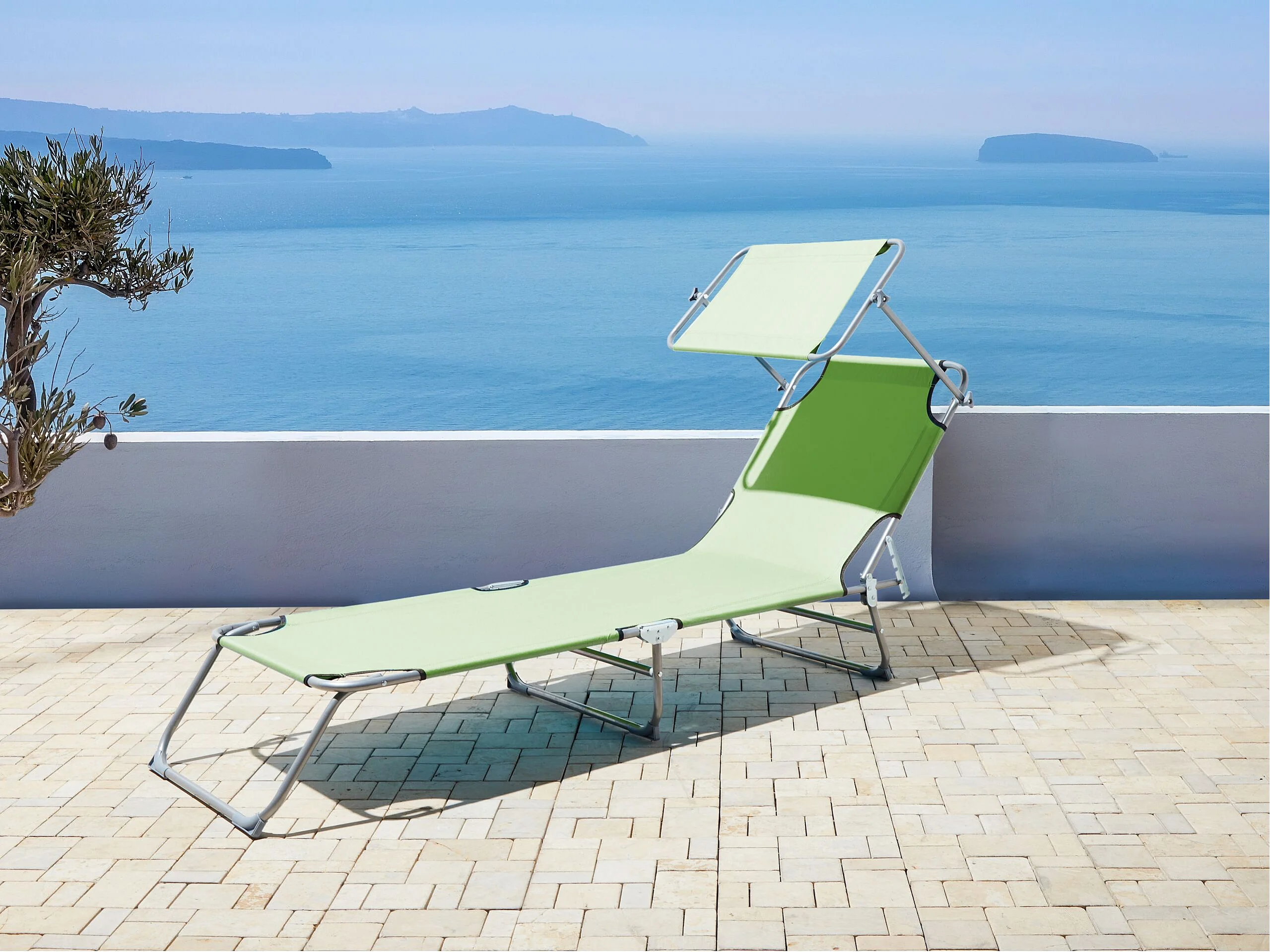 Bain de soleil transat pliable dossier réglable 5 positions acier teslin vert
