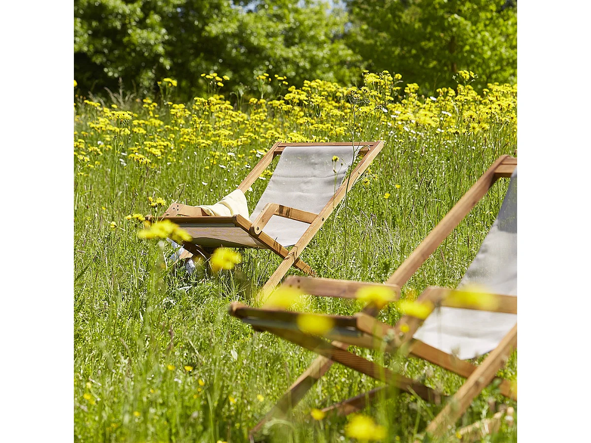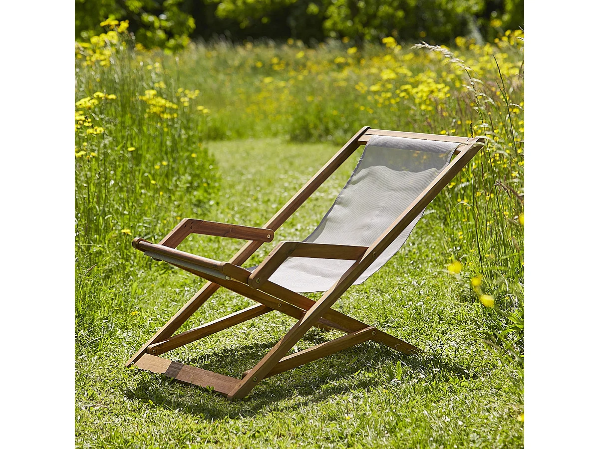 Transat en acacia massif et textilène gris