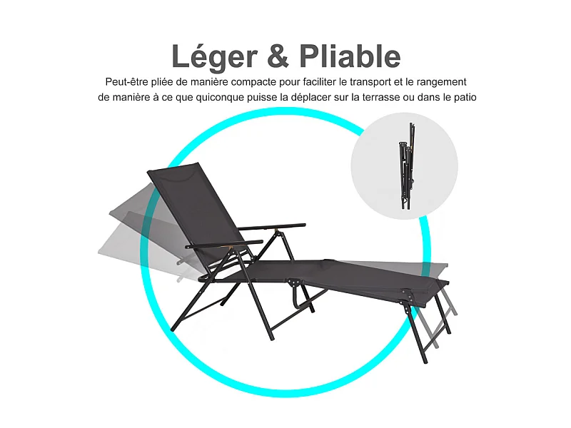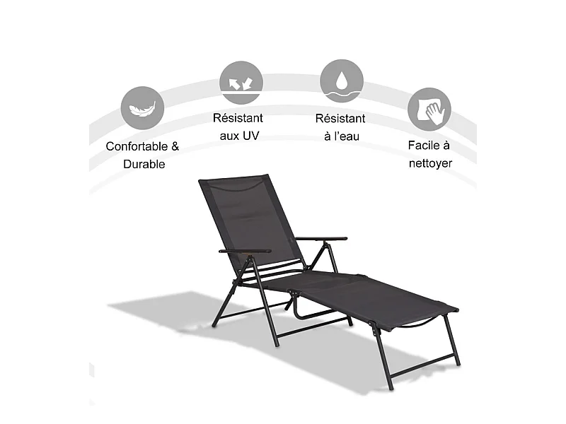 Chaise longue et auvent gris foncé 167x80x195 cm tissu et acier