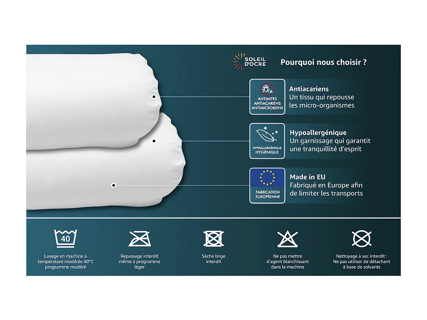 Traversin Anti-Acariens LUXE largeur 140 cm, par Soleil d'ocre