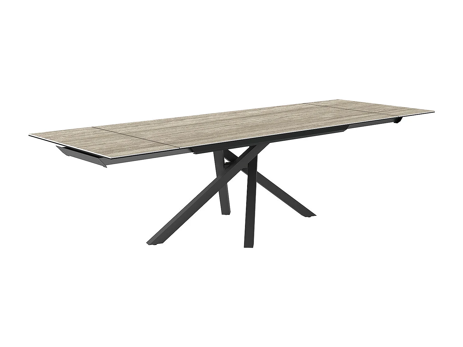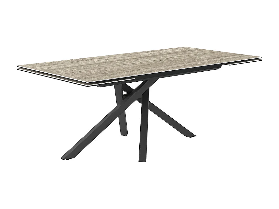 Travertino extensible à table spin - gris charbon, rectangulaire avec bord régulier, grès en travertin argenté