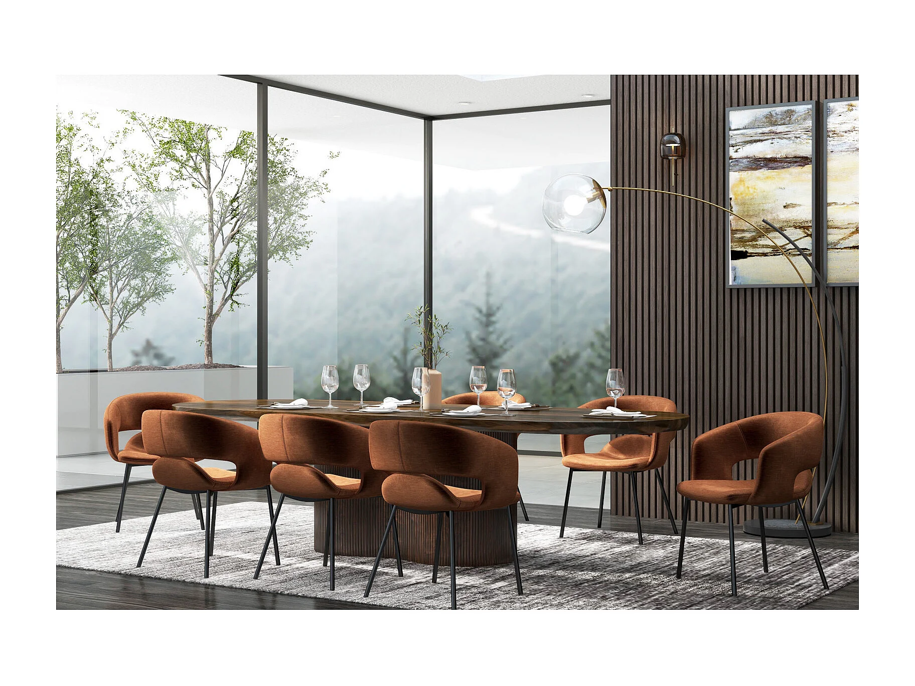 TRAVIS-Fauteuil de table en tissu Retro Terracota et métal noir