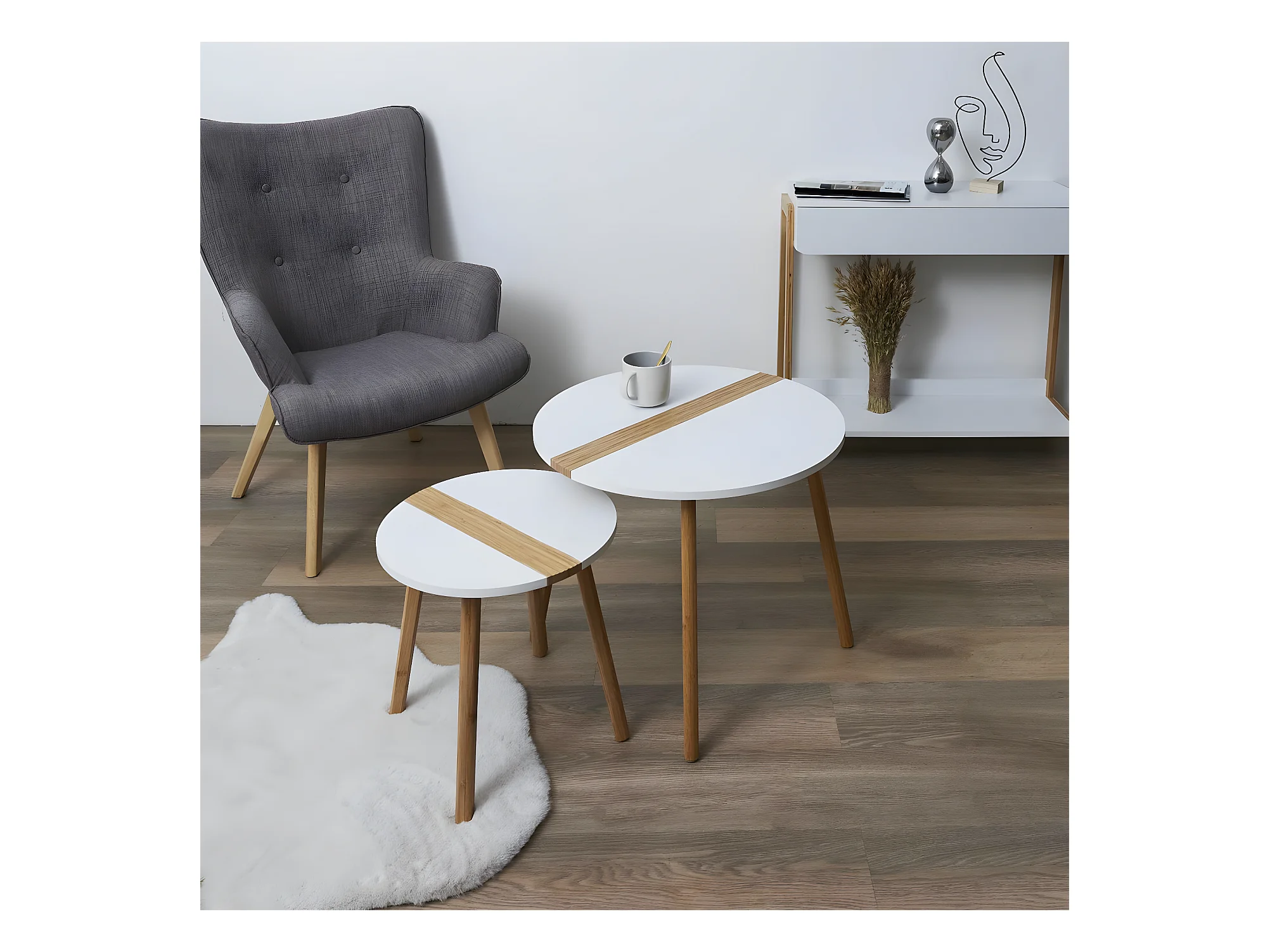 TRAZEN - Lot de 2 Tables Gigognes Blanches et Relief Bambou