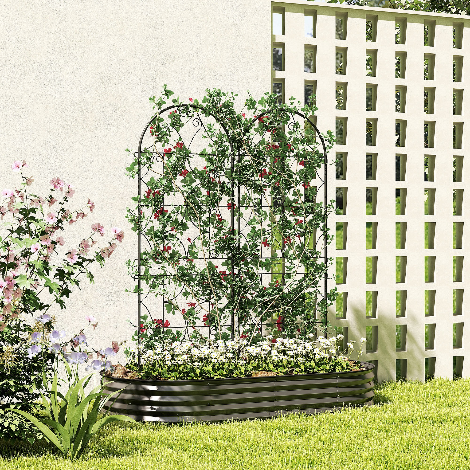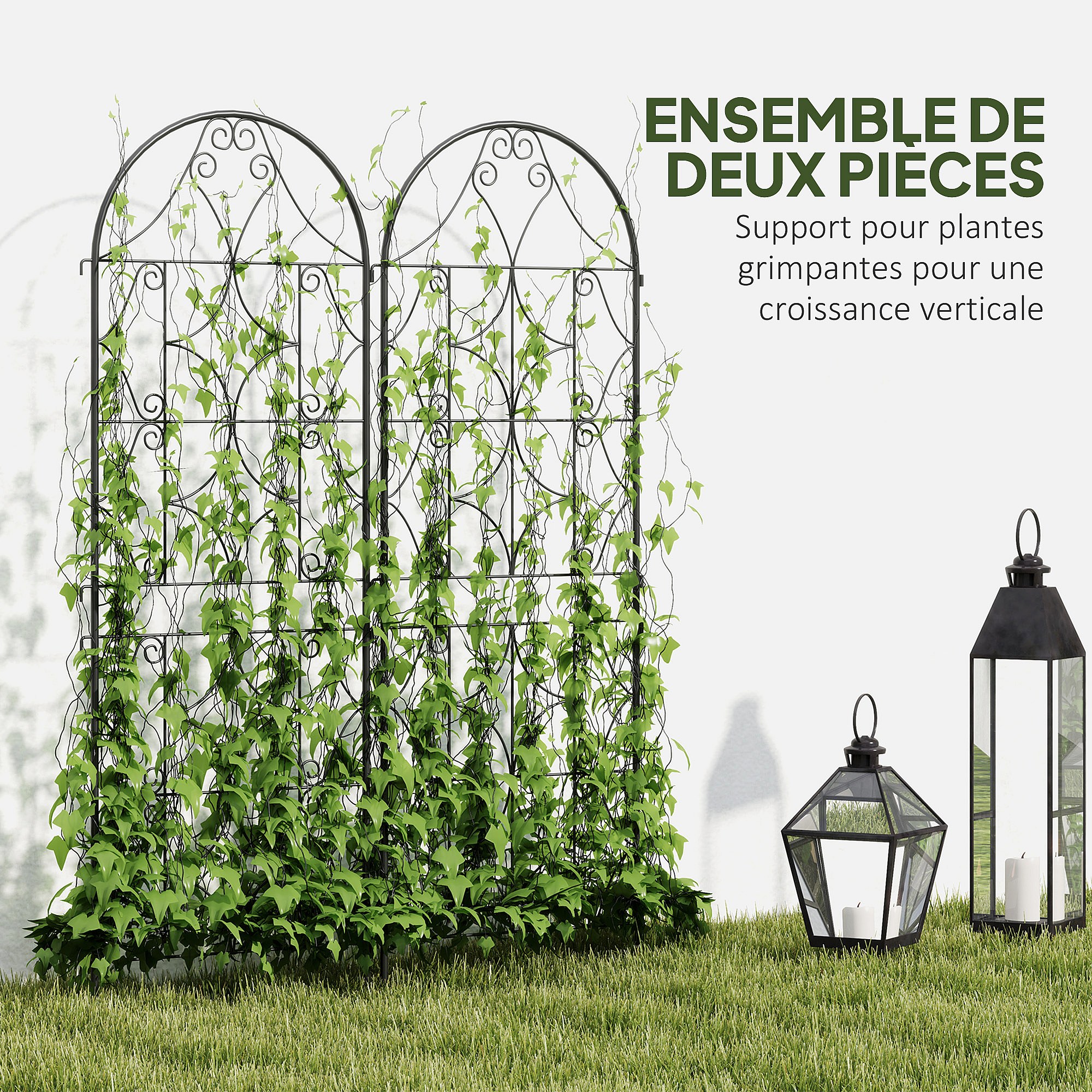 Treillis de jardin lot de 2 supports pour plantes grimpantes - dim. 51L x 152H cm - métal époxy noir
