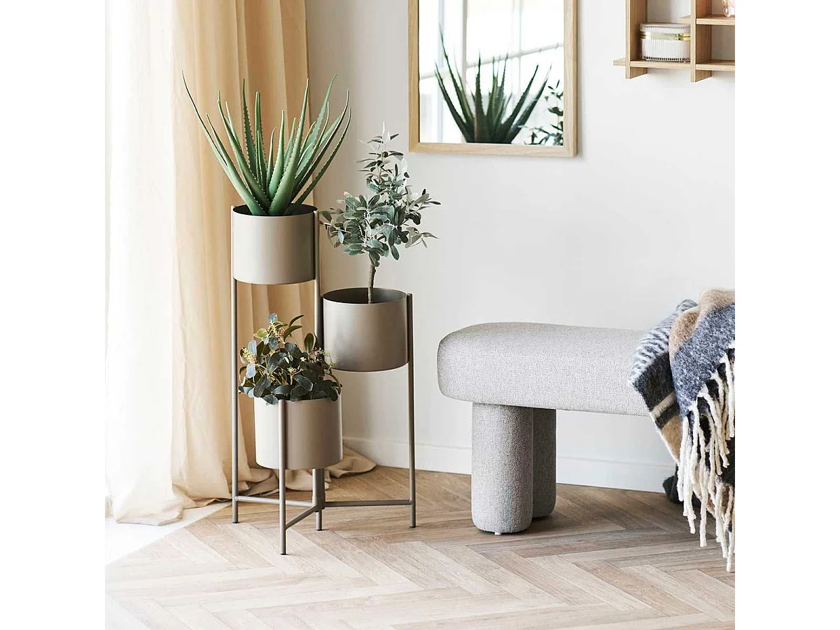 Cache-pot rond sur pieds en Métal Taupe martelé - MARLO