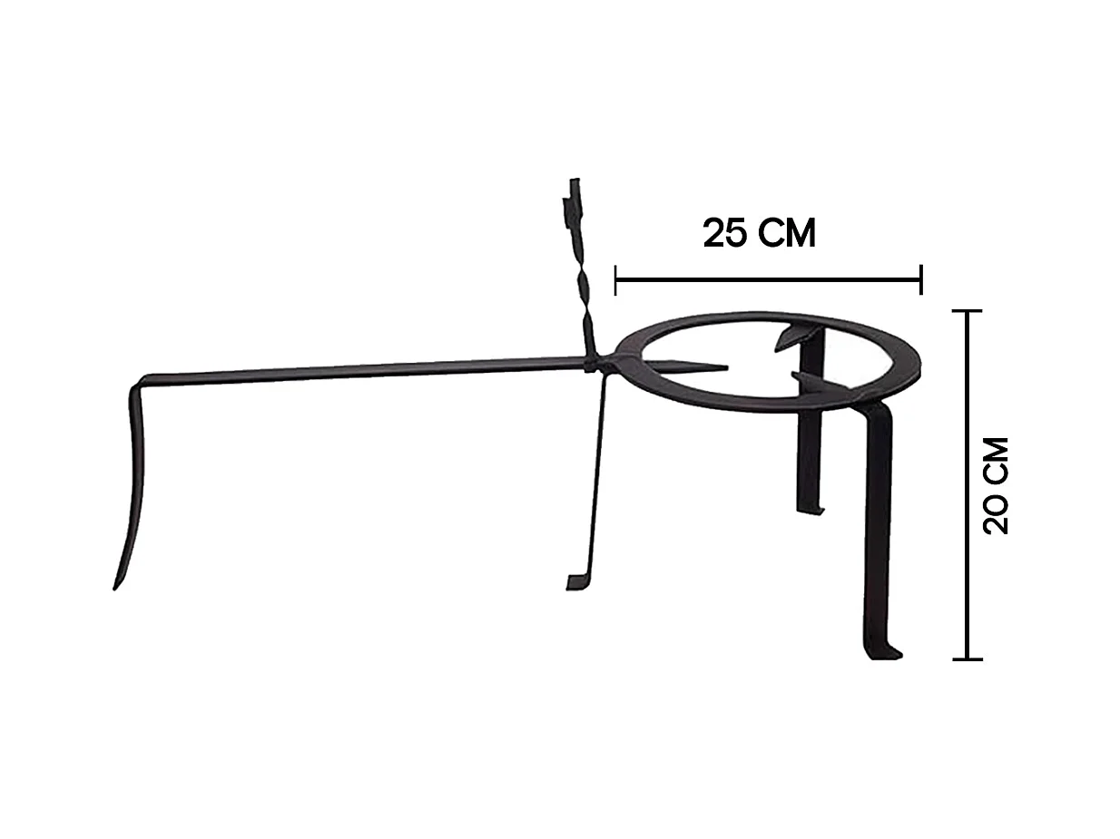 Trépied pour cheminée feux, réchaud, avec pied en fer forgé couleur Noir - diametre 25 x hauteur 20 cm