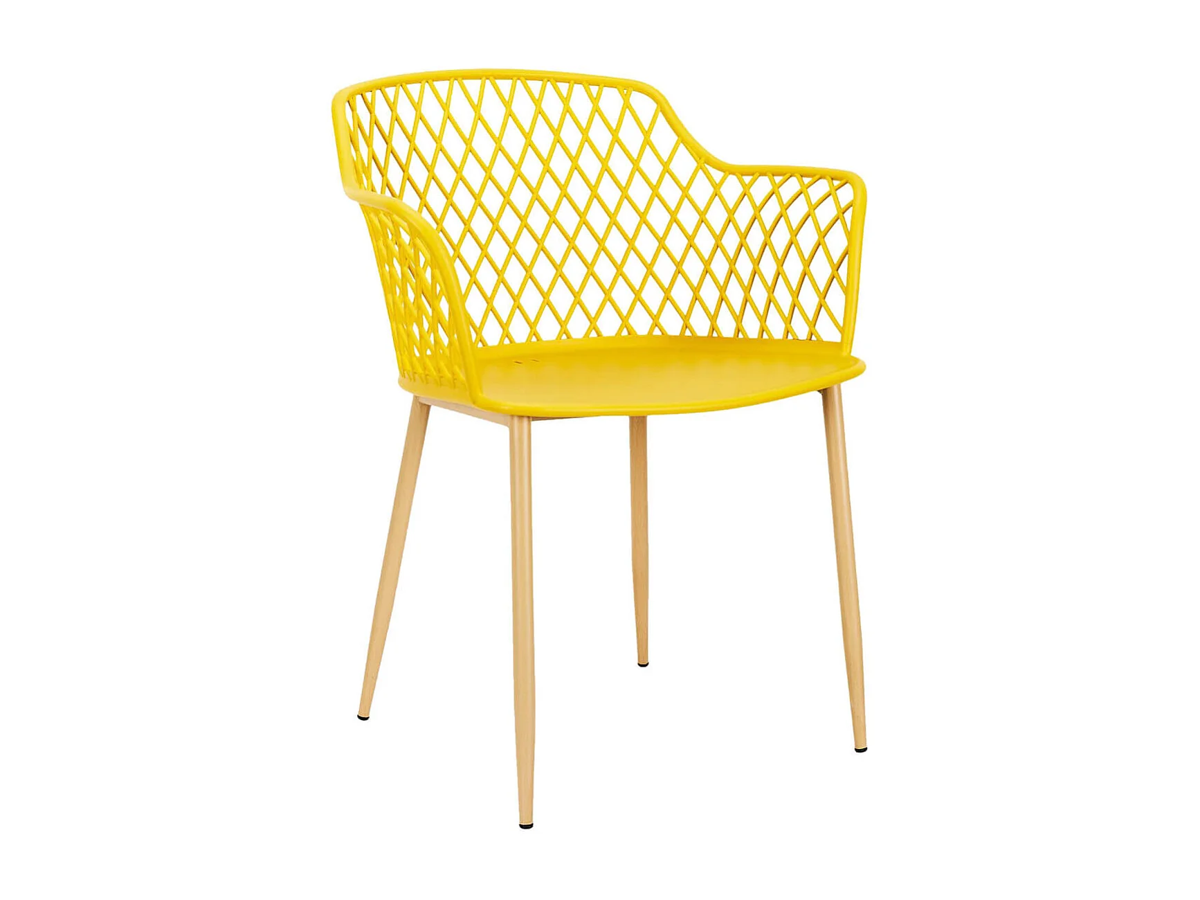TRESSIE - Lot de 4 Fauteuils Jaunes Pieds Effet Bois Verni
