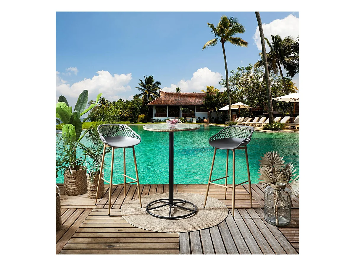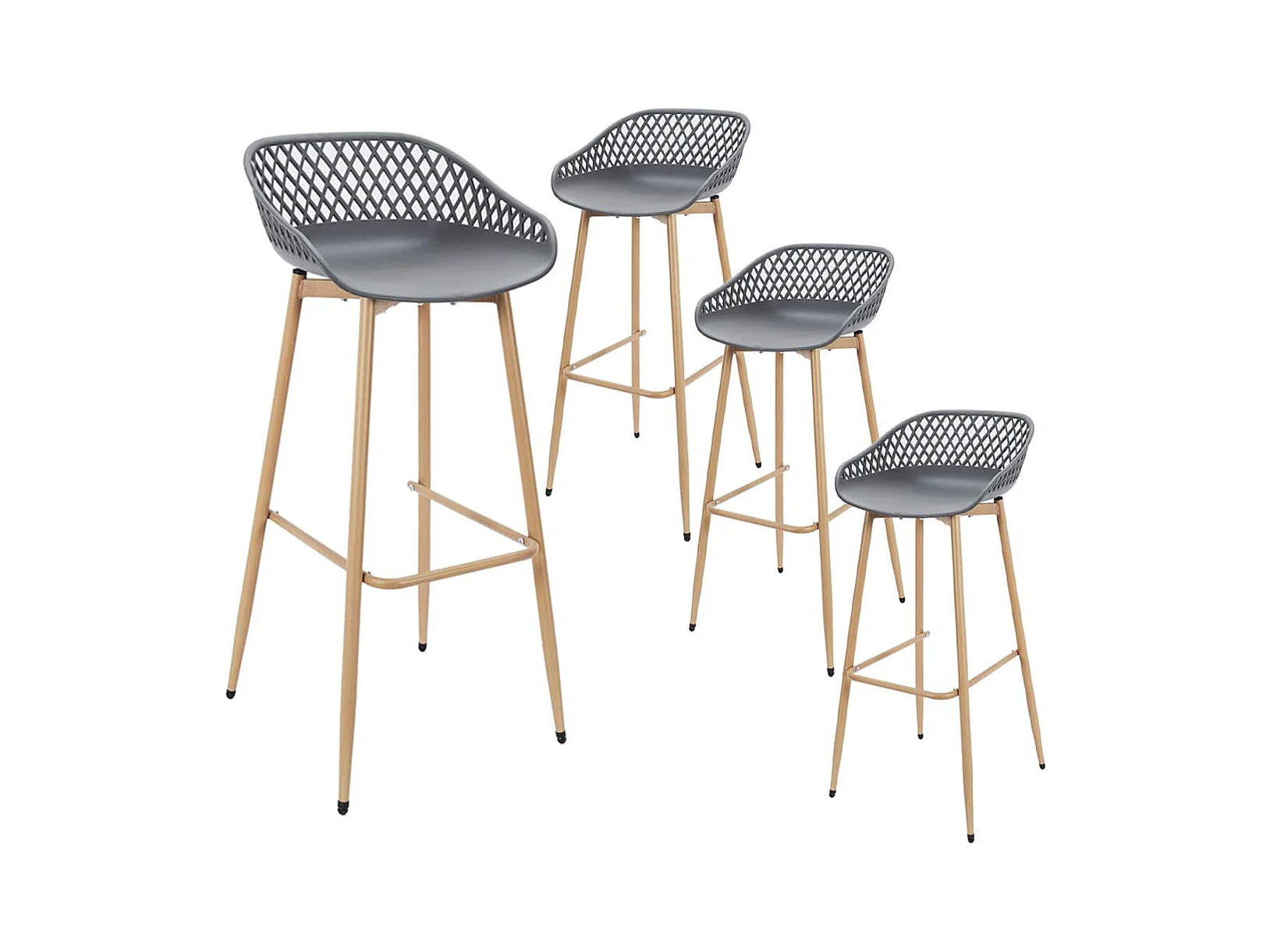 TRESSIE - Lot de 4 Tabourets Gris Pieds Effet Bois Verni