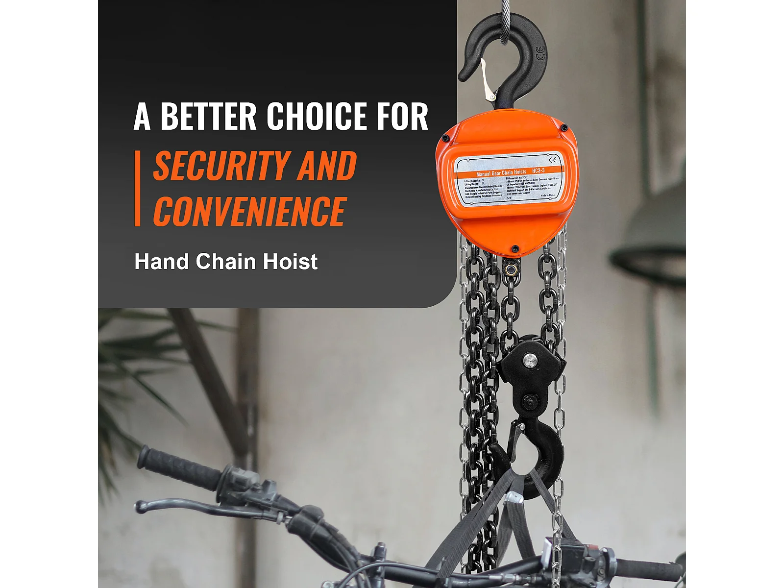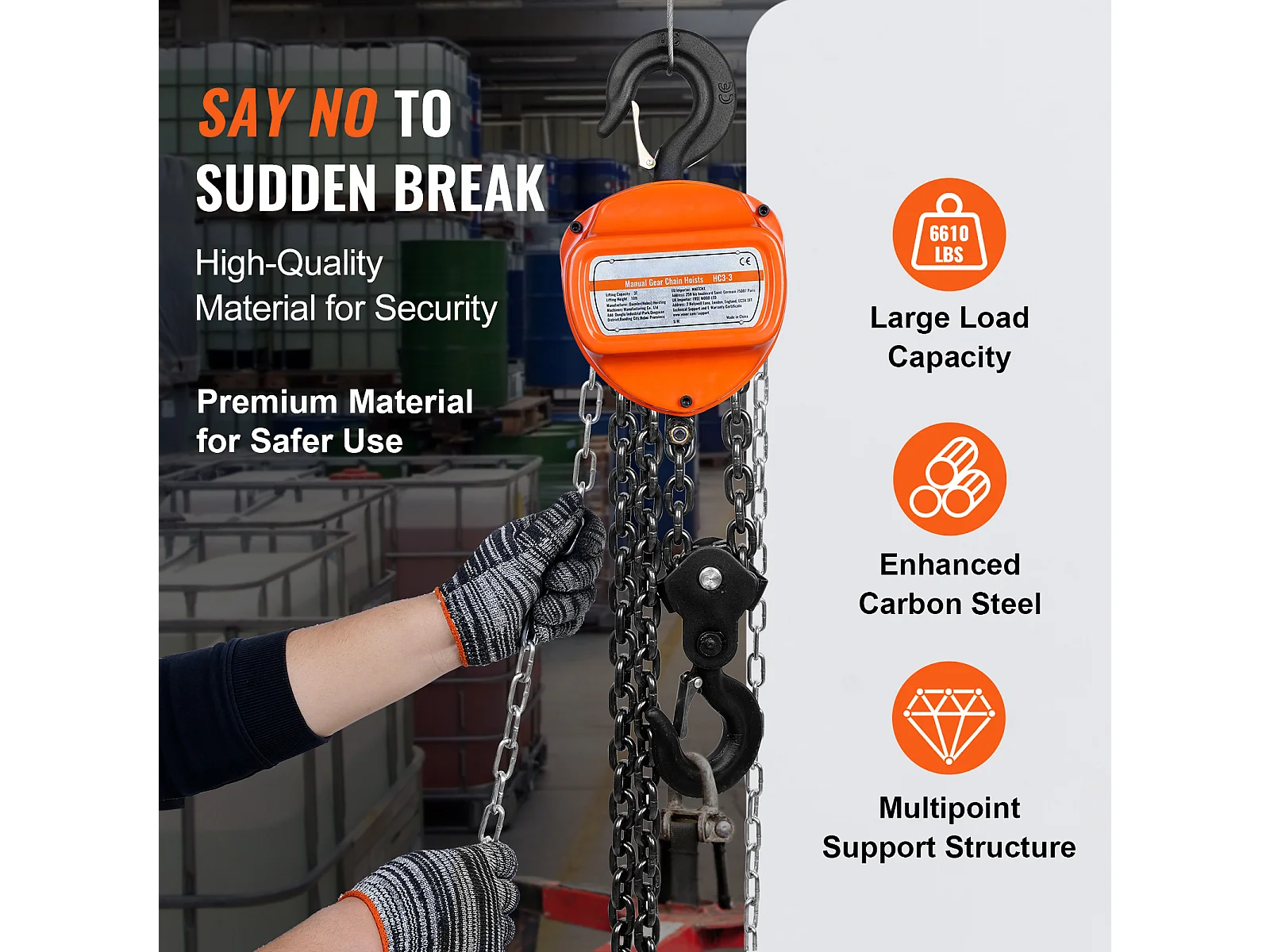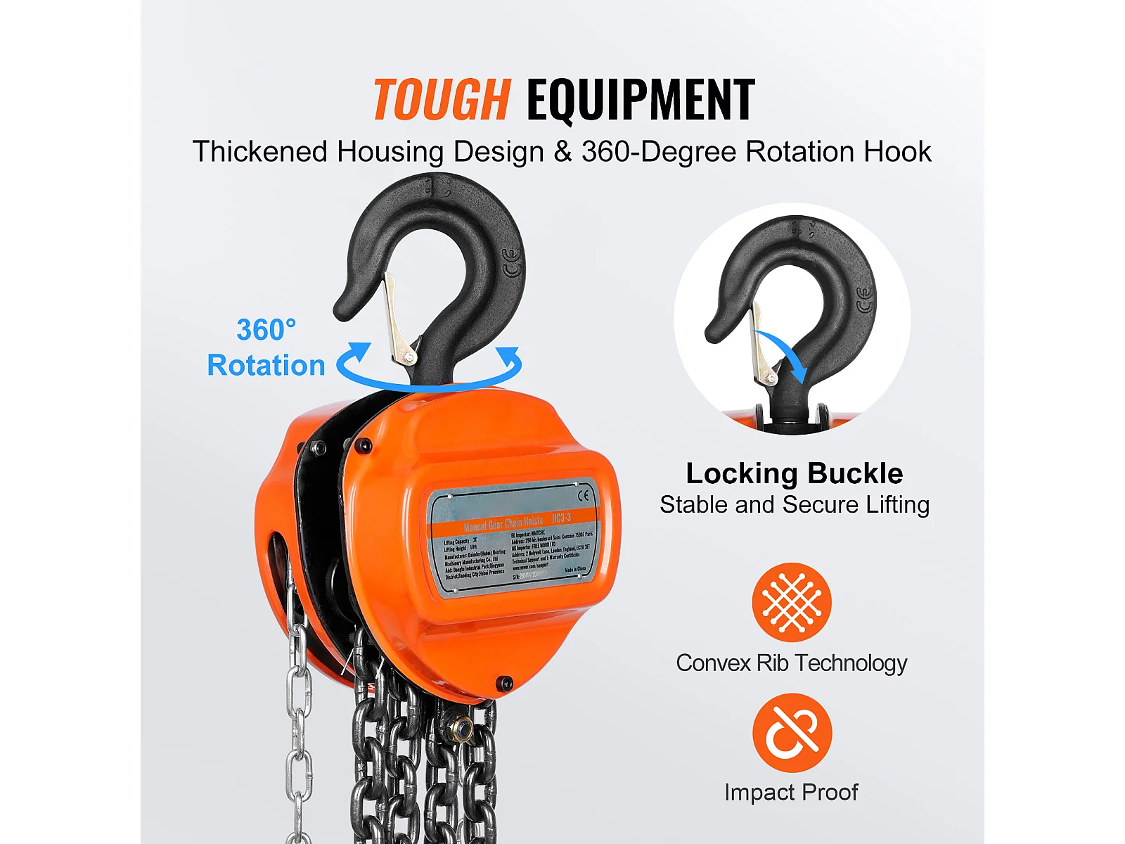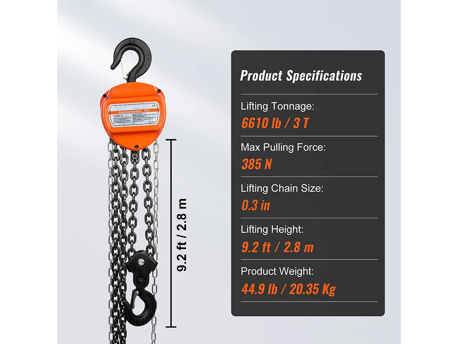 Treuil, SucceBuy Palan à Chaîne 3 Tonnes, Capacité de 6 600 lb, Élévateur de Bloc G80 de 304.8 CM