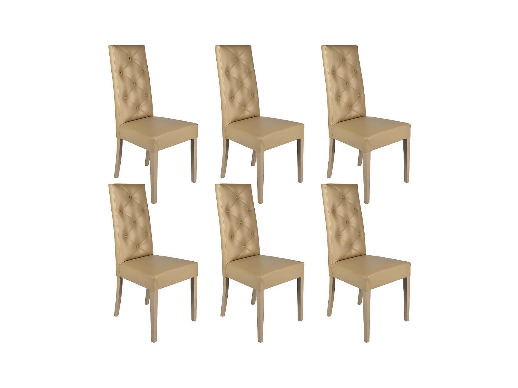 TREVI - Lot de 6 Chaises Simili Taupe et Pieds Laqués