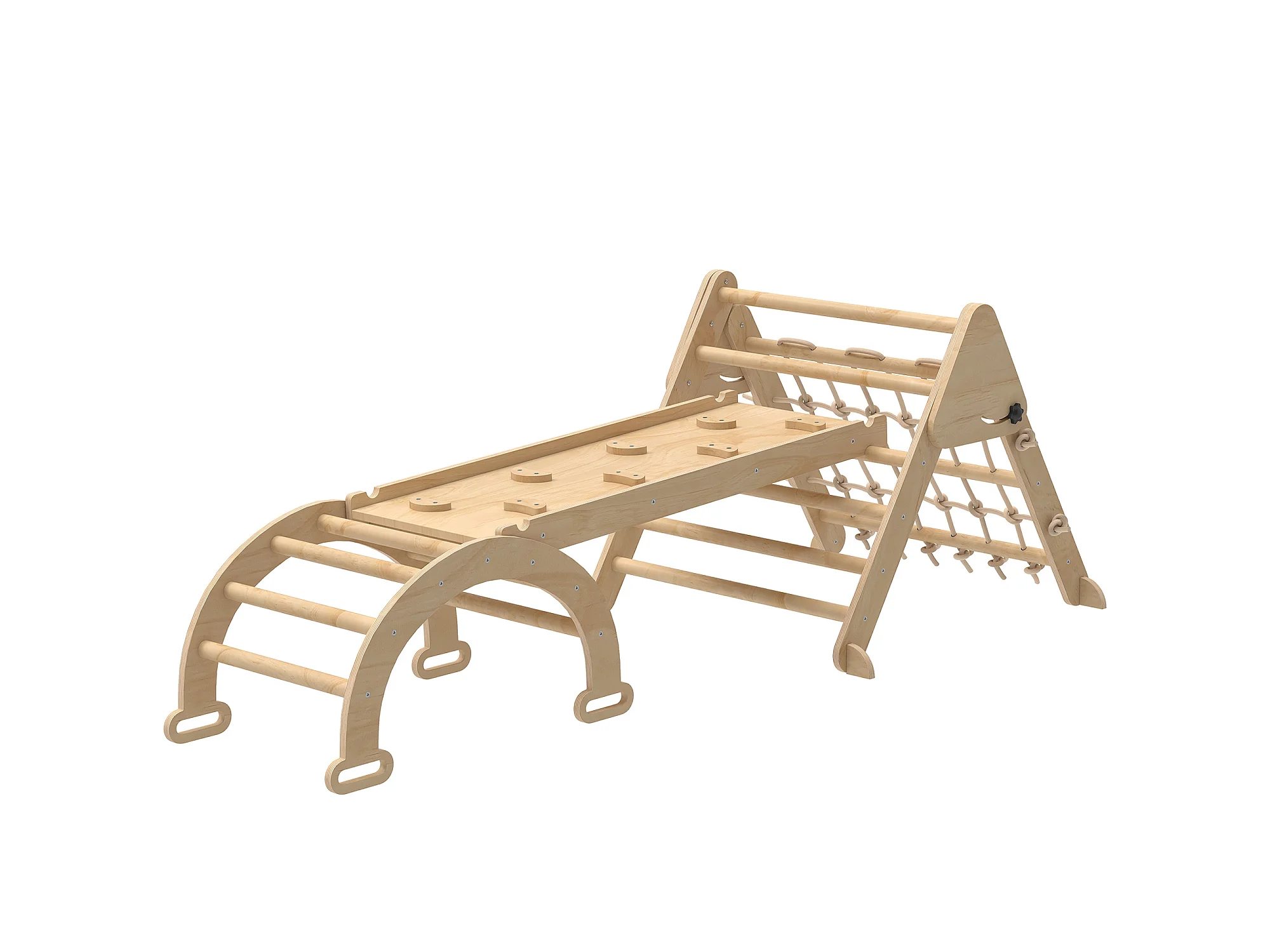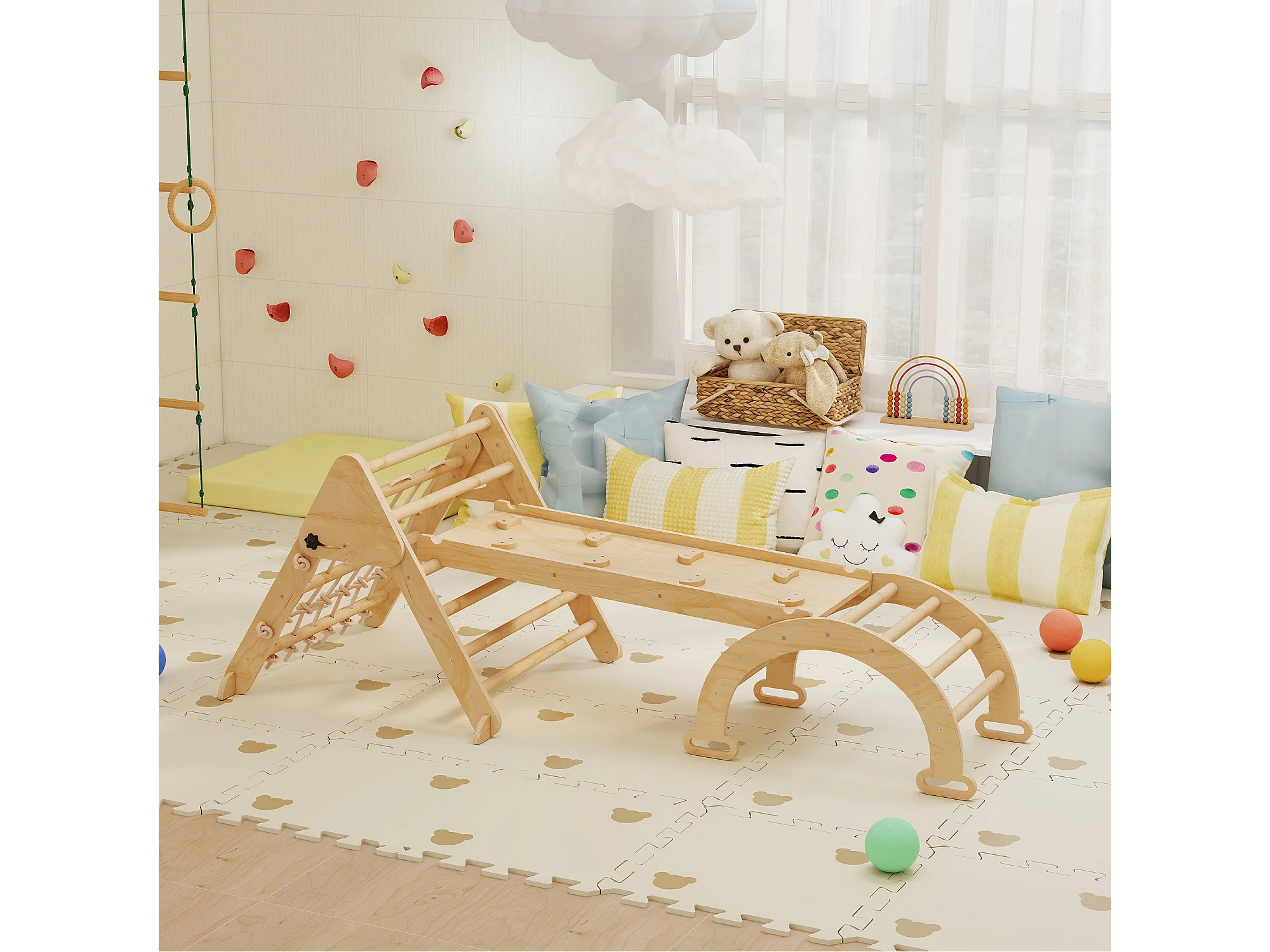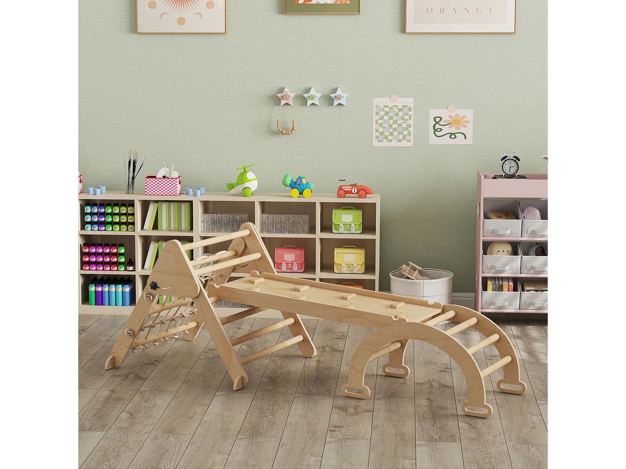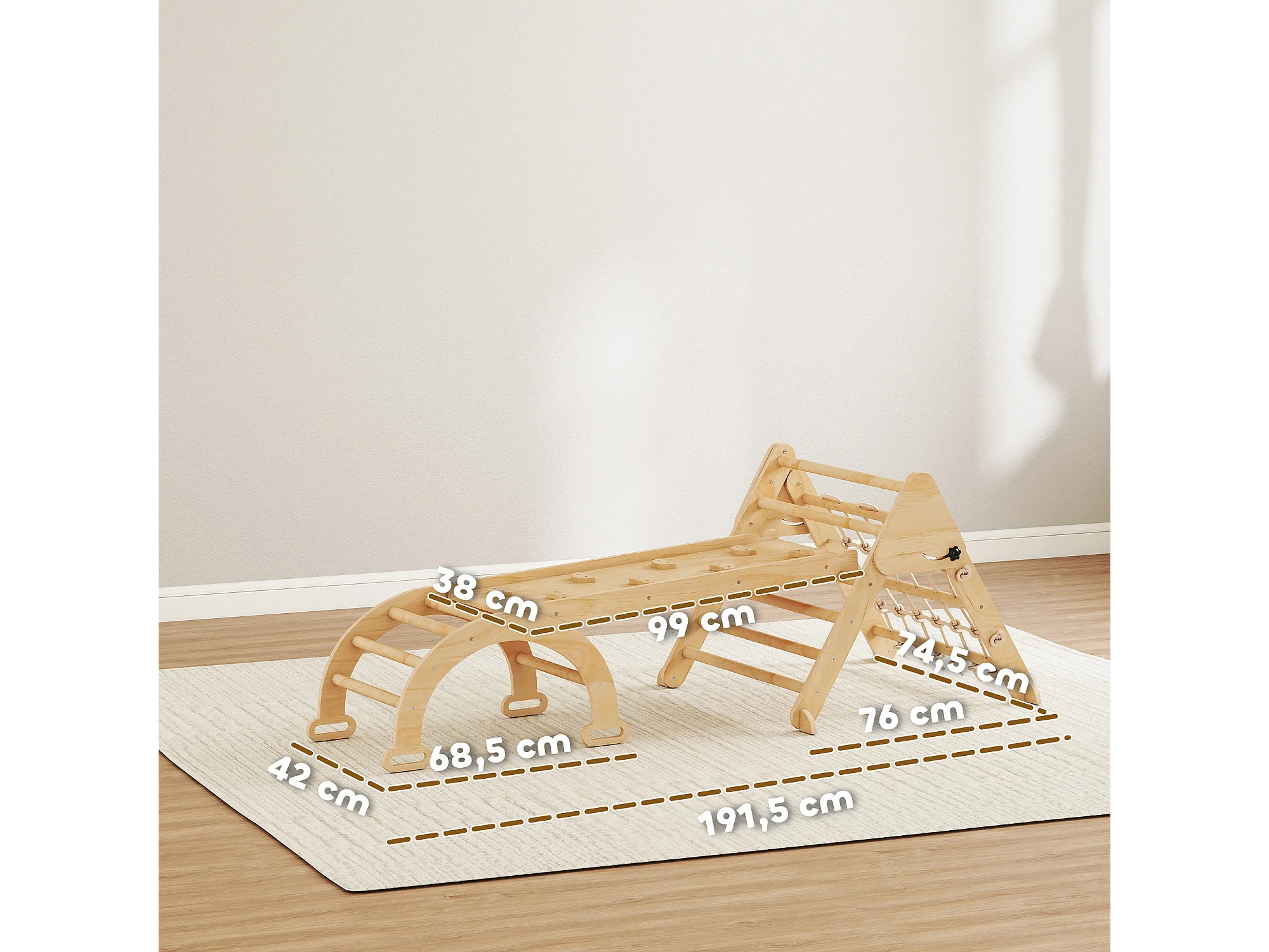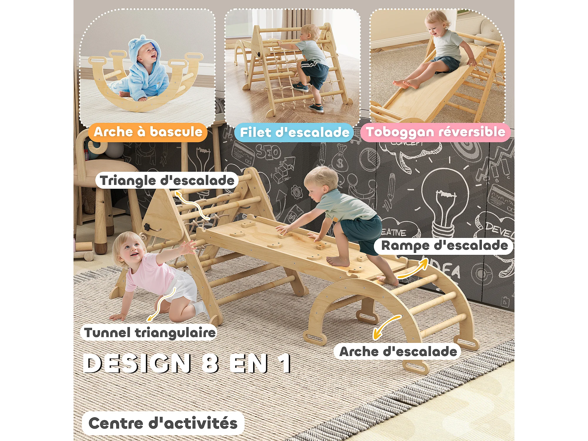 Triangle d'escalade enfant pliable 8 en 1 - aire de jeu enfant - bois naturel