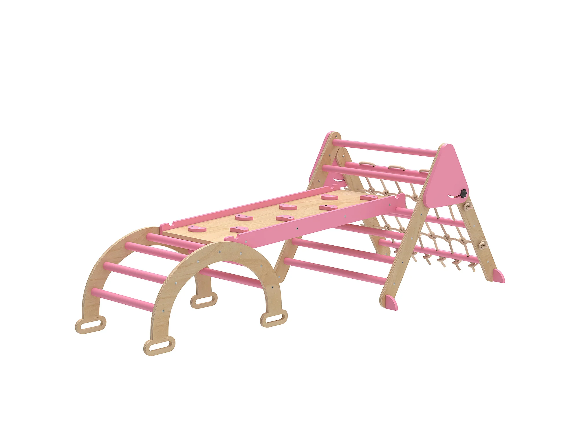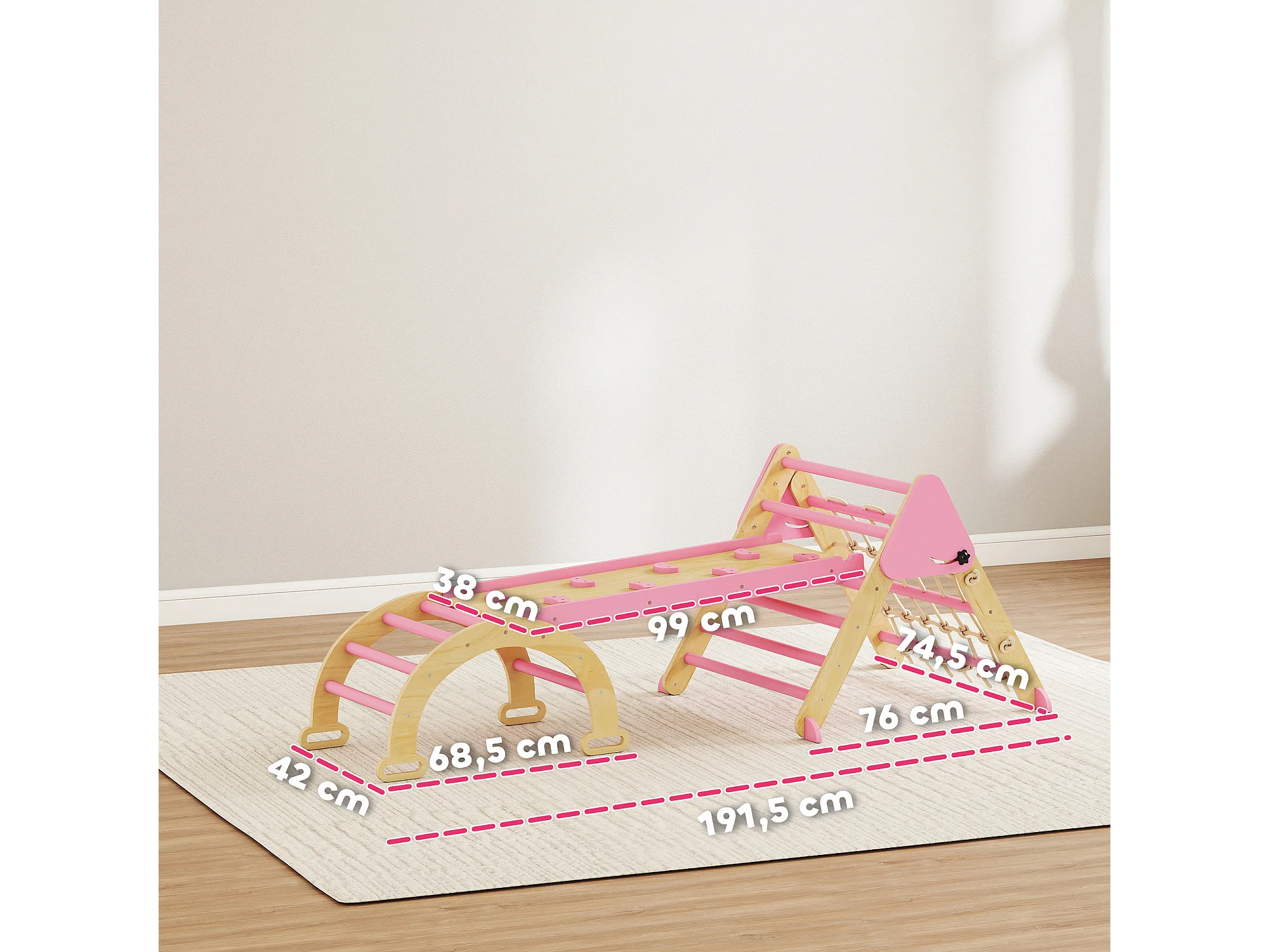Triangle d'escalade enfant pliable 8 en 1 - aire de jeu enfant - bois rose