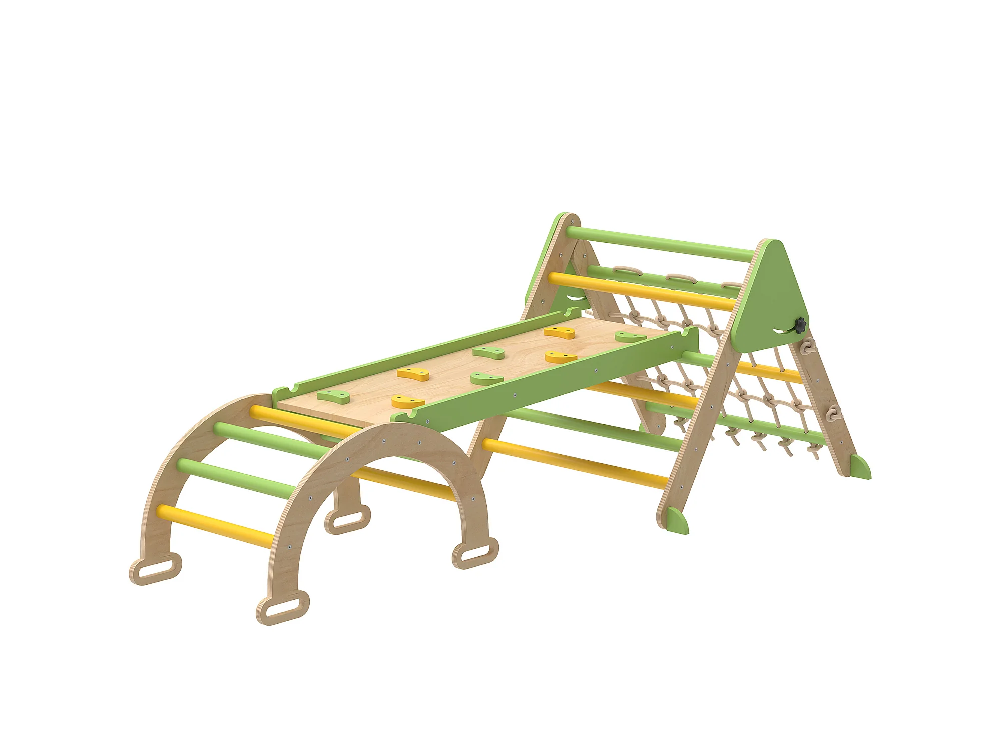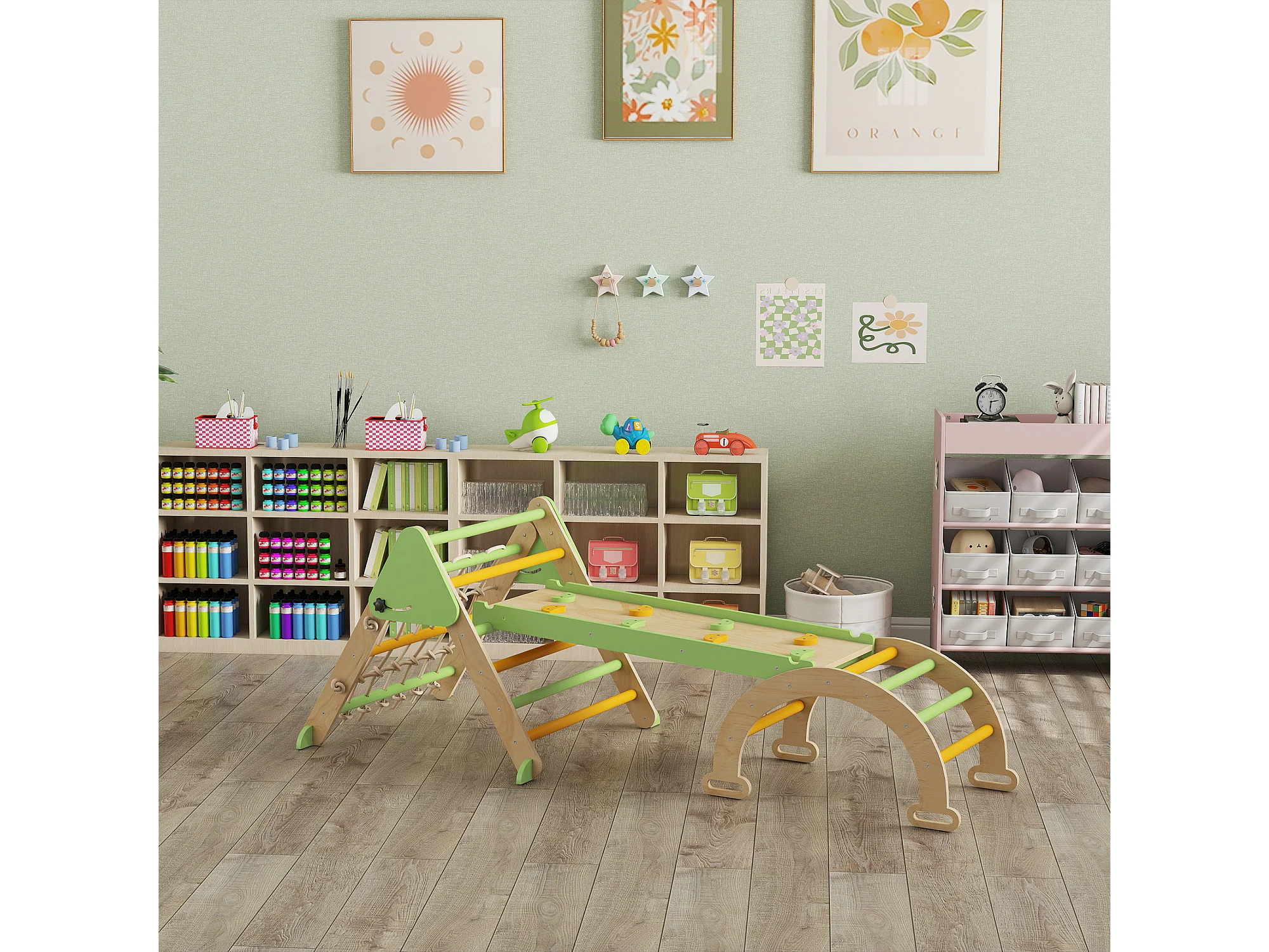 Triangle d'escalade enfant pliable 8 en 1 - aire de jeu enfant - bois vert