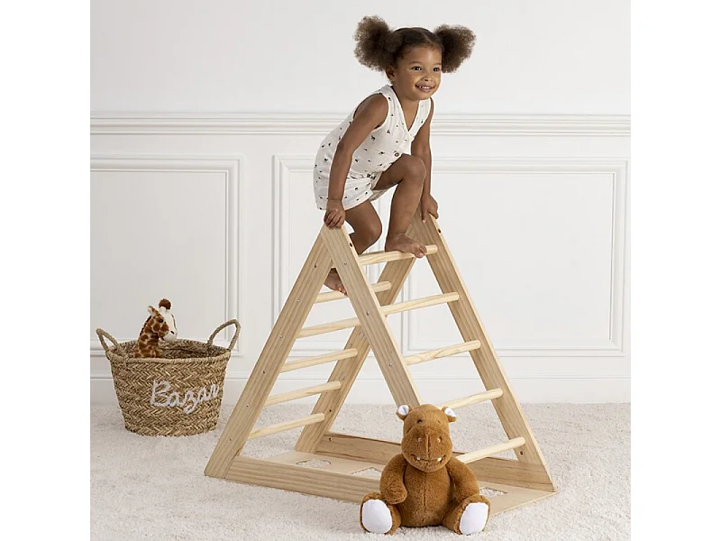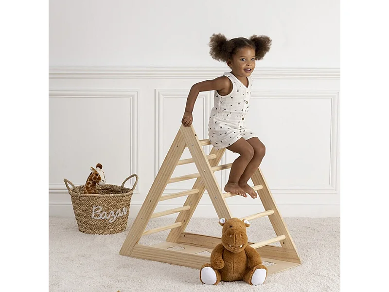 Triangle d'Escalade en Bois pour Bebe 1+ An/4 en 1 Échelle et Planche d'Escalade avec Filet Charge 50KG