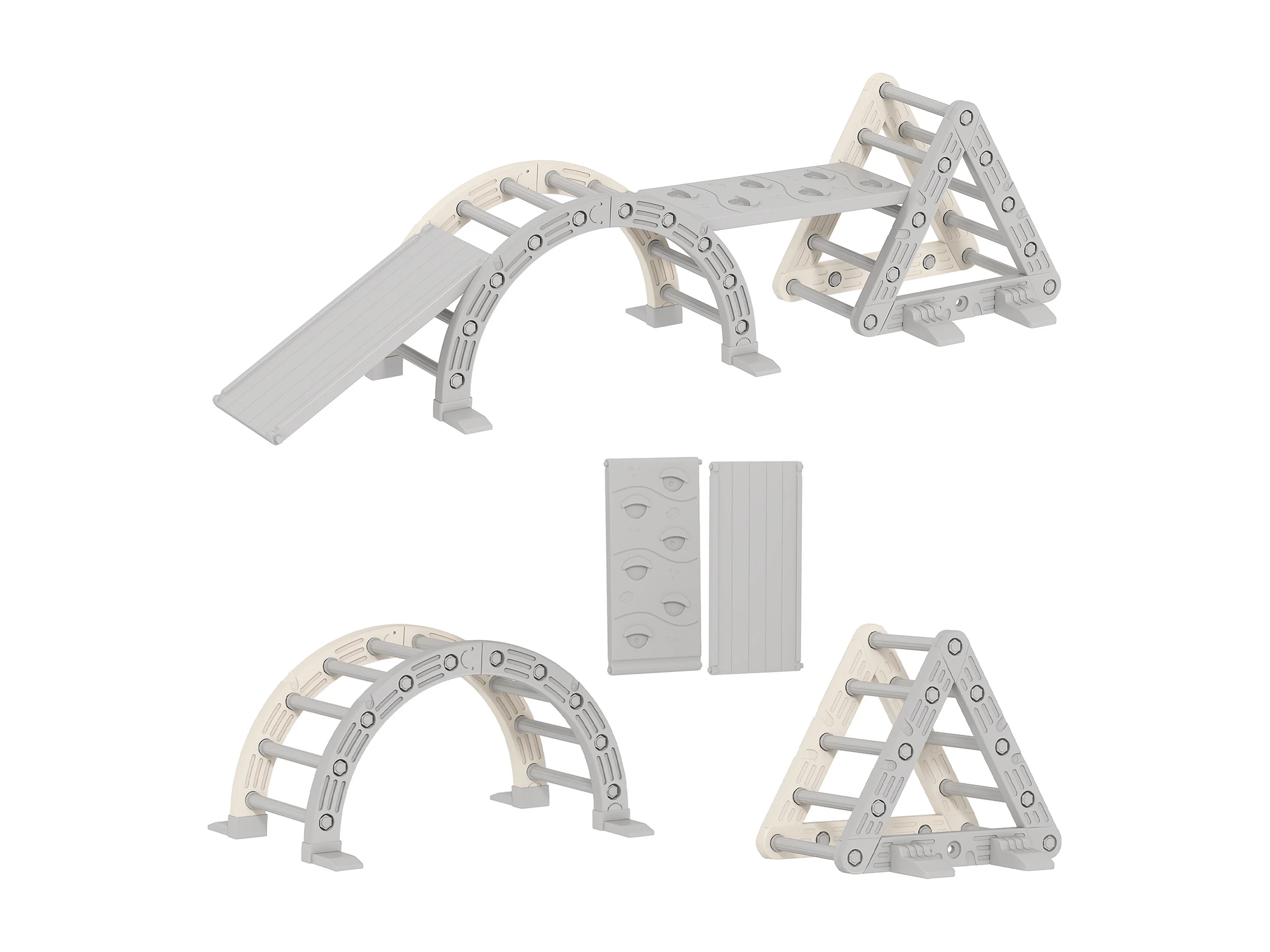 Ensemble d'escalade en bois 5 en 1 - triangle Pikler, arche, bascule, toboggan, rampe - panneaux bois pin