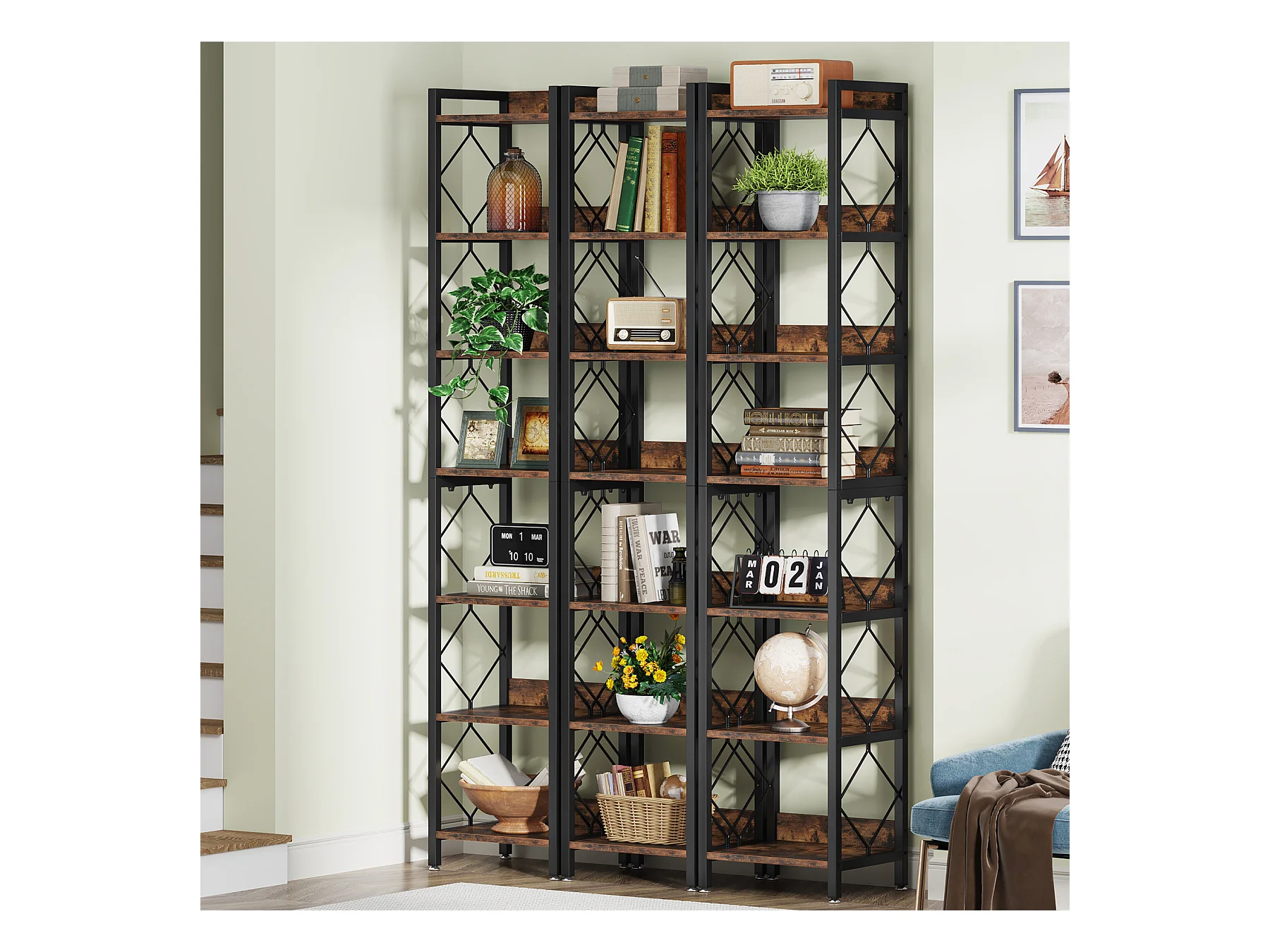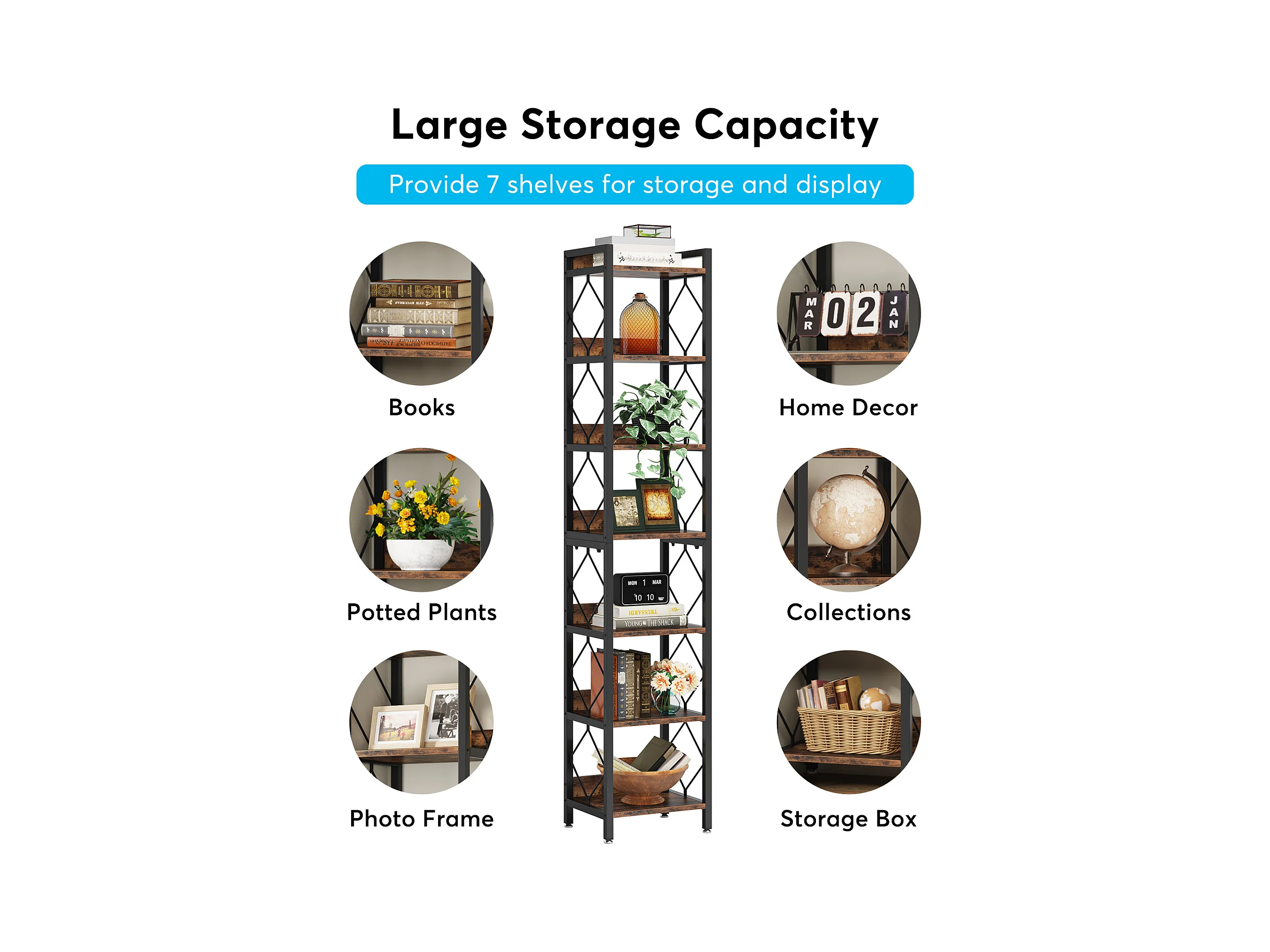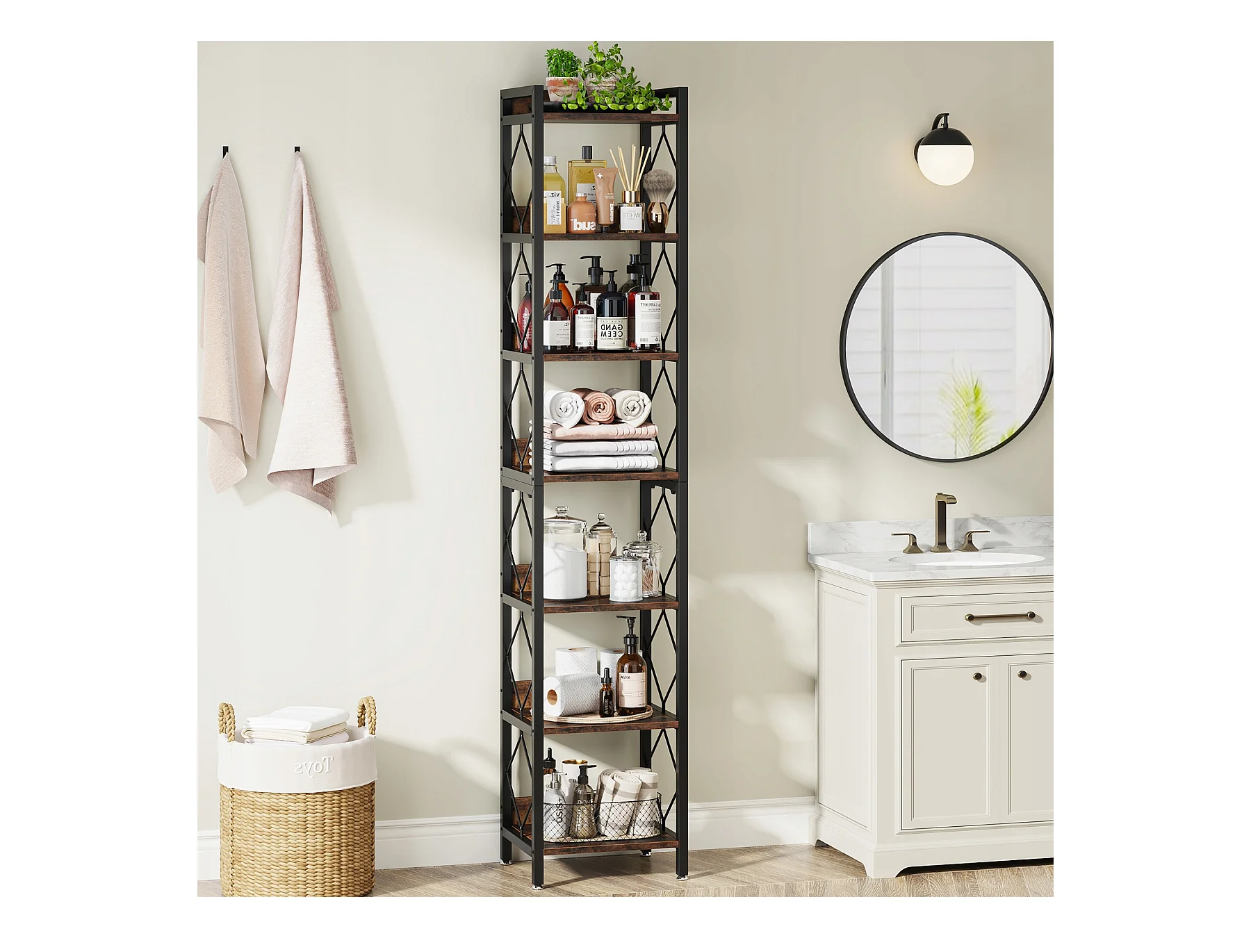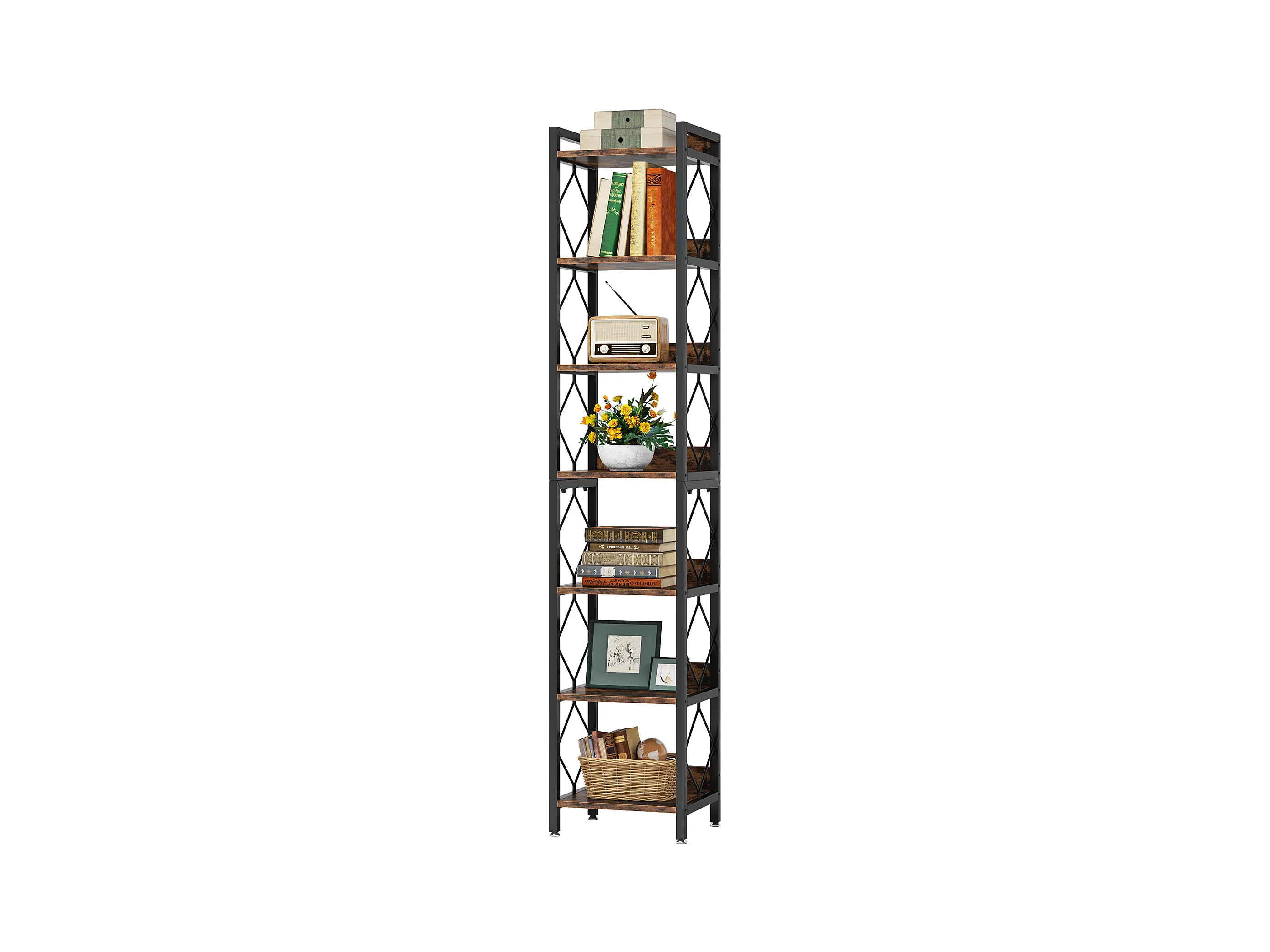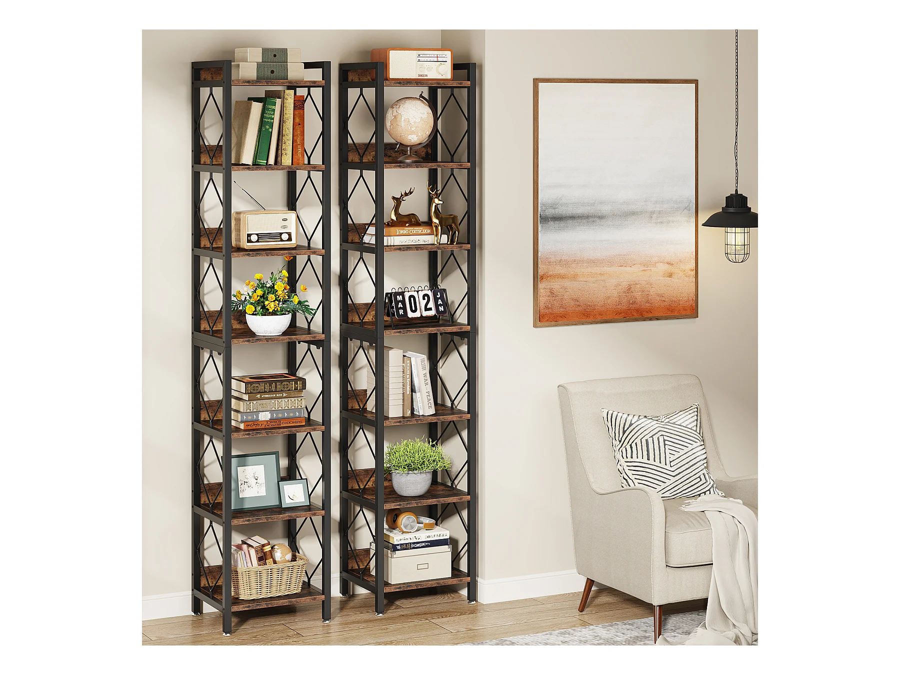 Bibliothèque étroite Extra Haute de 200 cm, bibliothèque Fine à 7 Niveaux pour Petits espaces, étagères autonomes, Marron Rustique