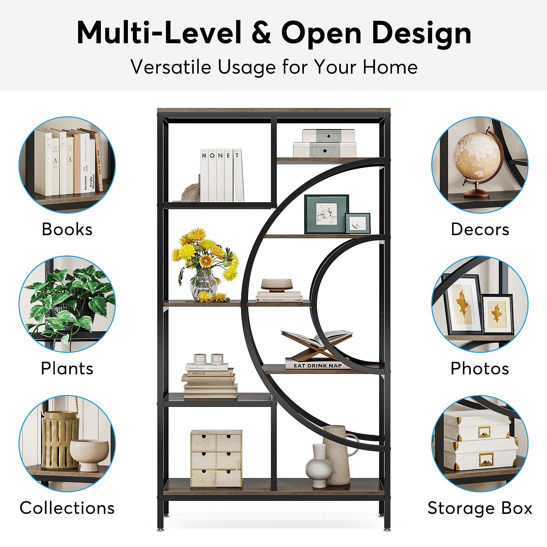 Bibliothèque géométrique, étagères industrielles à 8 Niveaux, bibliothèque Rustique avec Cadre en métal (Gris, 1)