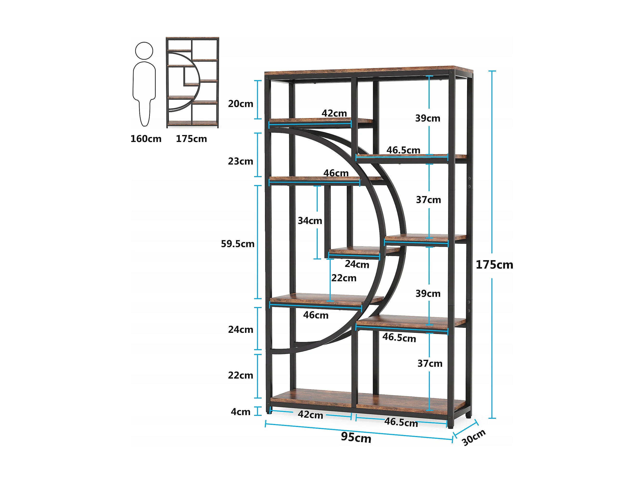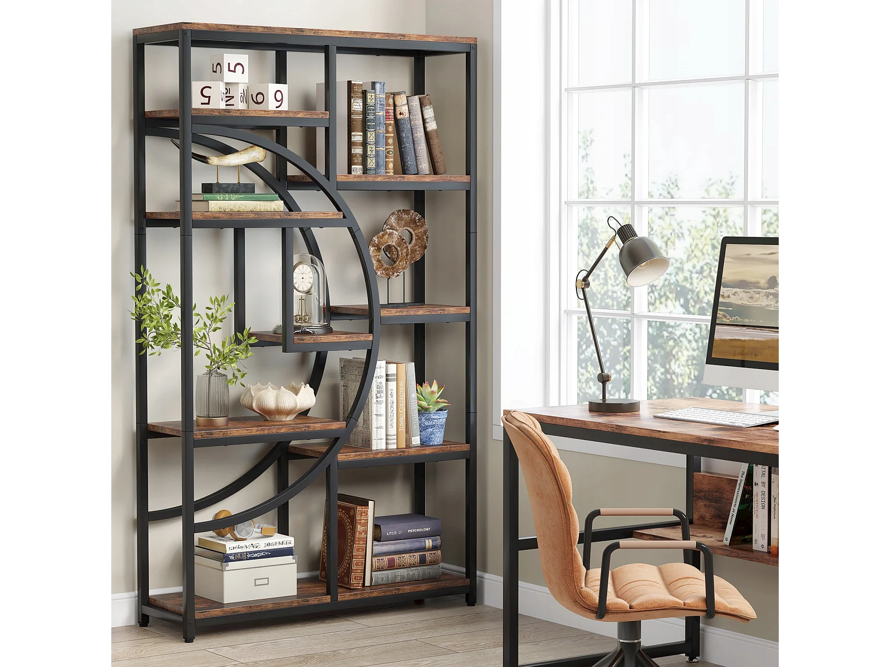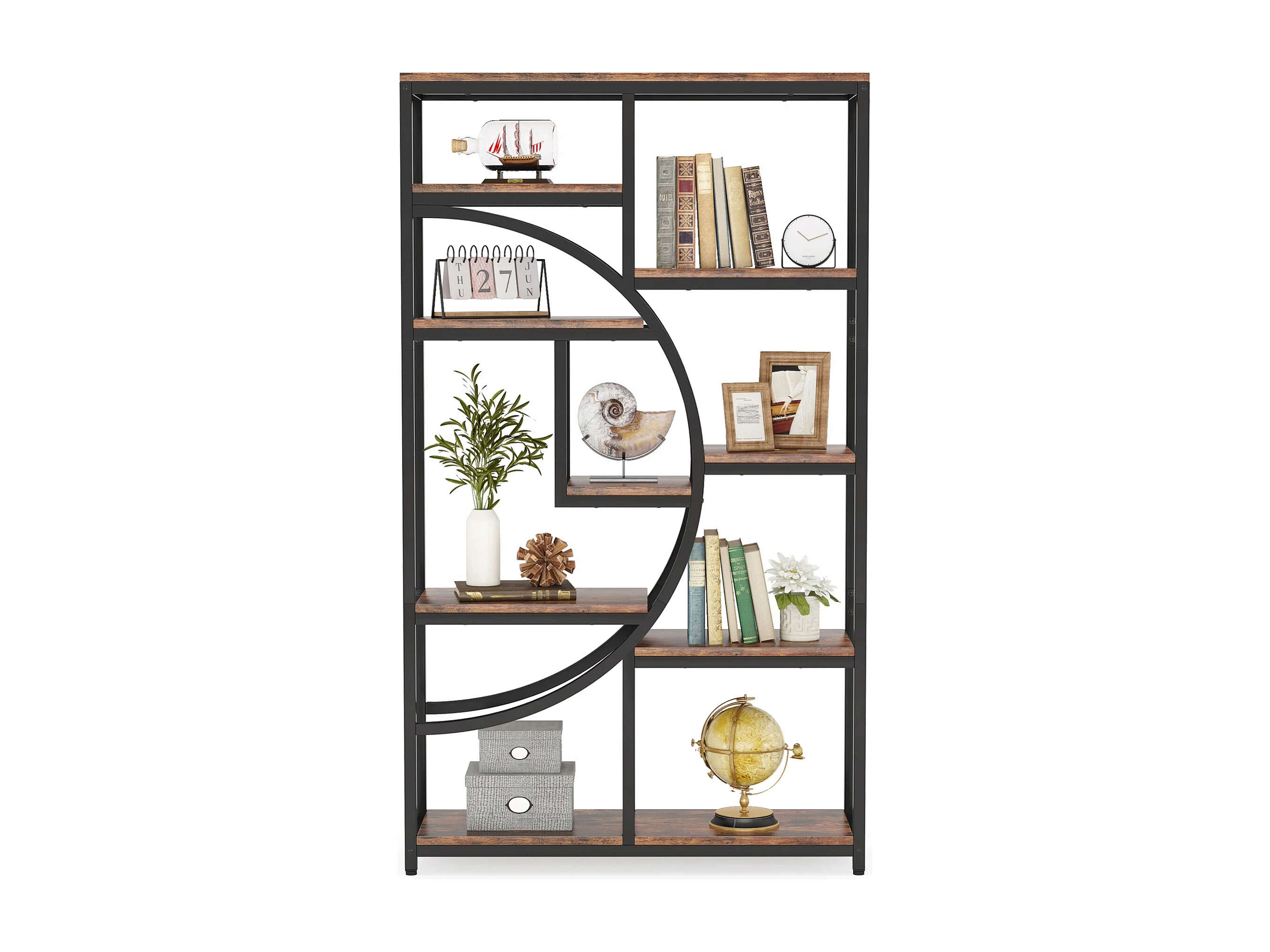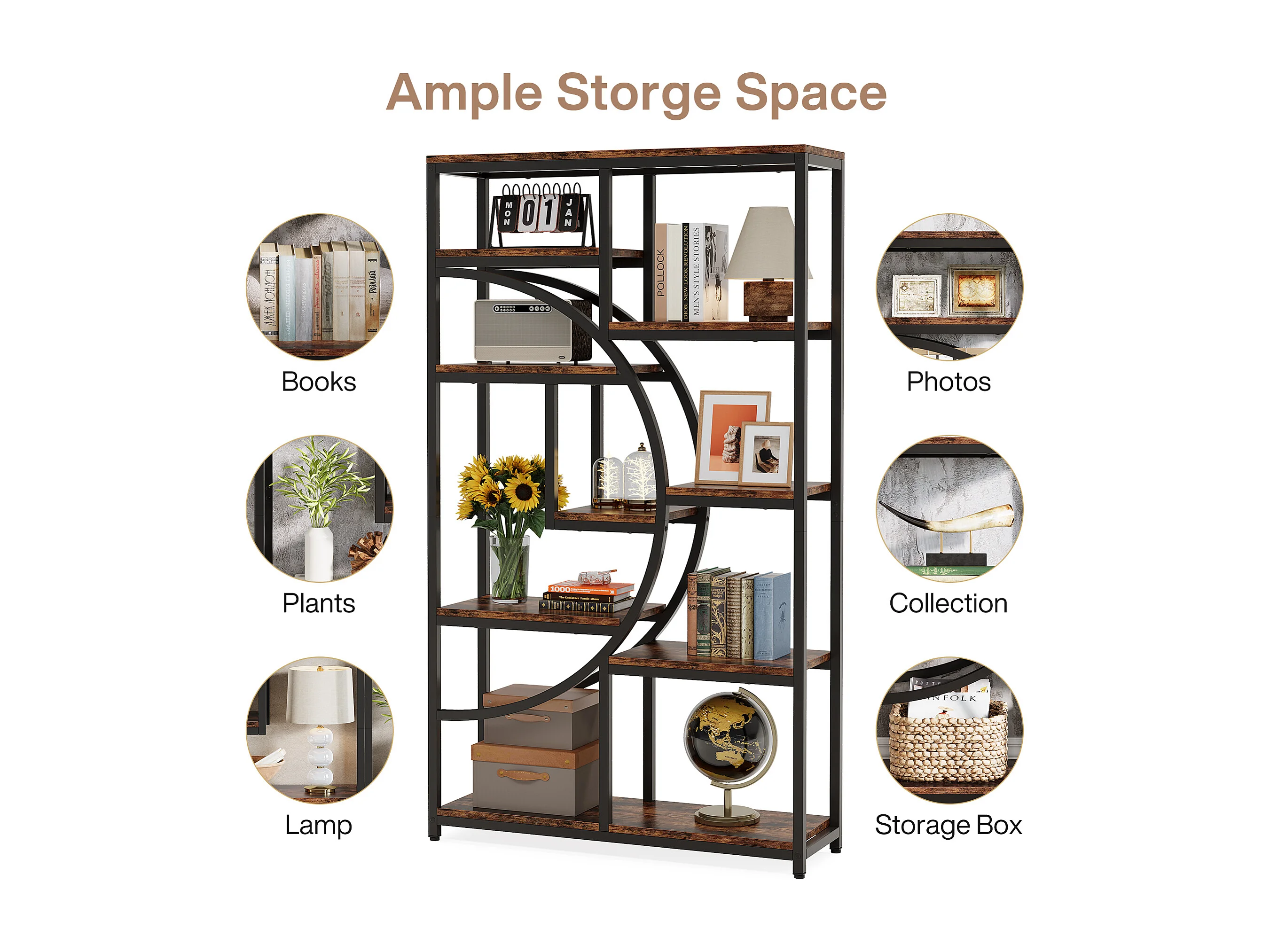 Bibliothèque Industrielle à 5 Niveaux, Haute bibliothèque Autonome avec étagère de Rangement à 9 Ouvertures pour Salon