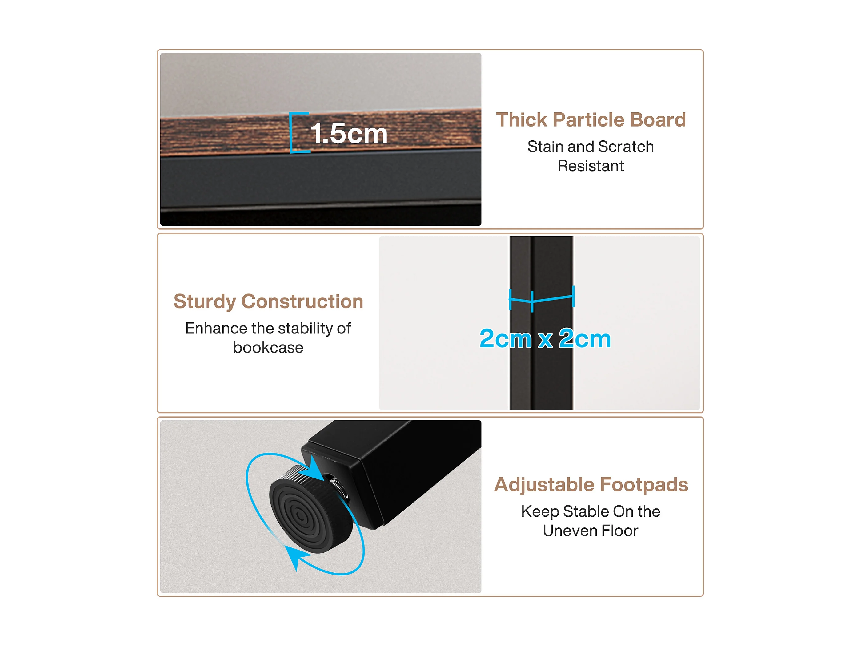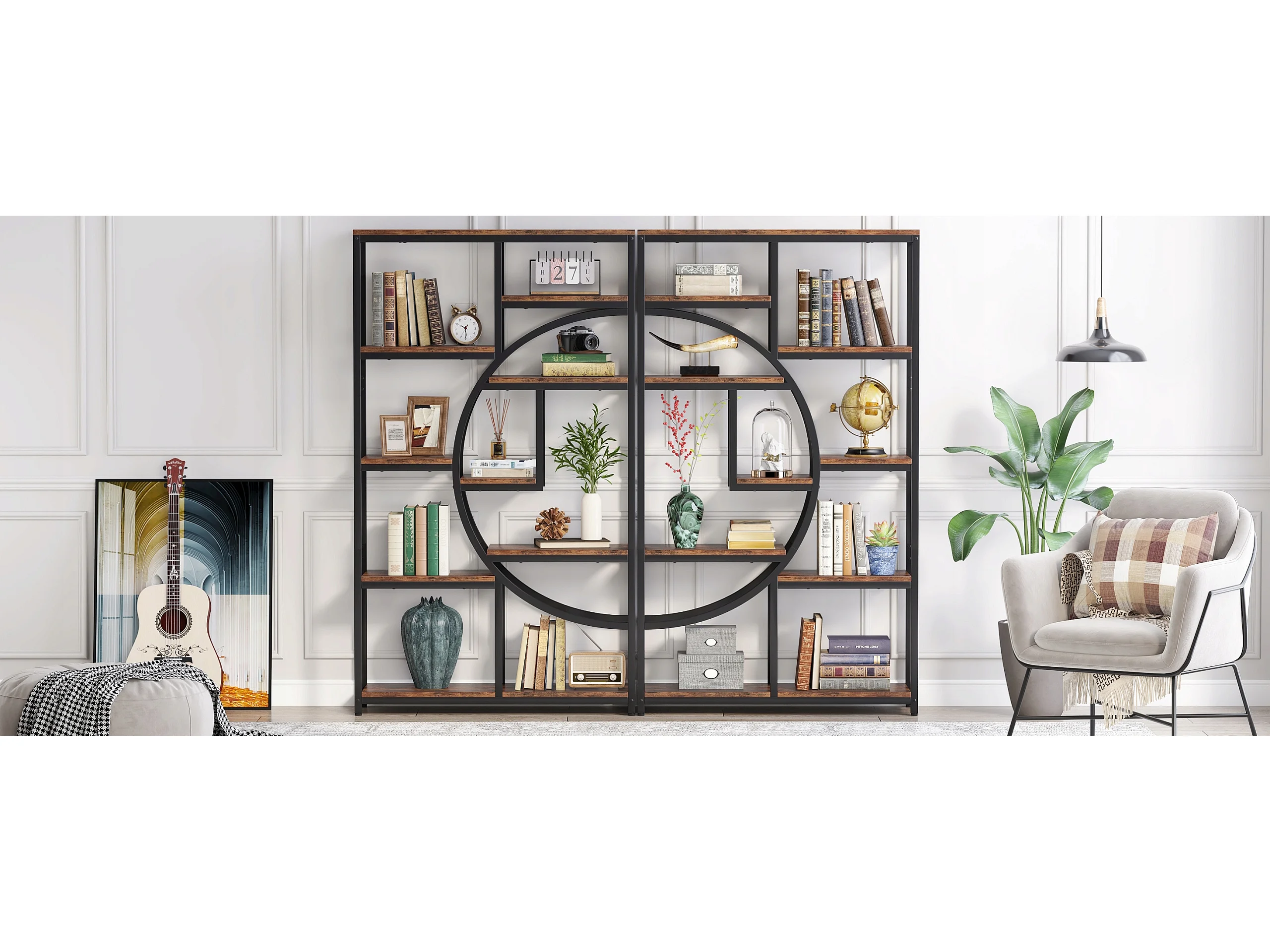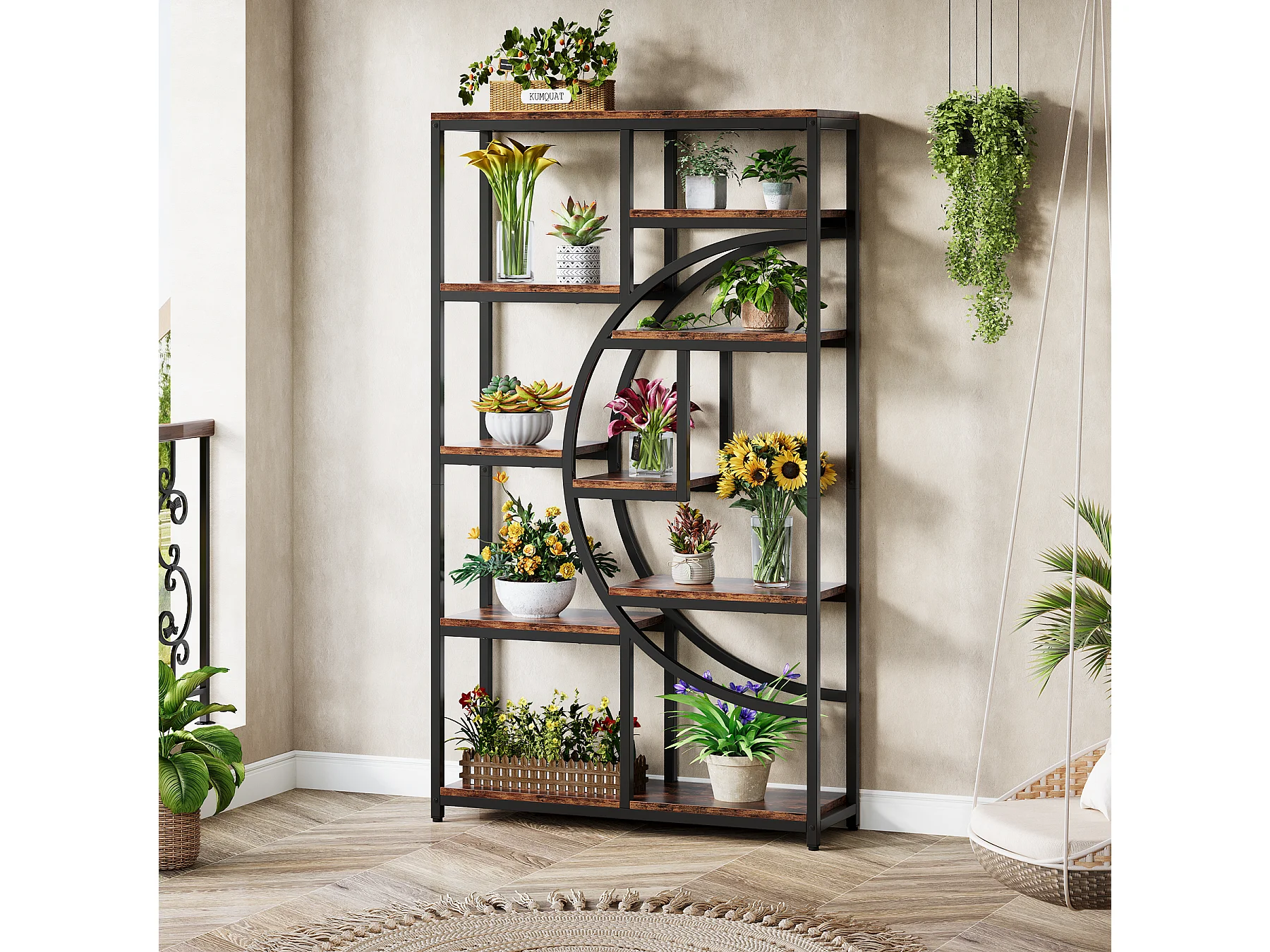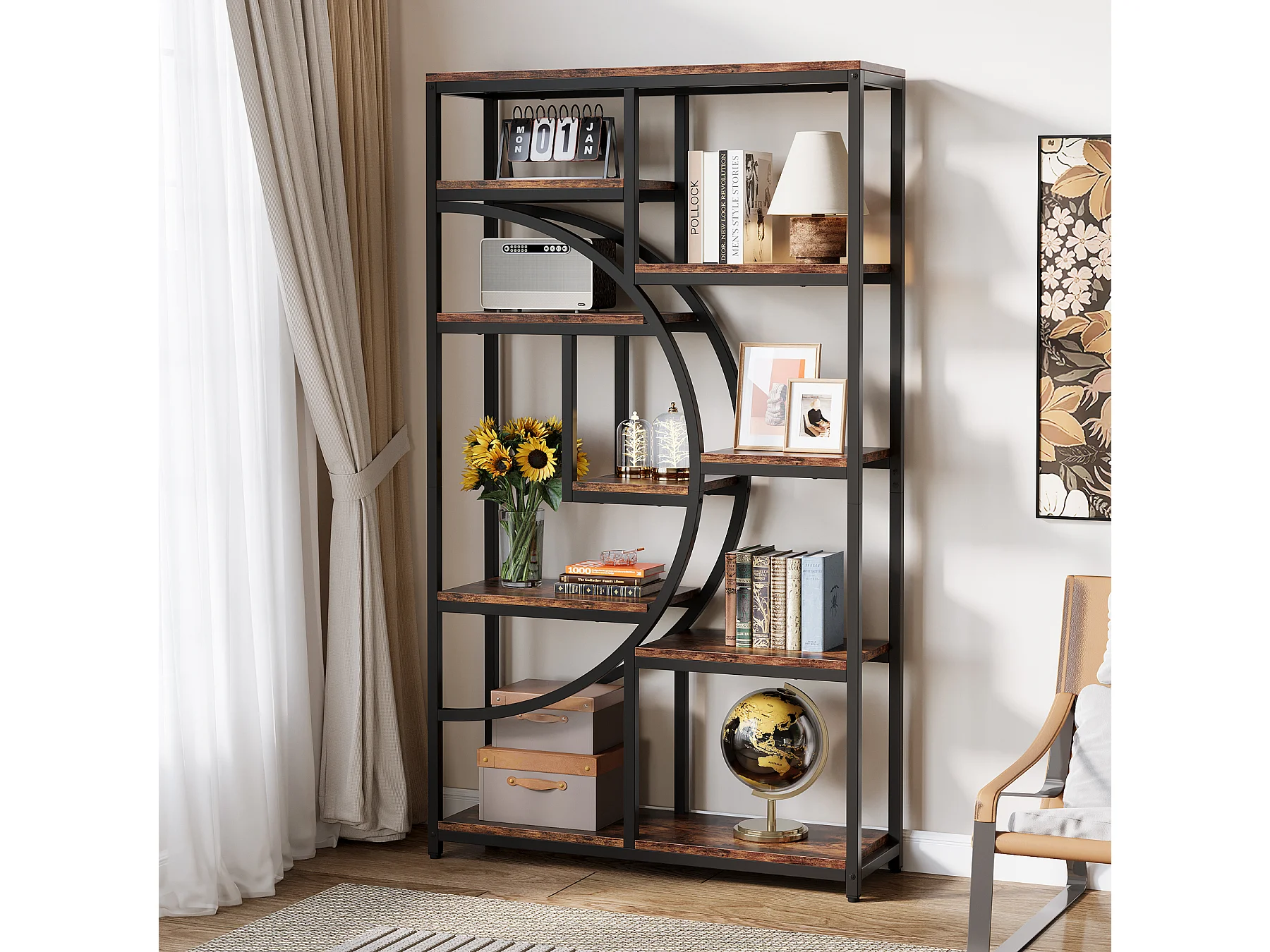 Bibliothèque Industrielle à 5 Niveaux, Haute bibliothèque Autonome avec étagère de Rangement à 9 Ouvertures pour Salon