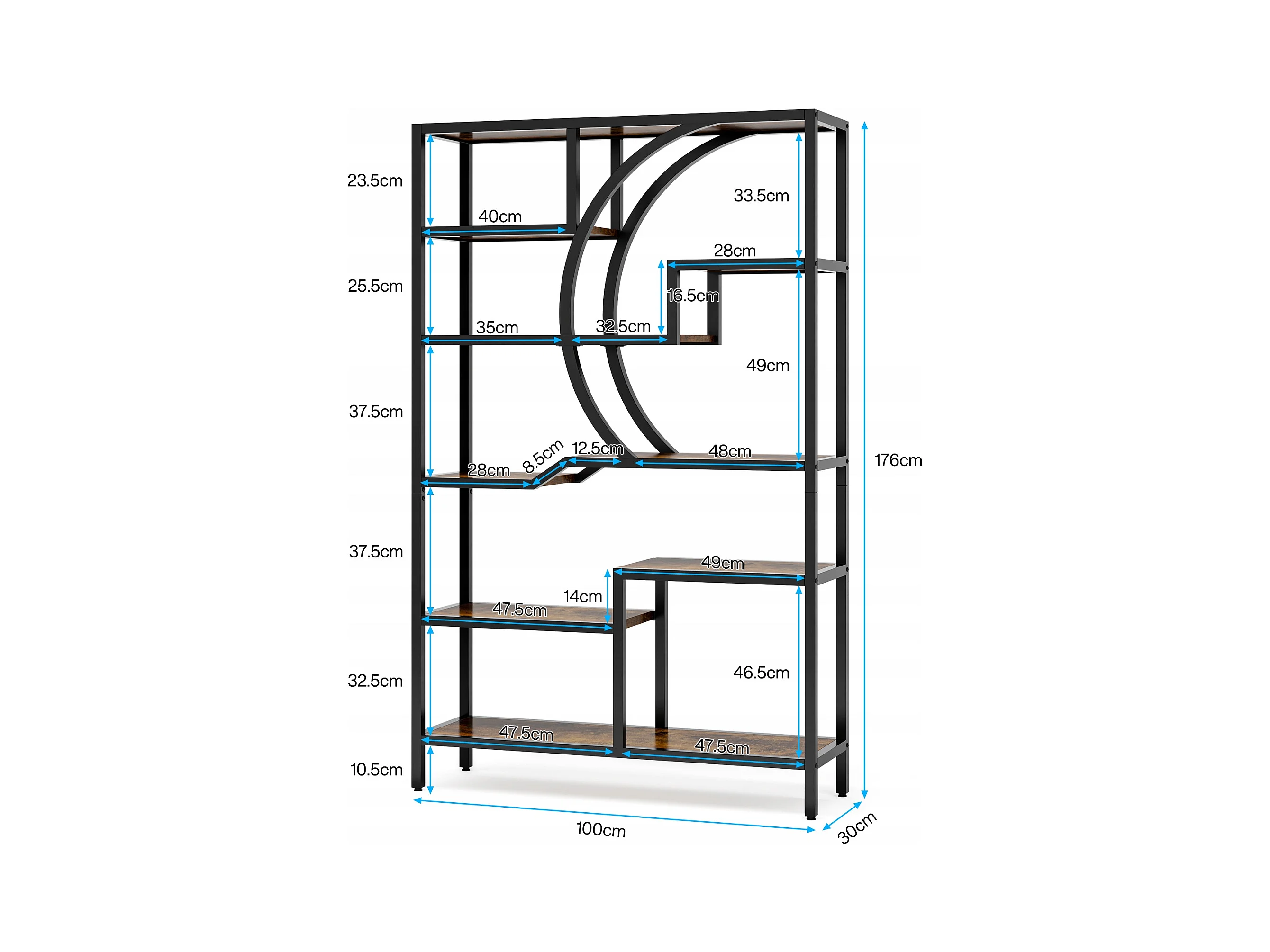 Bibliothèque Industrielle à 6 Niveaux,Bibliothèque de 175 cm de Hauteur, avec 9 Étagères de Rangement Ouvertes, étagère de présentation