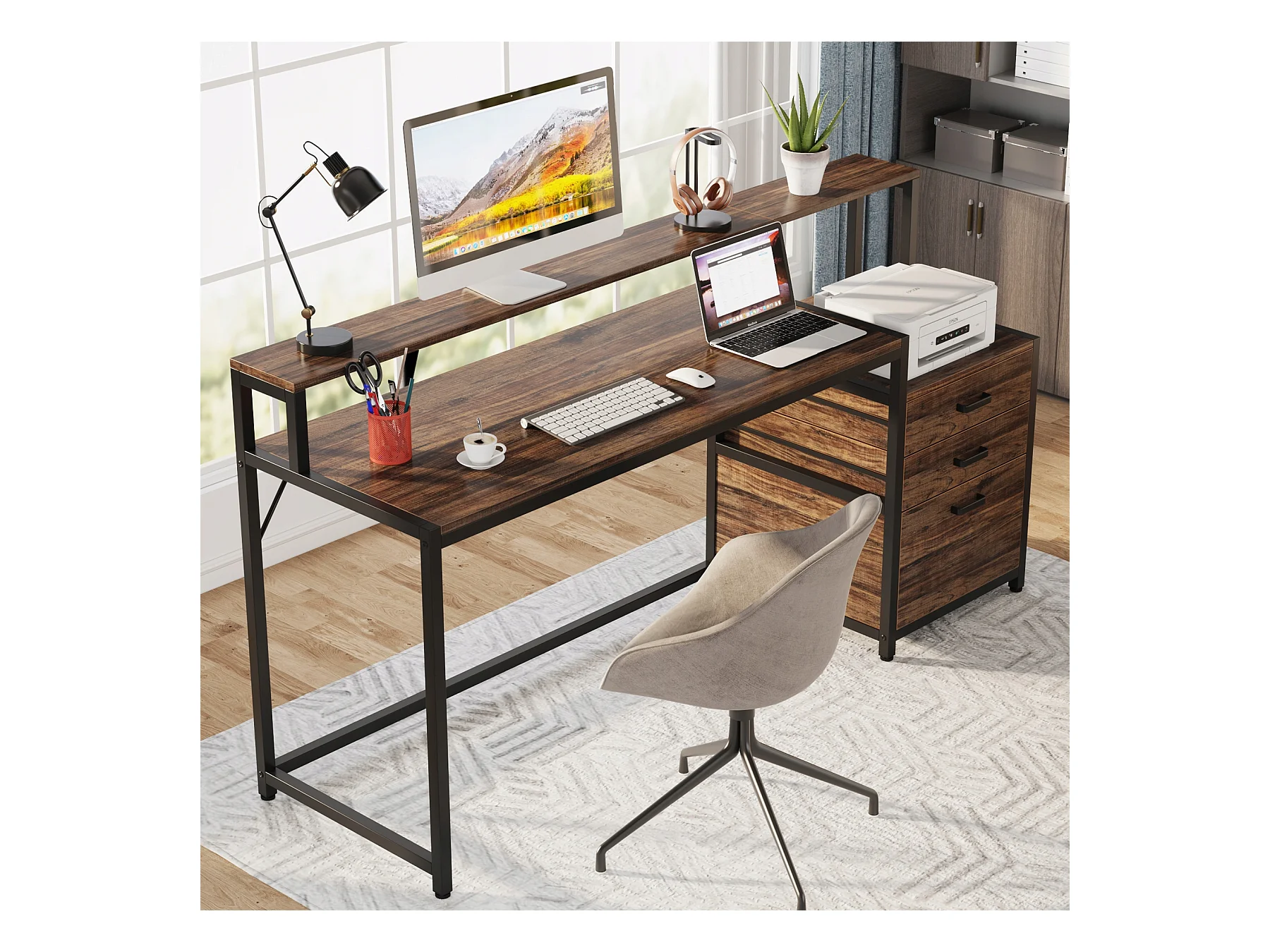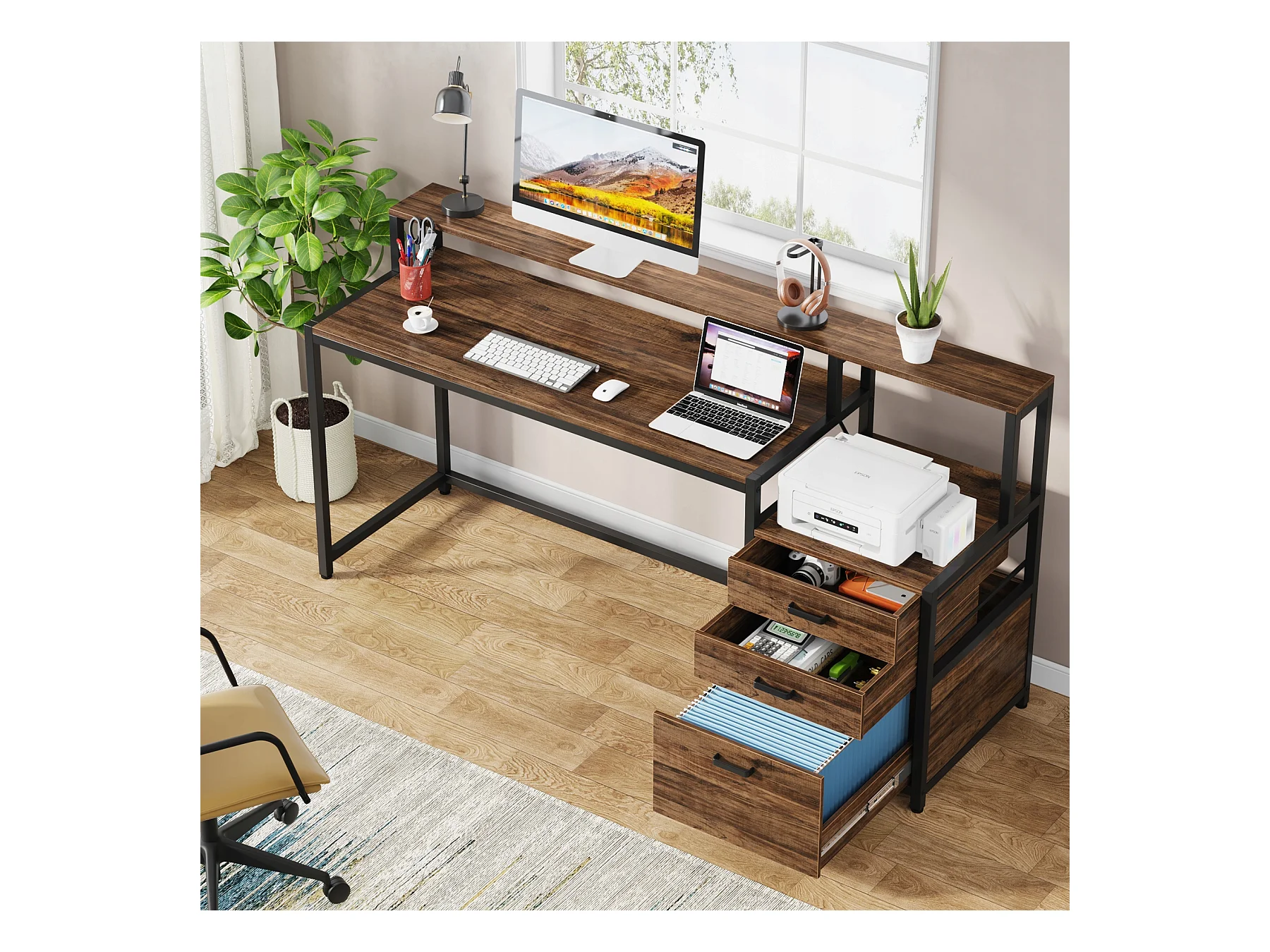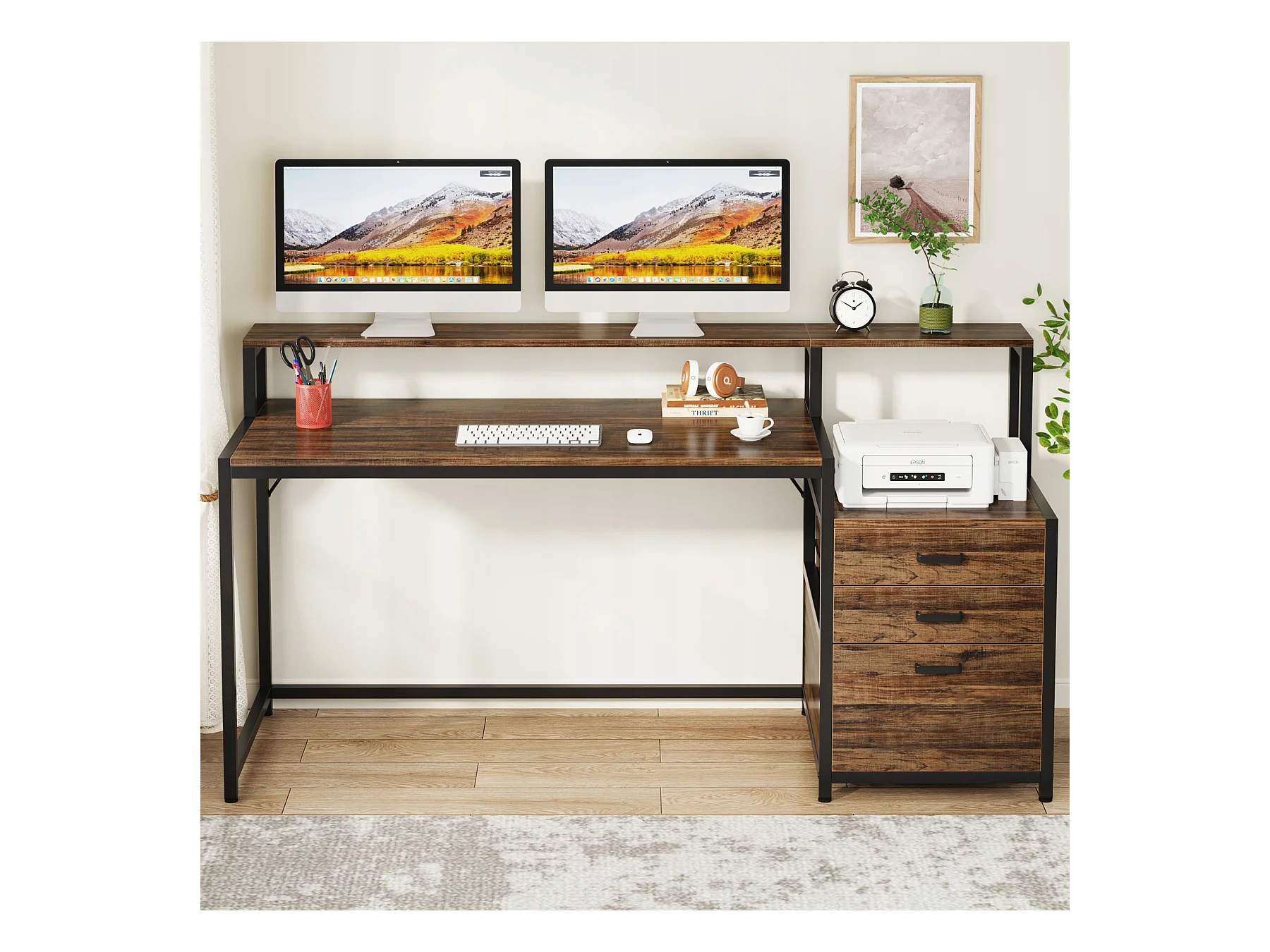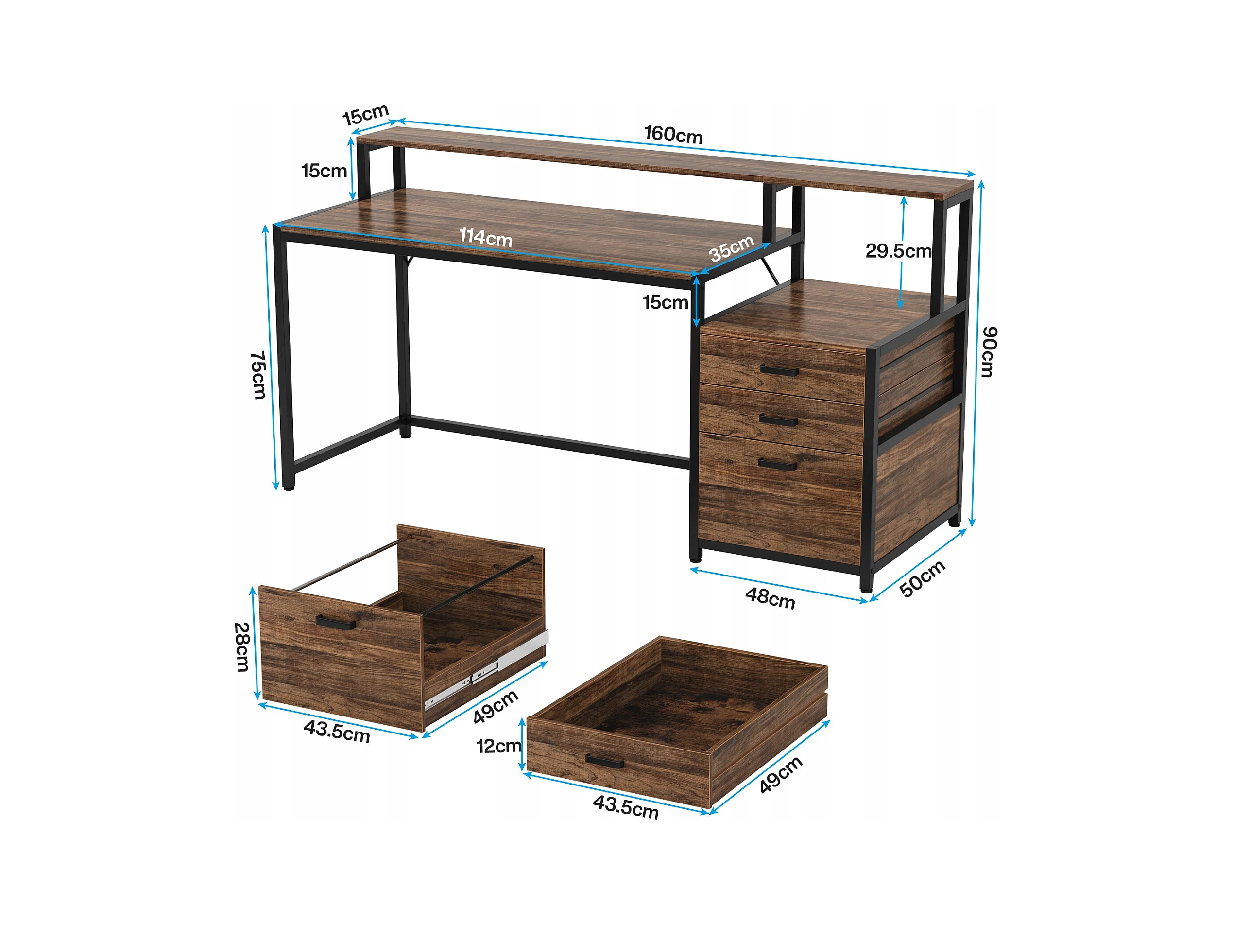 Bureau ergonomique avec tiroirs et support d'écran - 160 x 50 x 90 cm - Bureau ergonomique avec emplacement pour imprimante - Pour bureau à domicile