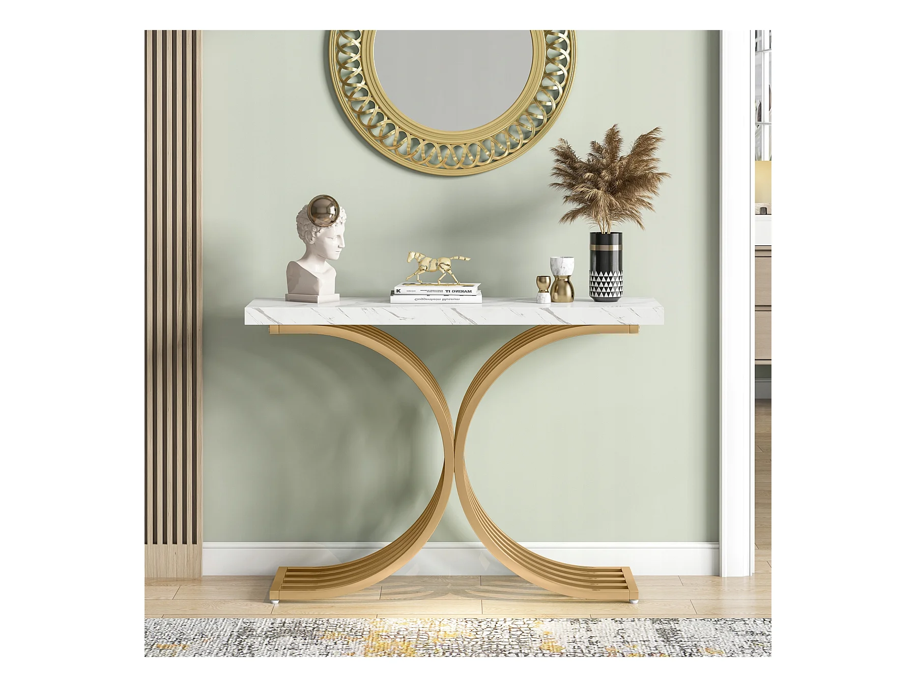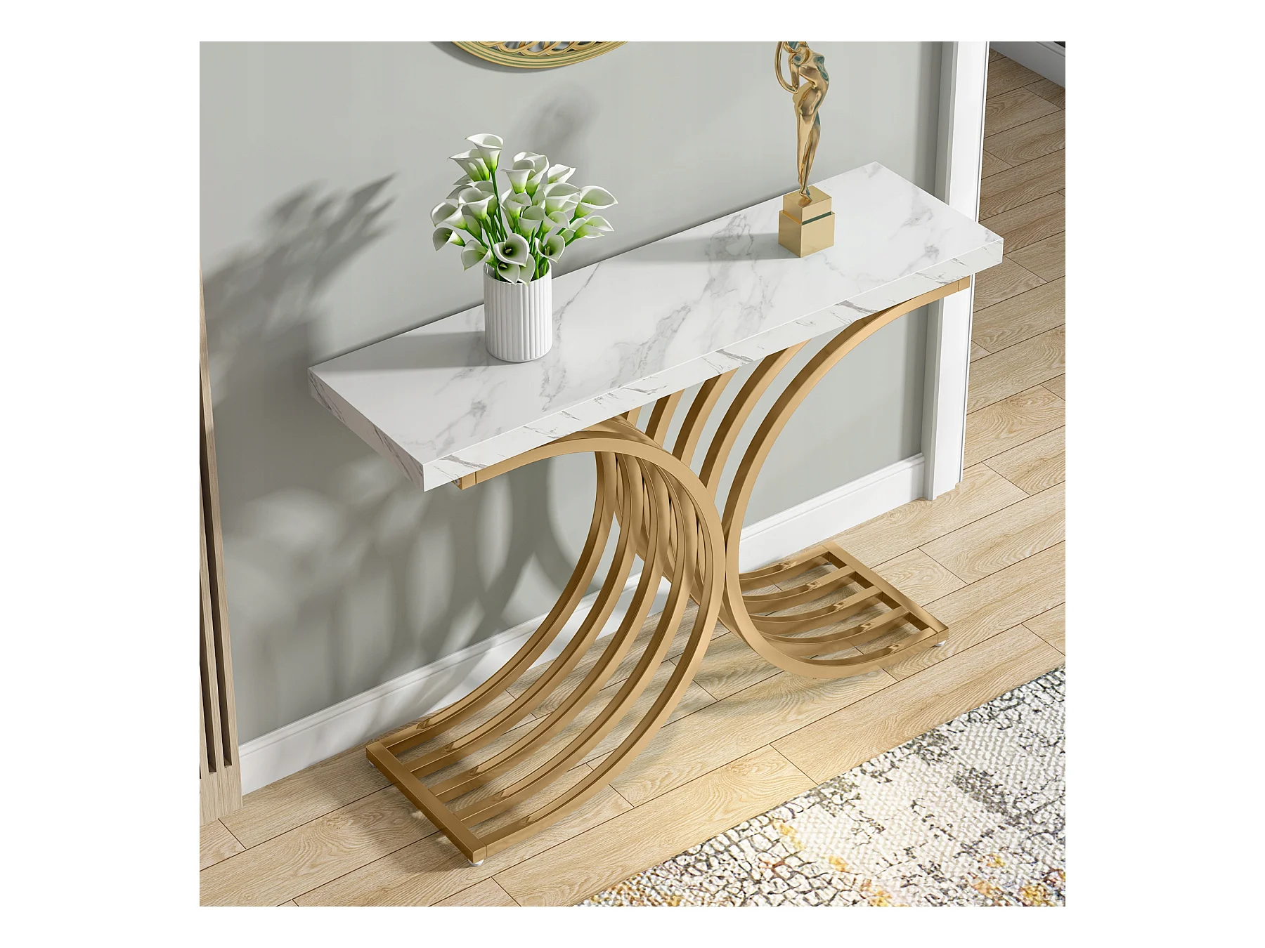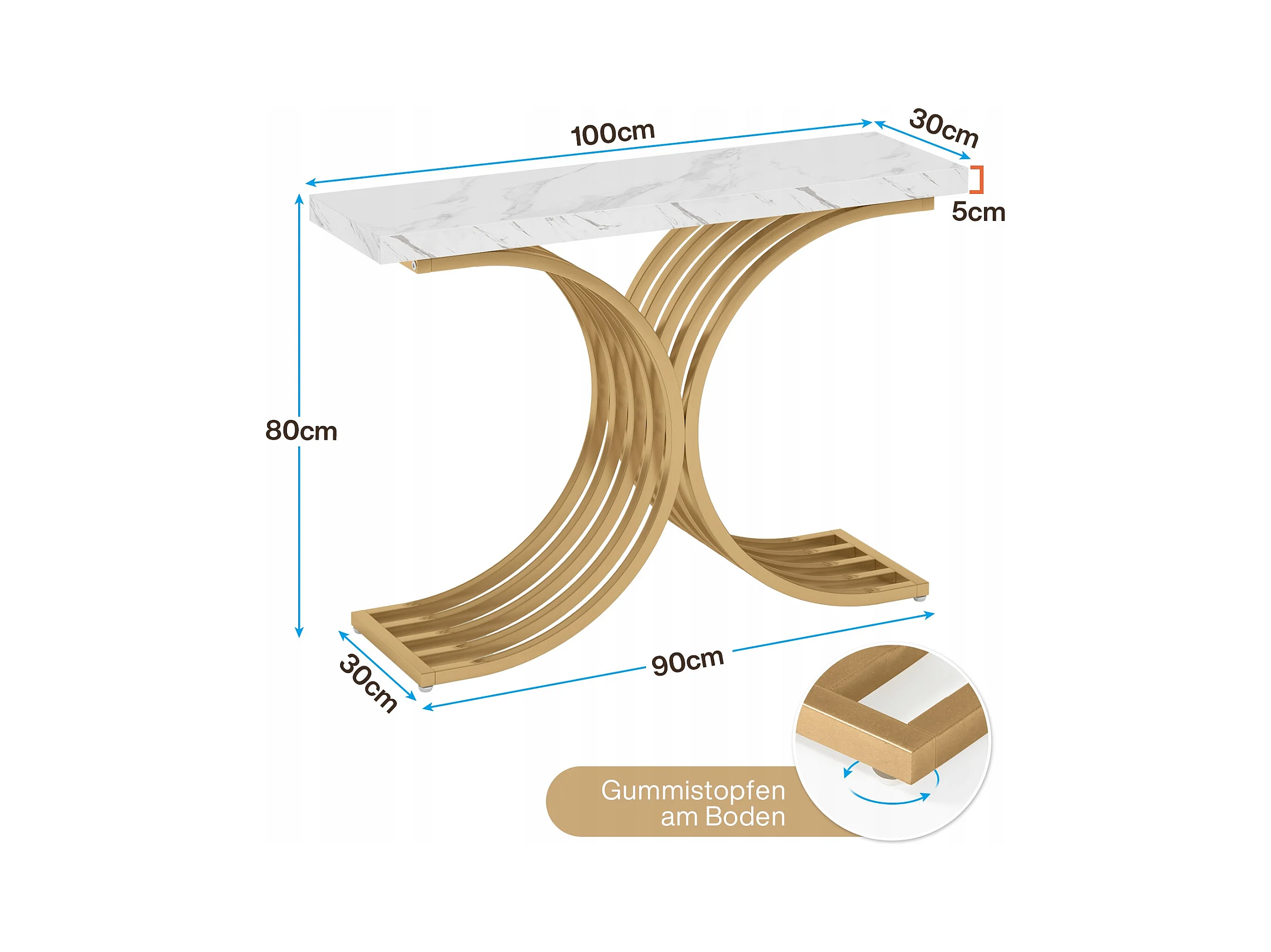 Table console étroite, table d'appoint avec structure en métal doré, 100 x 30 x 80 cm, petite table d'exposition