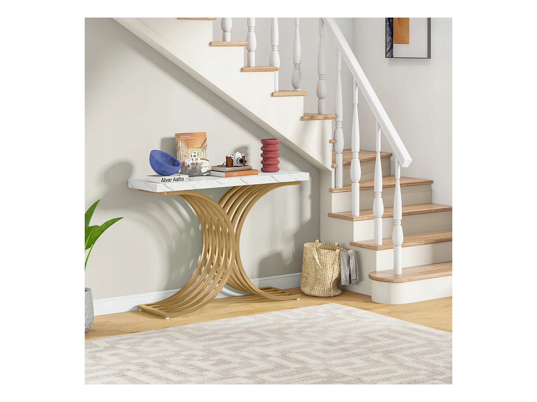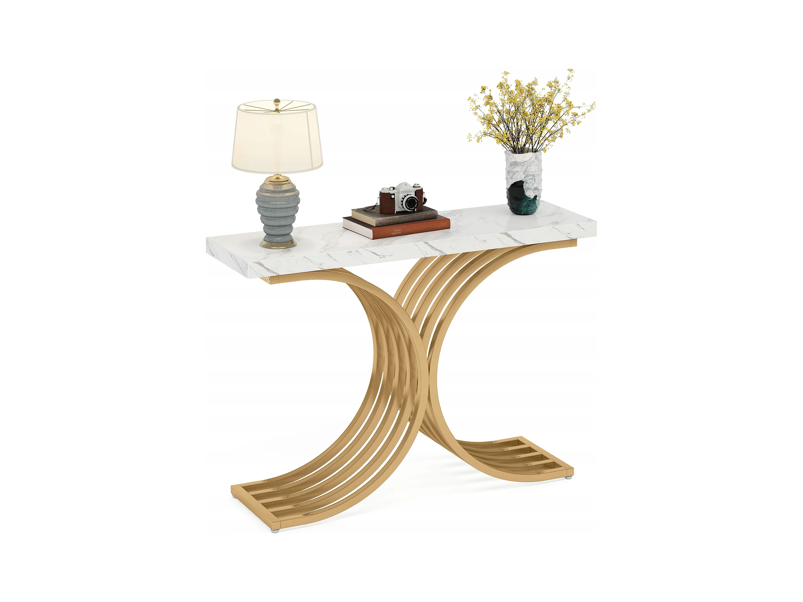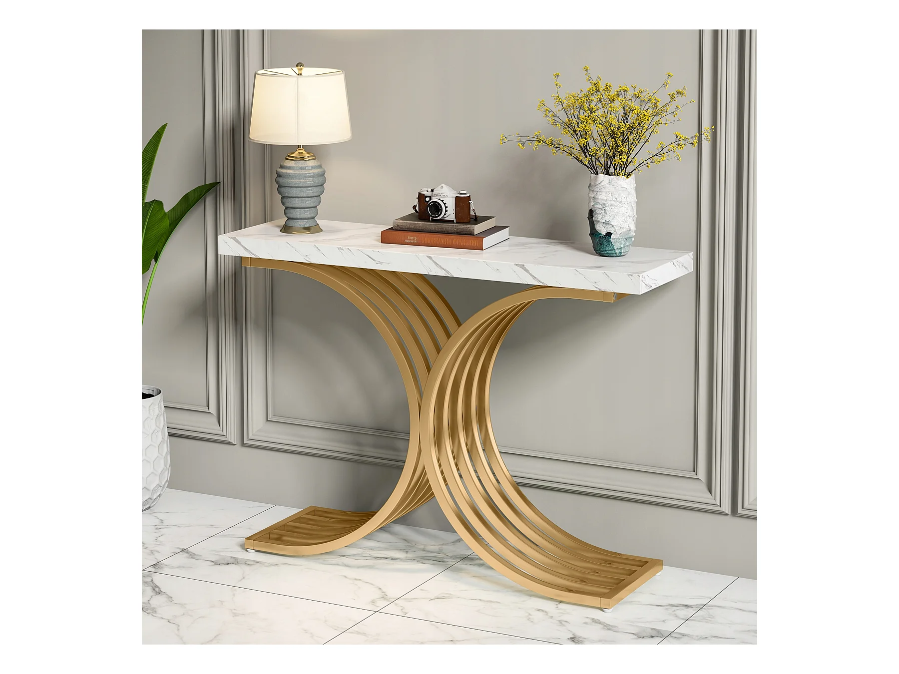 Table console étroite, table d'appoint avec structure en métal doré, 100 x 30 x 80 cm, petite table d'exposition