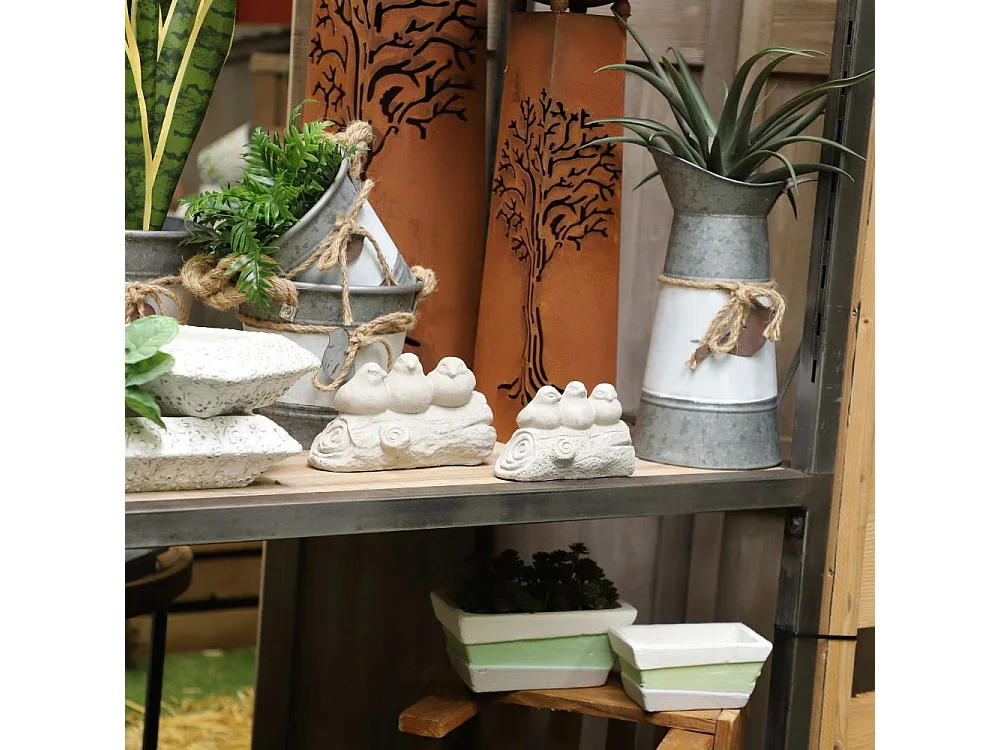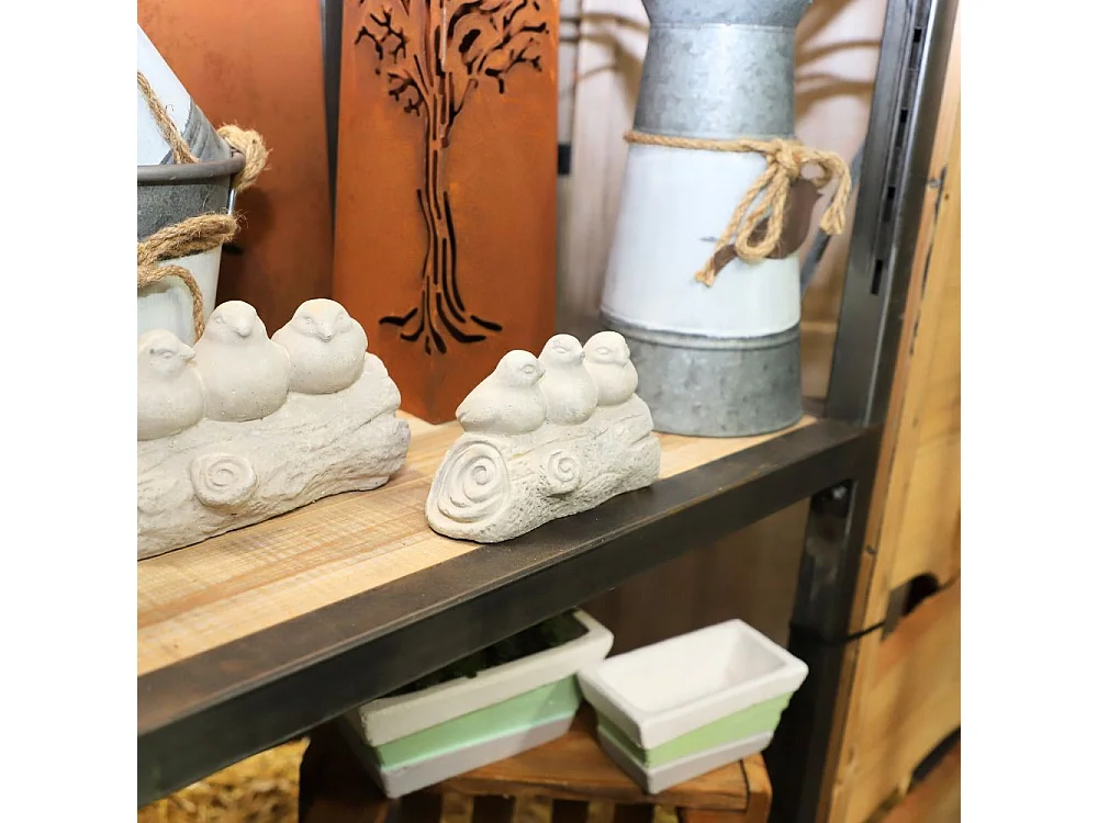 Trio d'oiseaux décoratifs sur branche en béton gris 20.5 x 9.5 x 11cm