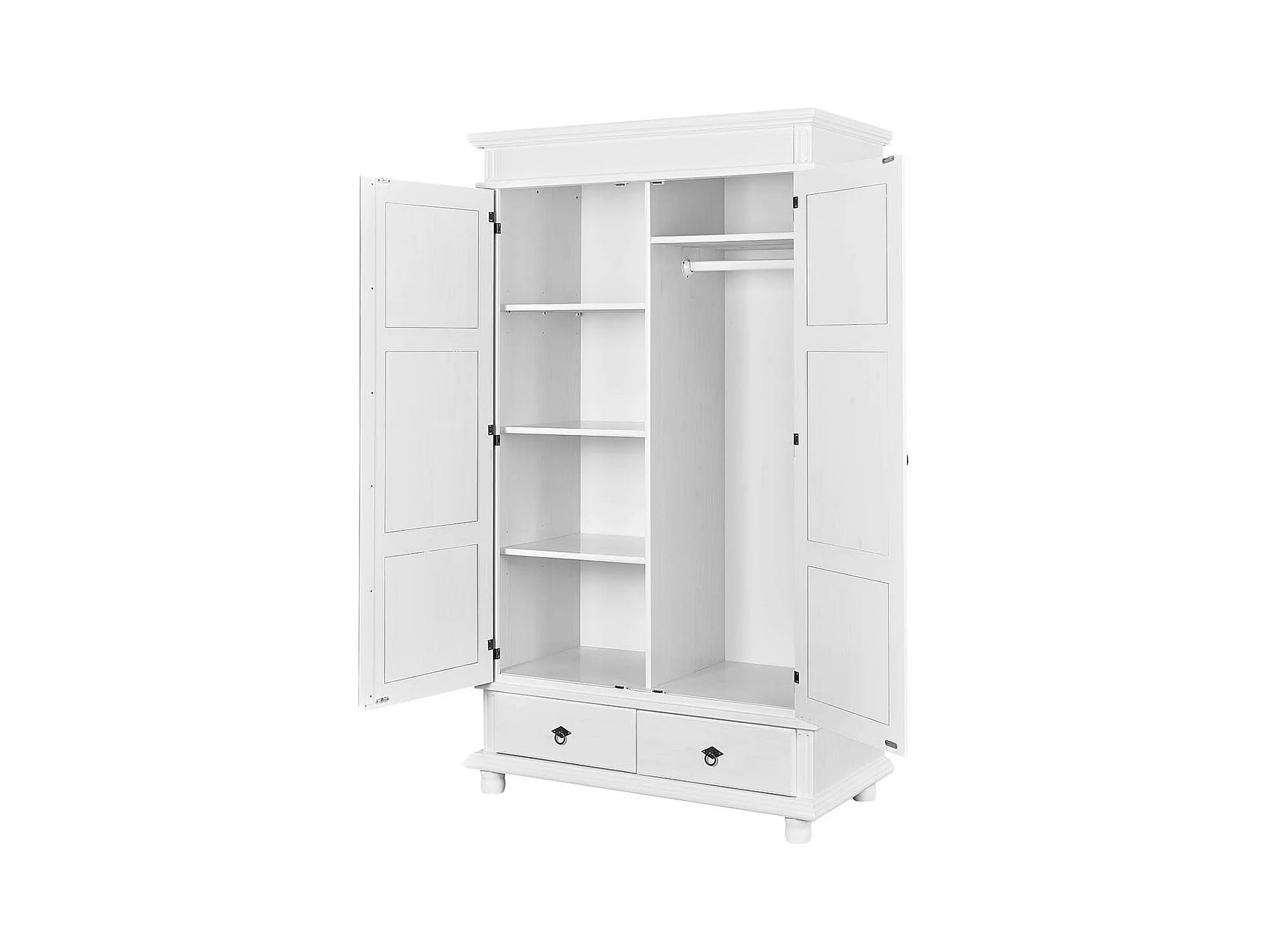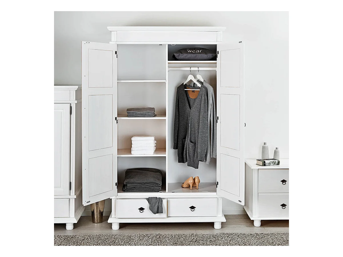 TRISTAN - Armoire 2 Portes 2 Tiroirs Bois Massif Vernis Blanc