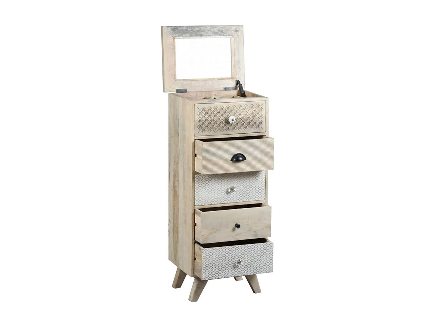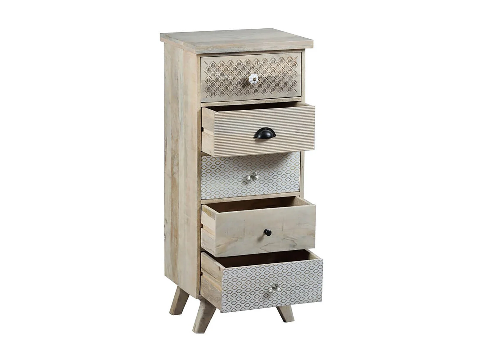 TROMSO - Chiffonnier 5 Tiroirs en Manguier Massif Clair