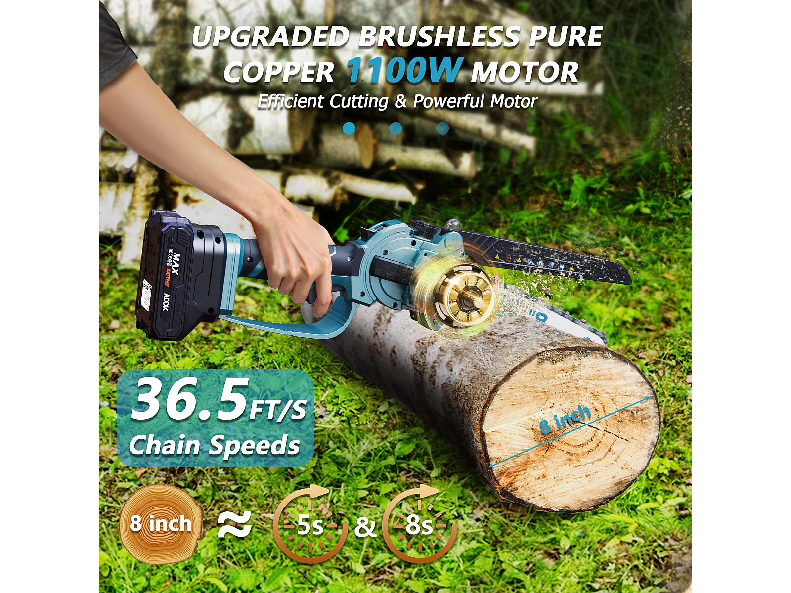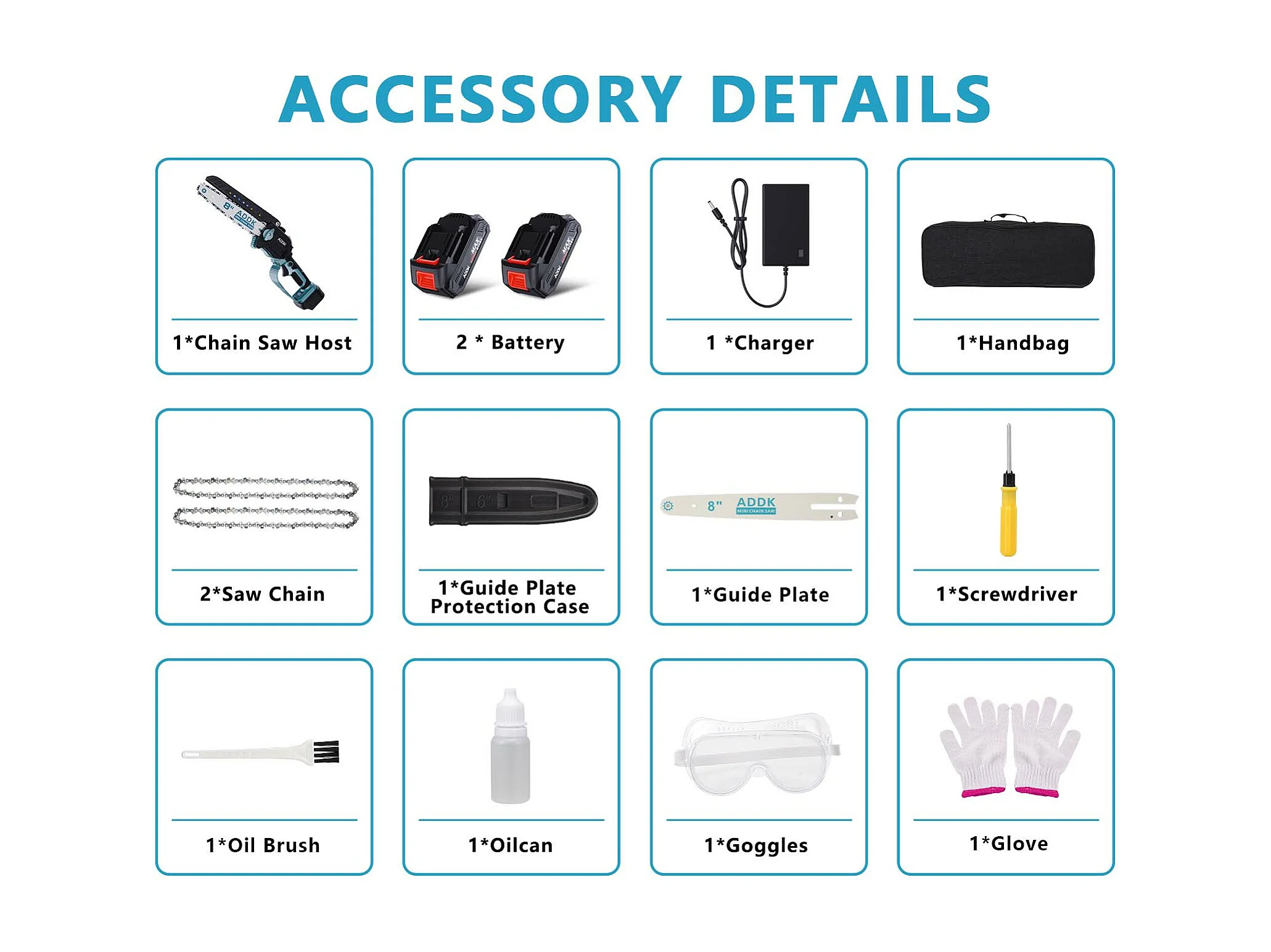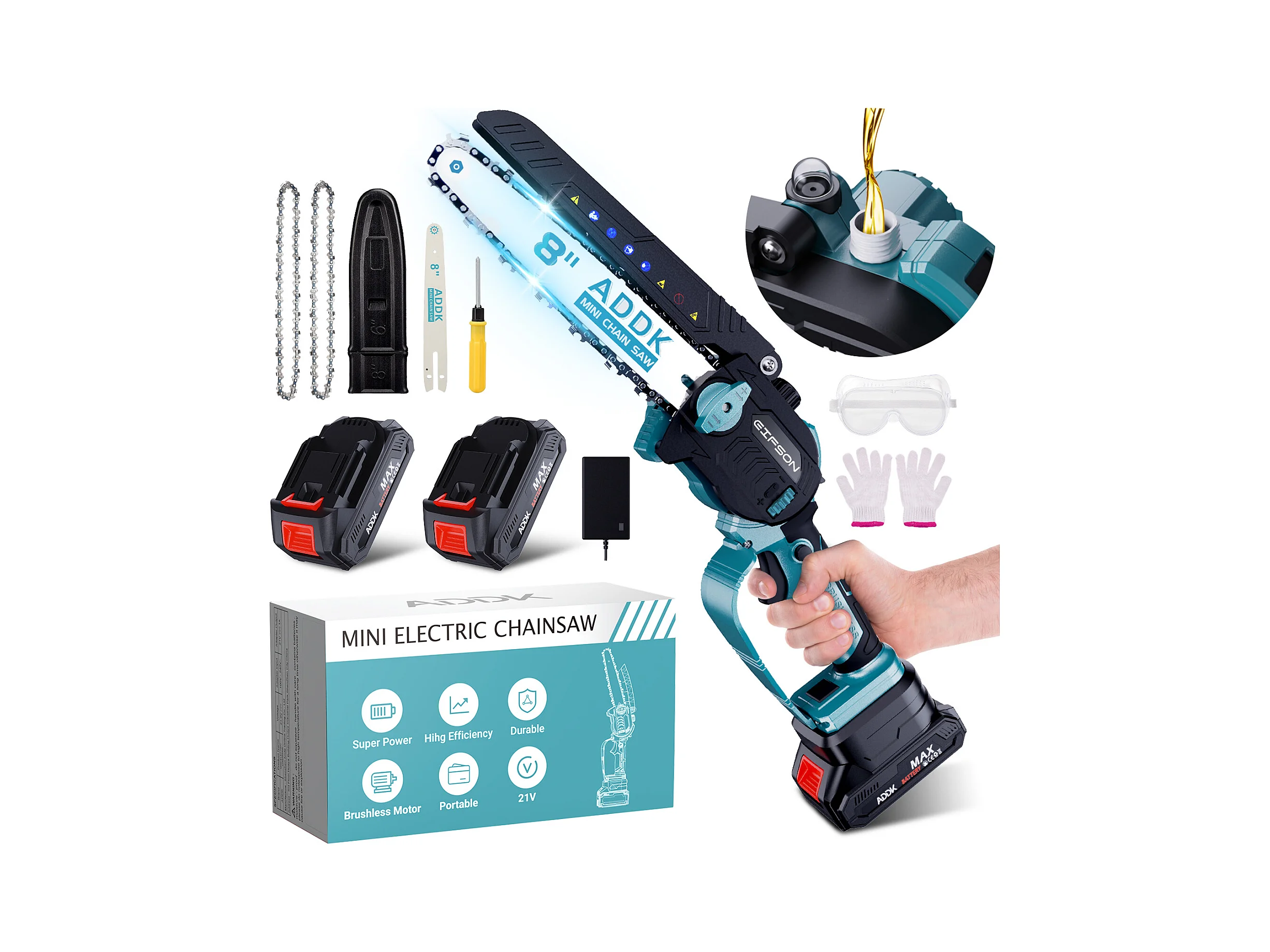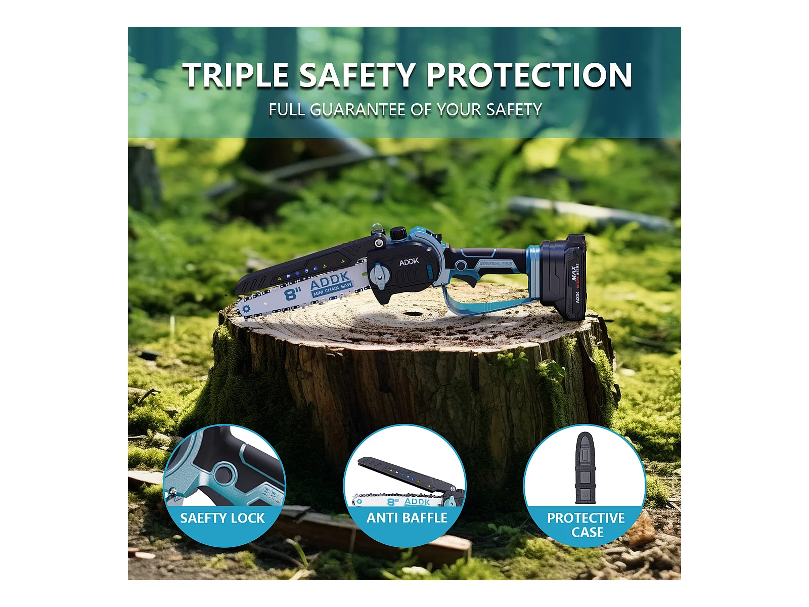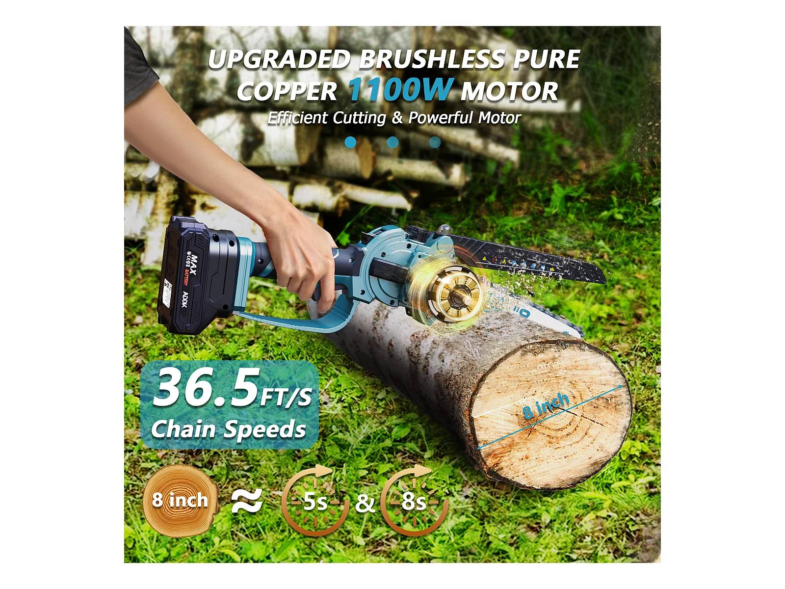 Tronçonneuse, mini scie 8", mini scie à bois portable 21 V 450 W, tronçonneuse électrique 8", 4 tronçonneuses – Bleu