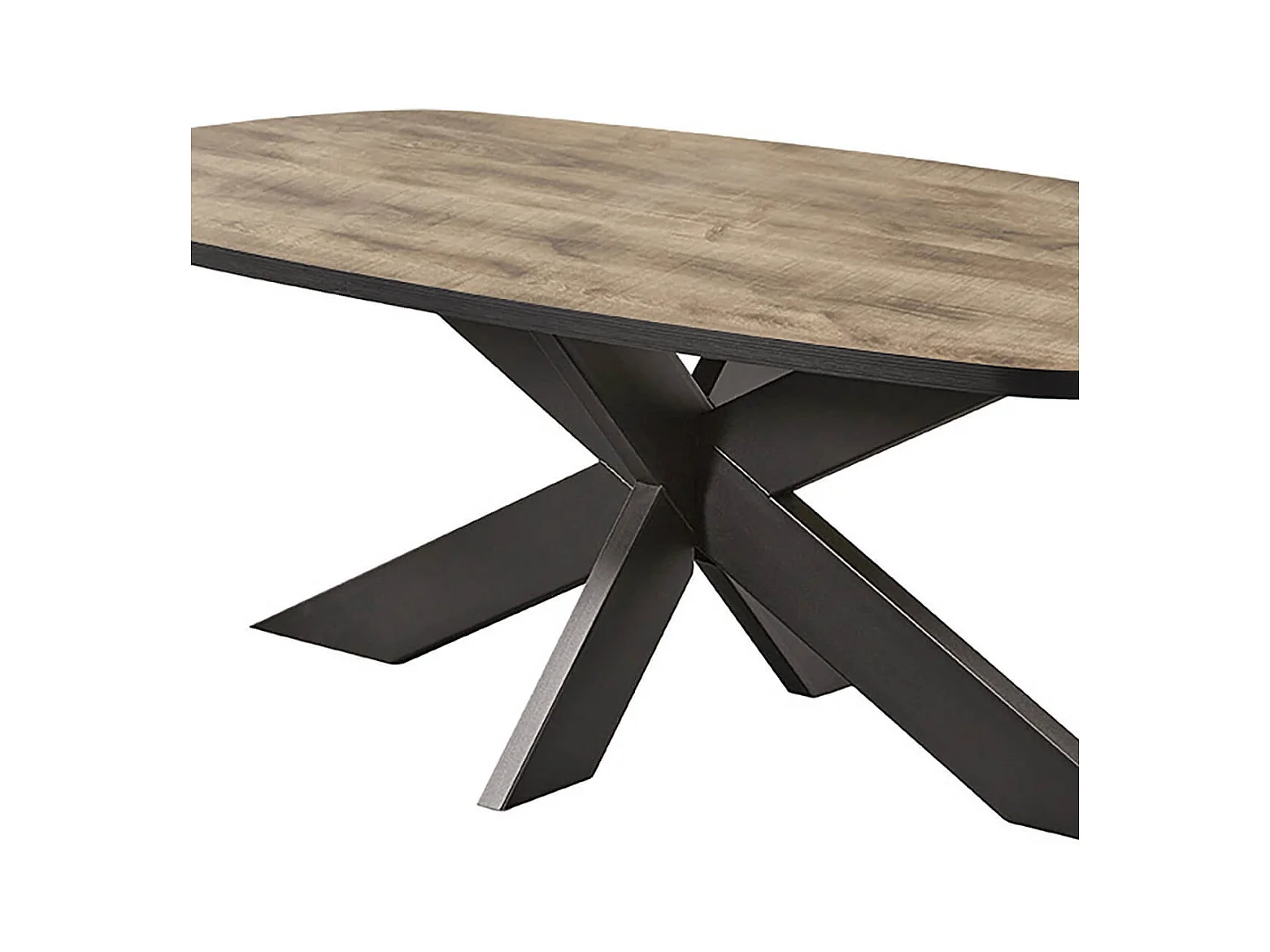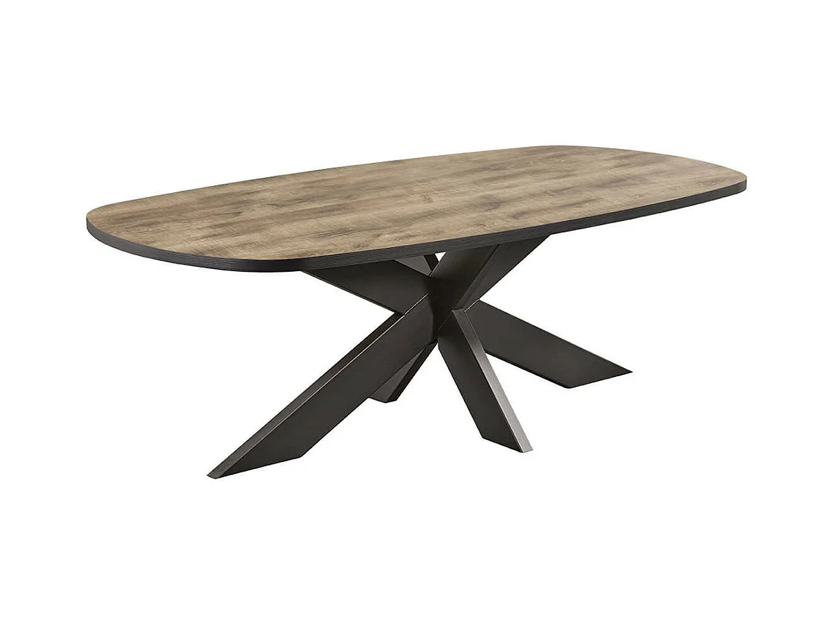 TROPIX - Table Ovale 200cm Aspect Bois Piètement Araignée Métal Noir