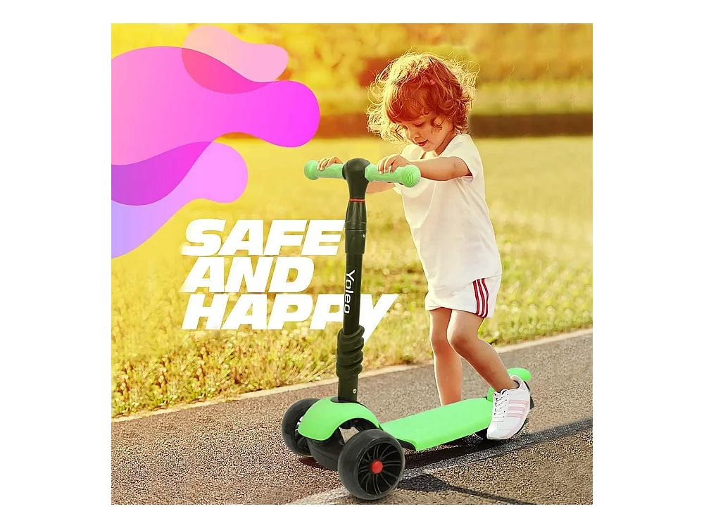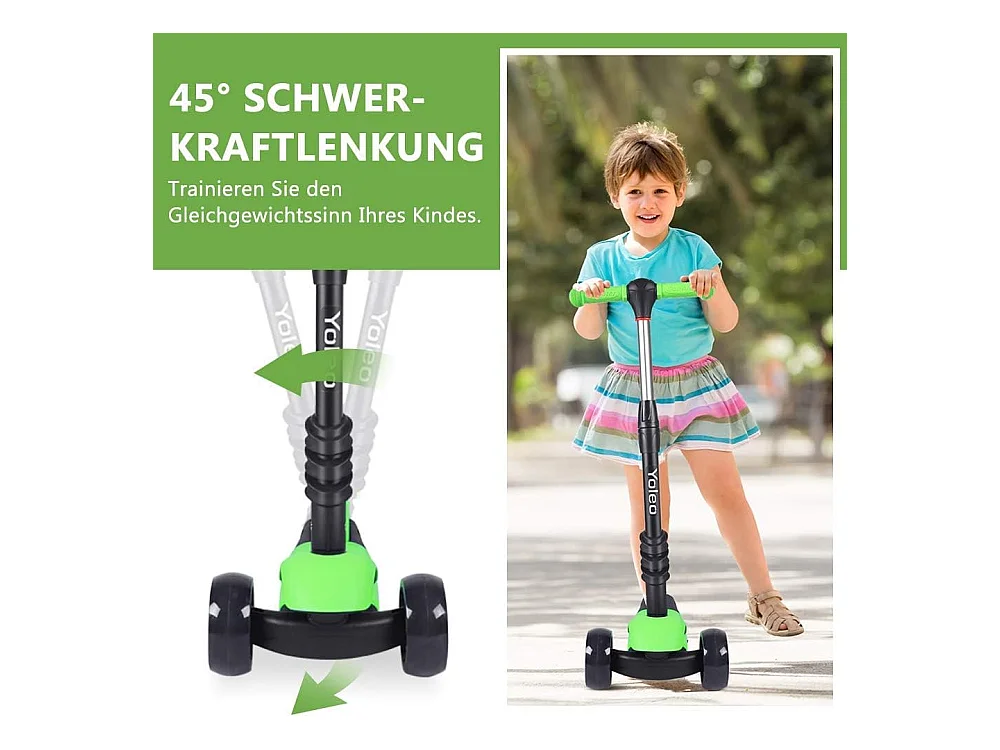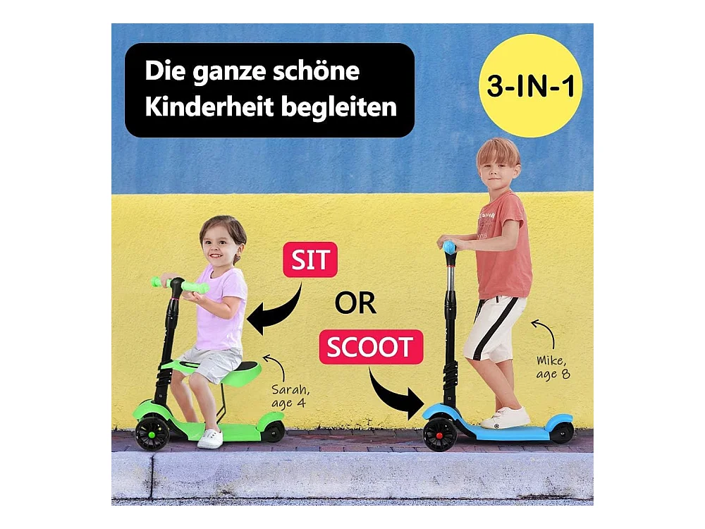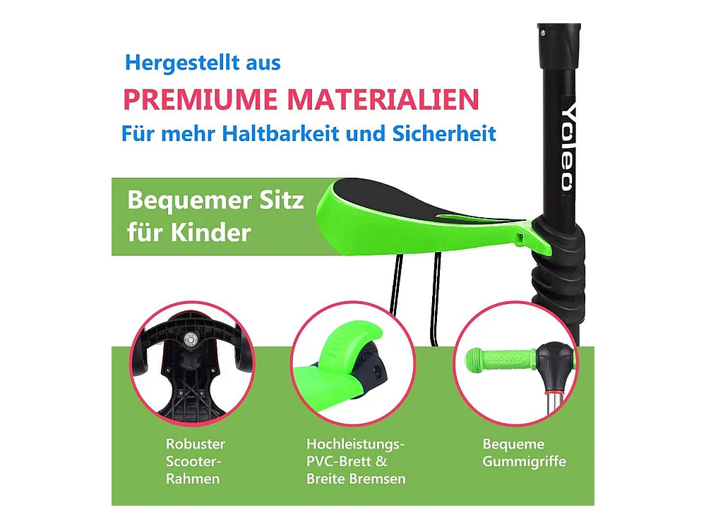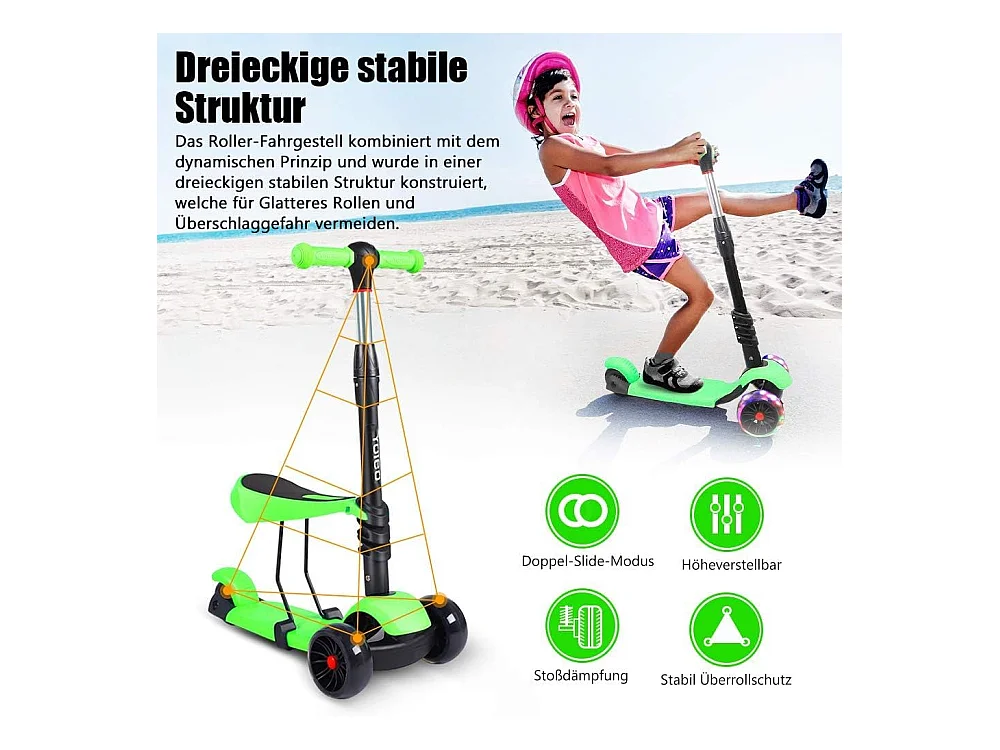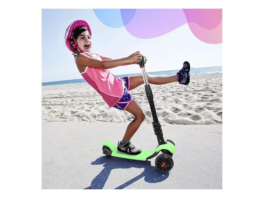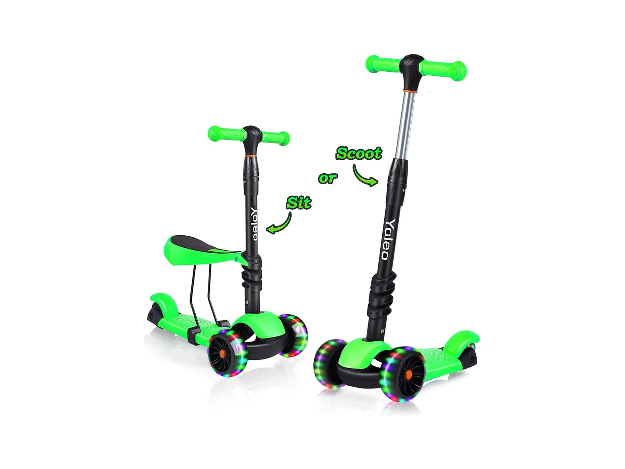 Trottinette 3-en-1 pour Enfant avec Siège Amovible, Grandes Roues LED, Réglable en Hauteur à partir de 2 Ans, vert