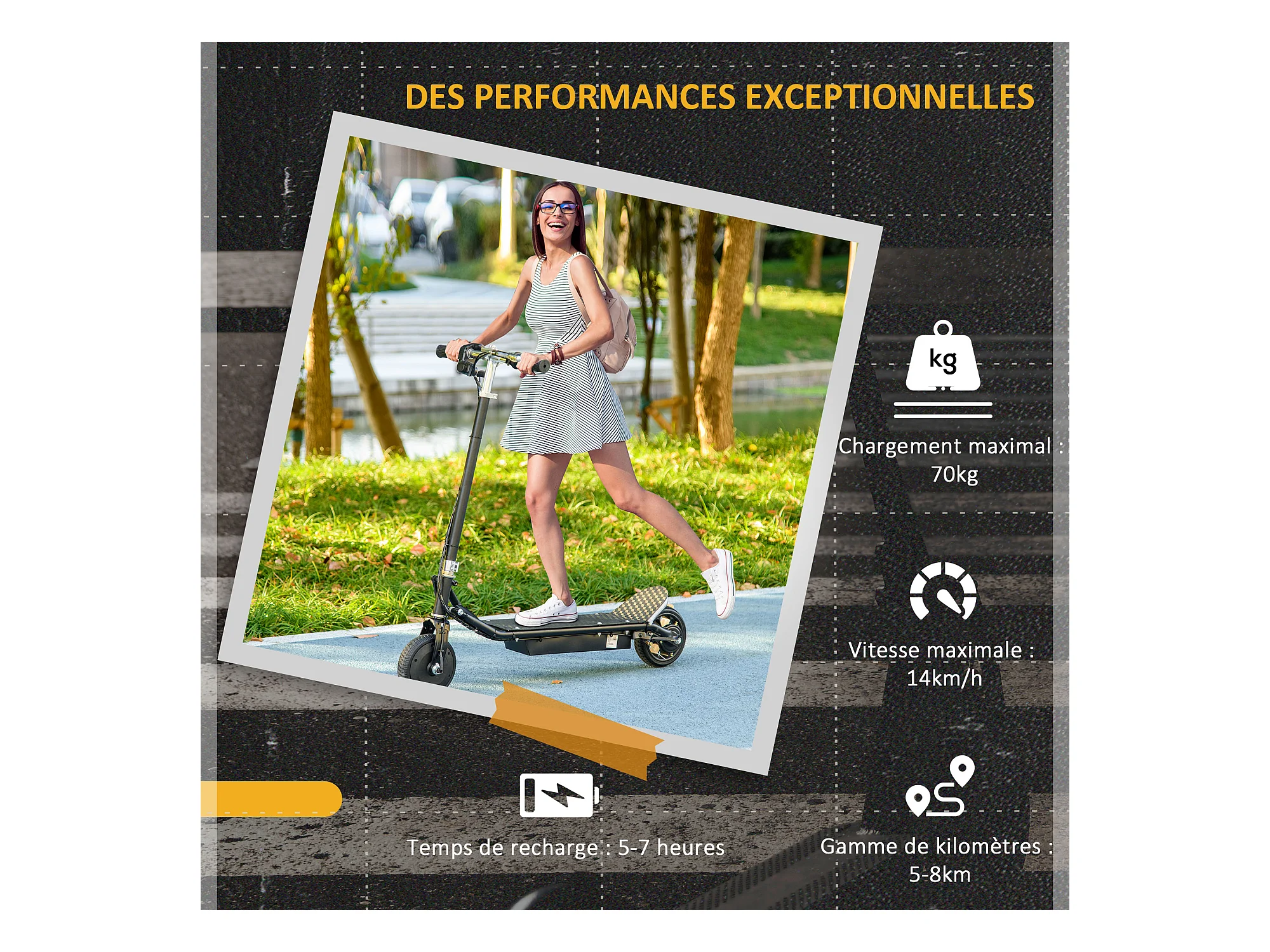 Trottinette électrique 150 W pliable réglable enfant 7-14 ans 14 Km/h max. autonomie 8 Km max. noir