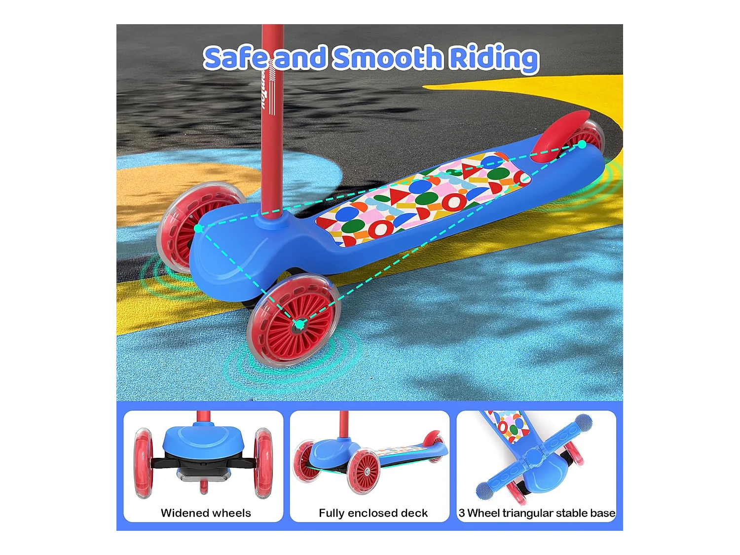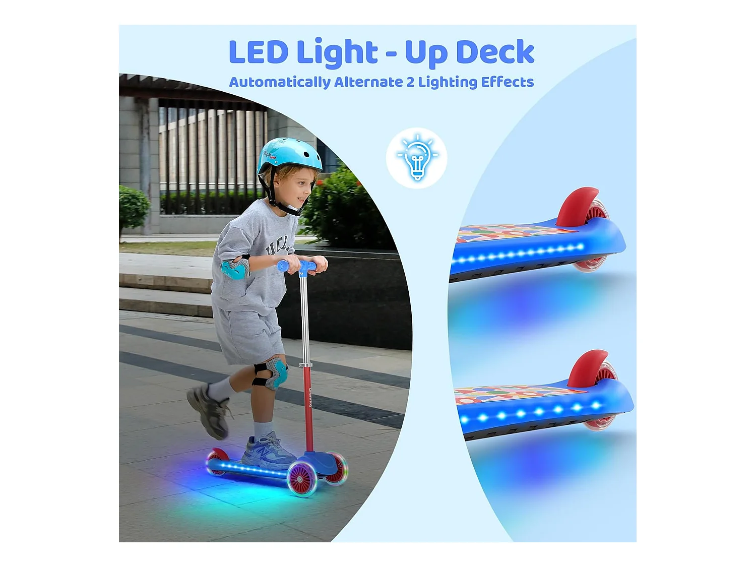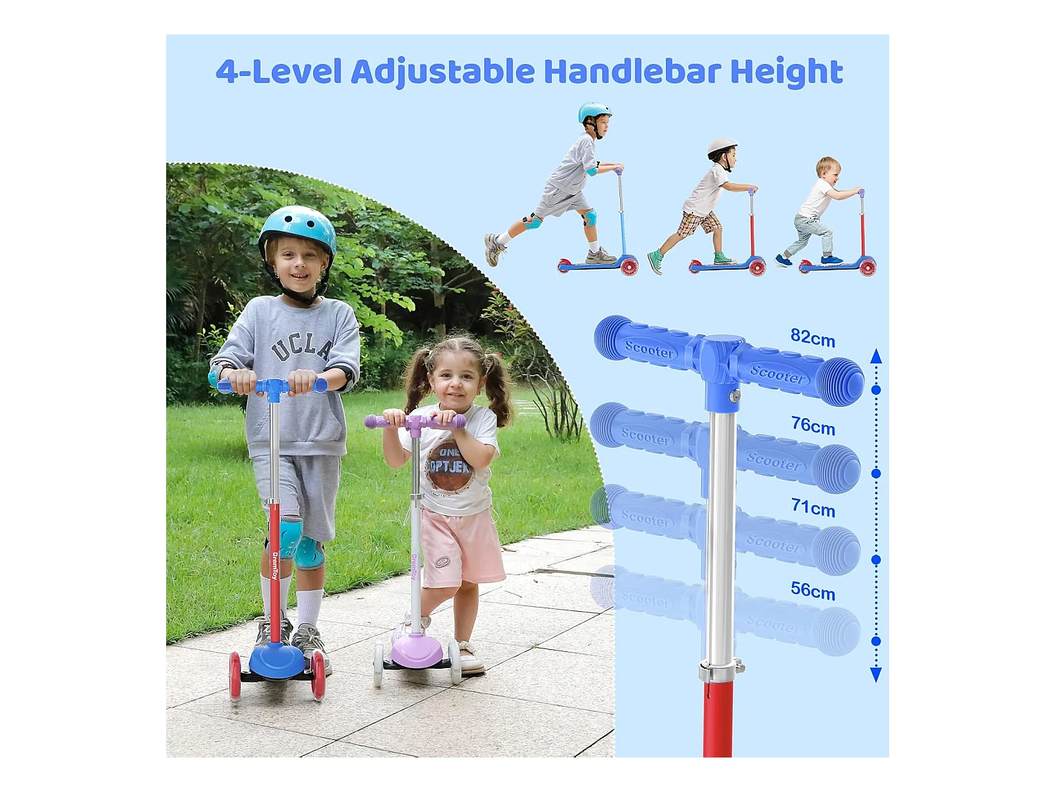 Trottinette Enfant BremToy avec Plateforme Lumineuse et Roues PU LED, 4 Niveaux de Réglage en Hauteur, Légère, pour Débutants de 3 à 8 Ans