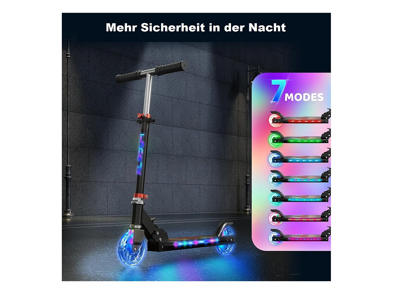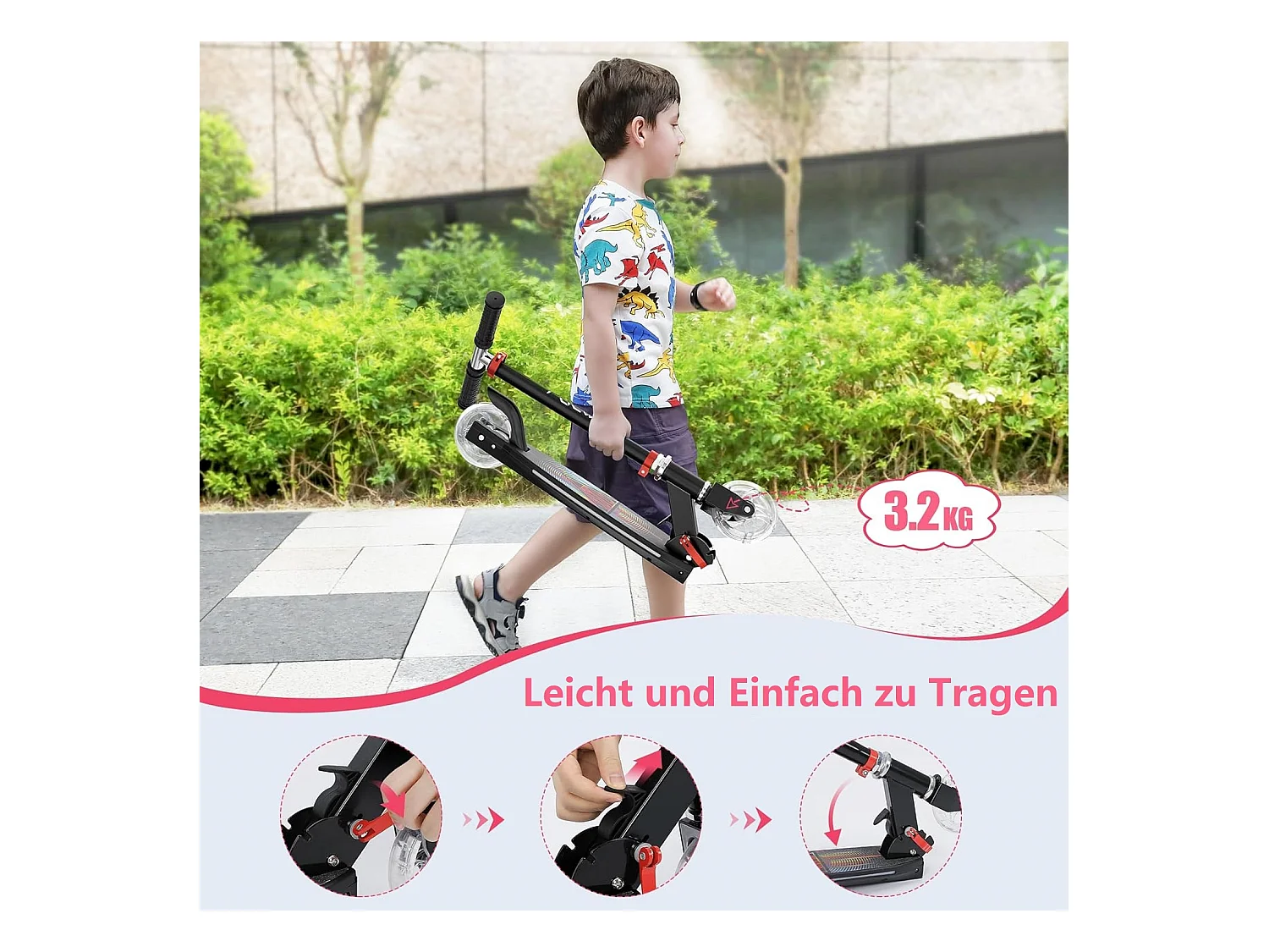 Trottinette Enfant YOLEO avec Roues LED, 4 Positions Réglables en Hauteur, Guidon Pliable, à partir de 3 Ans