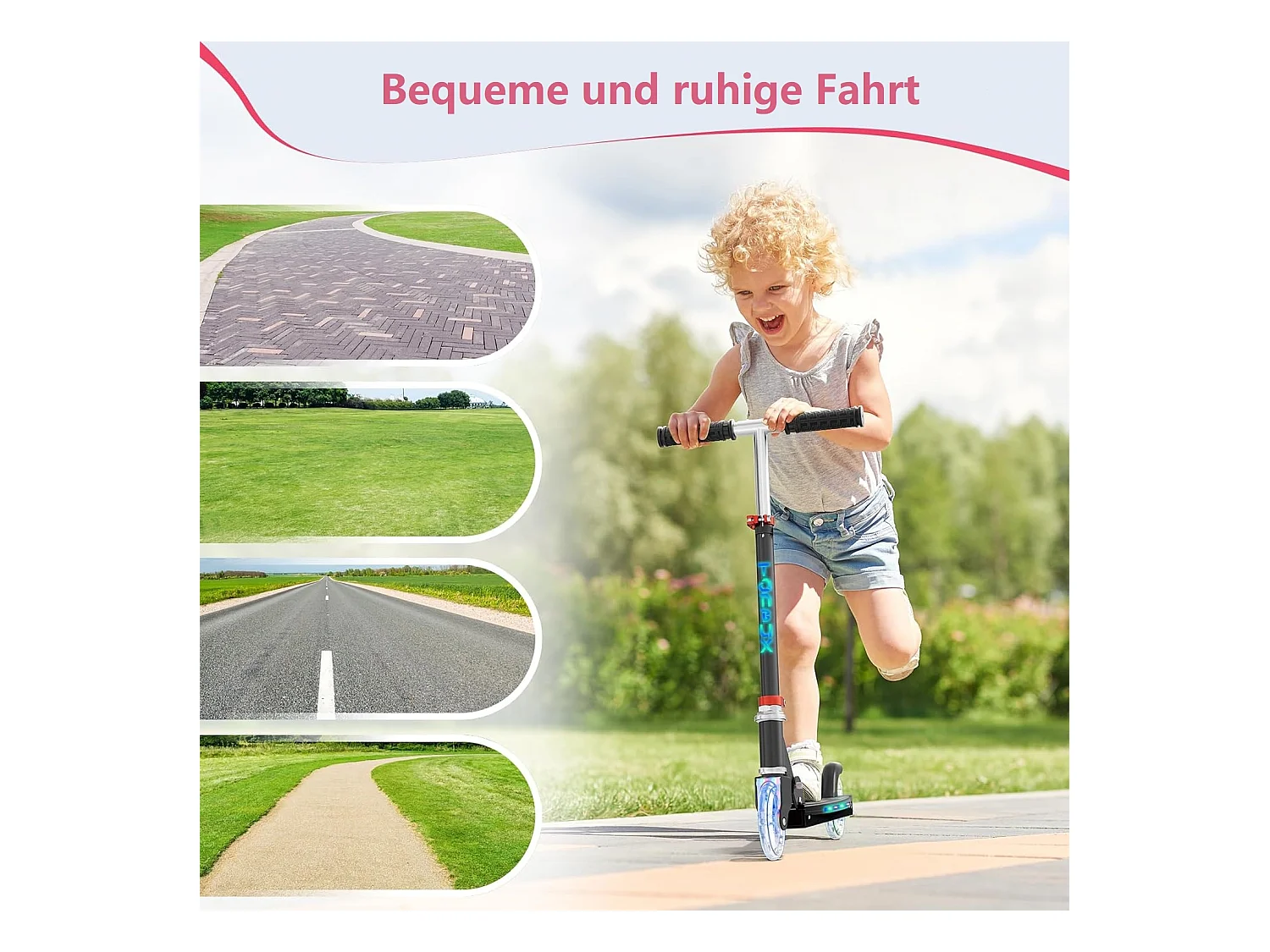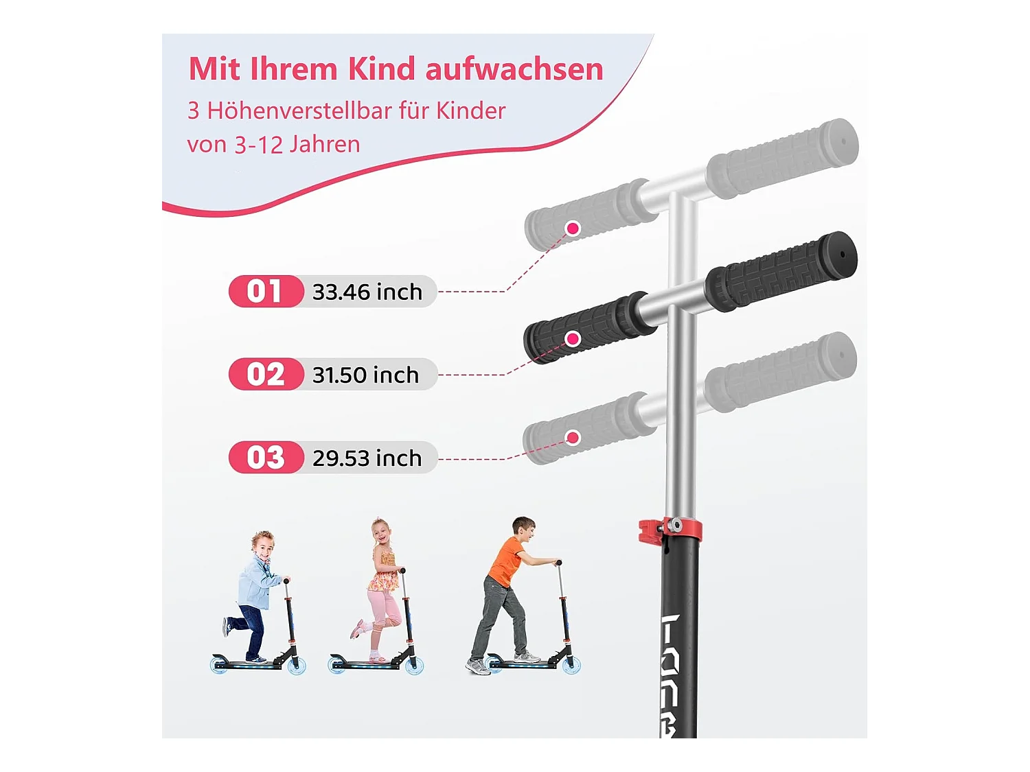 Trottinette Enfant TONBUX avec 2 Roues Lumineuses, Potence et Plateforme, 3 Poignées Réglables en Hauteur, Légère, pour 5-12 Ans