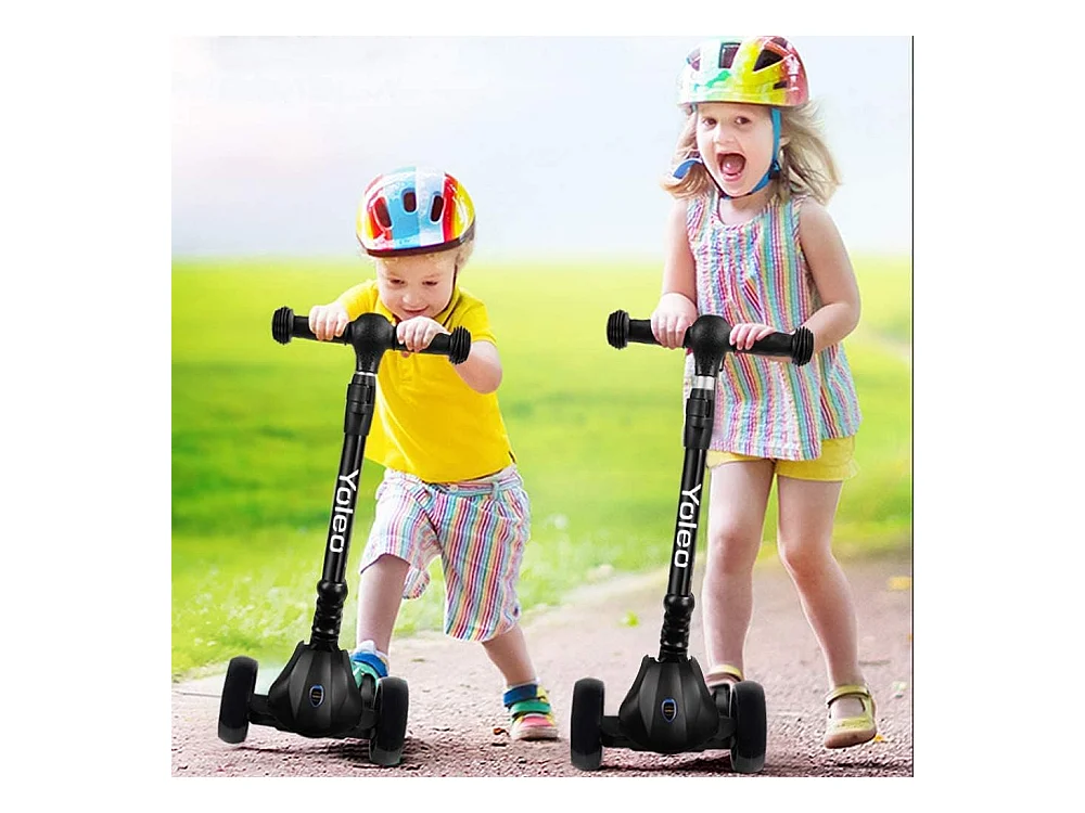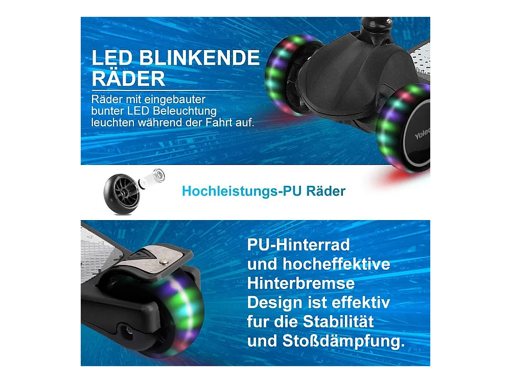 Trottinette Enfant YOLEO avec Roues LED, 4 Positions Réglables en Hauteur, Guidon Pliable, à partir de 3 Ans