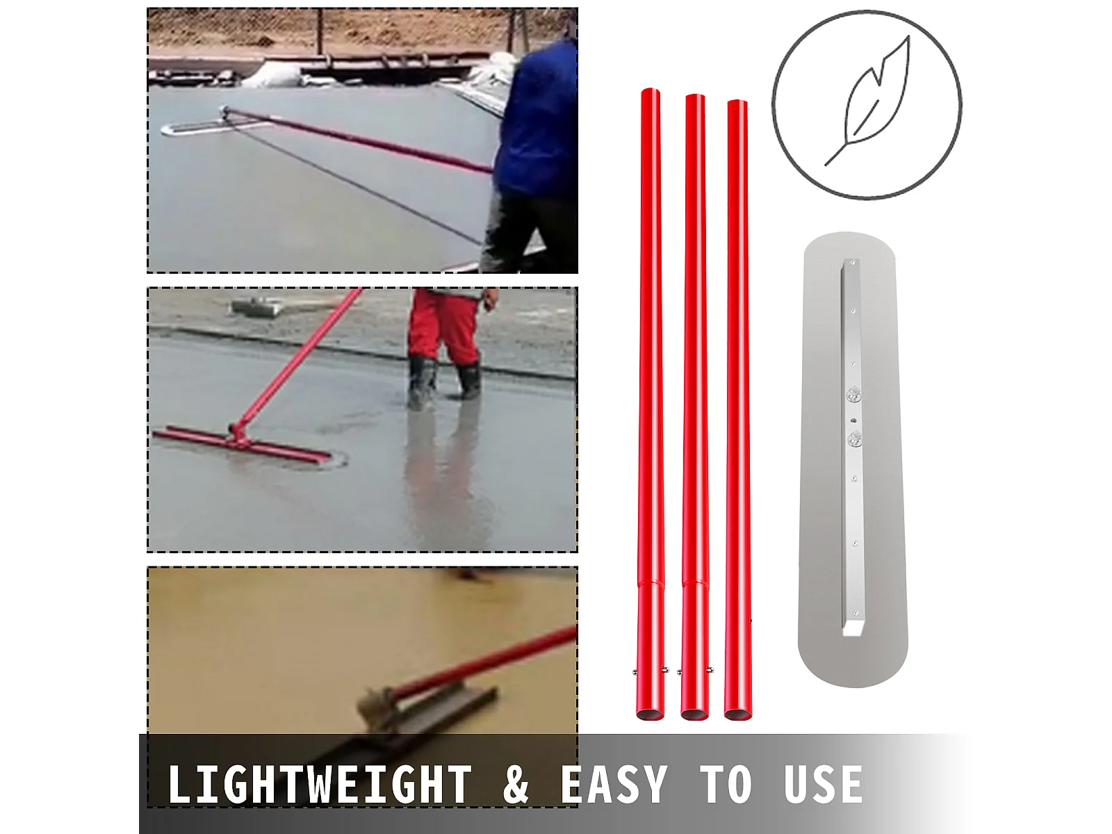 Truelle de Maçon SucceBuy 900x200 Mm,Truelle De Béton en Acier, Truelle Ma?onnerie 3 Poignées de 1.8 M Truelle de Platrage Support Réglable