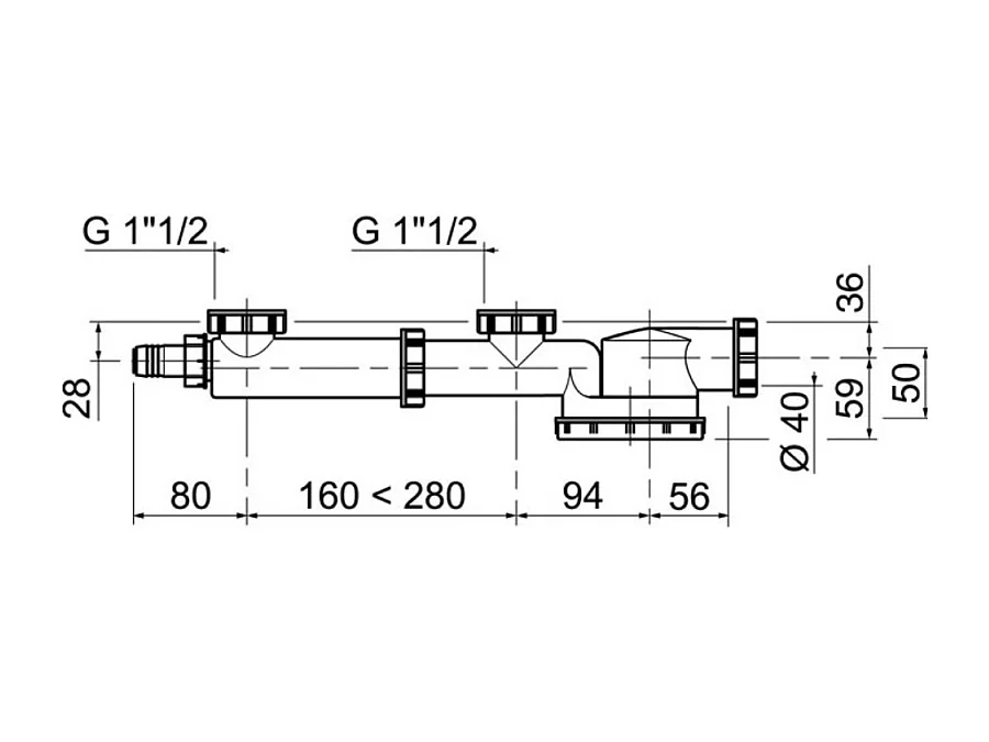 Tubulure de raccordement WIRQUIN Espace avec siphon extraplat intégré pour évier 2 bacs