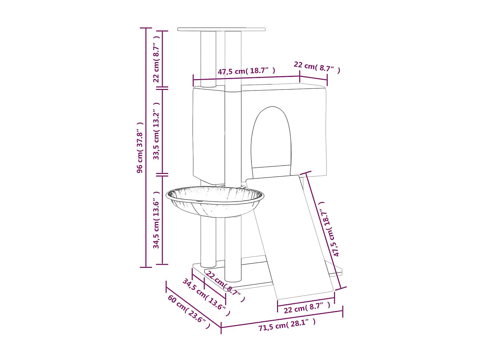 Tugba Arbre à chat avec griffoirs en sisal Gris foncé 96 cm