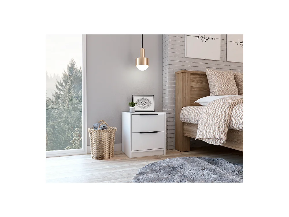 TUHOME Table de Nuit Washington avec Deux Grands Tiroirs, Couleur Blanche
