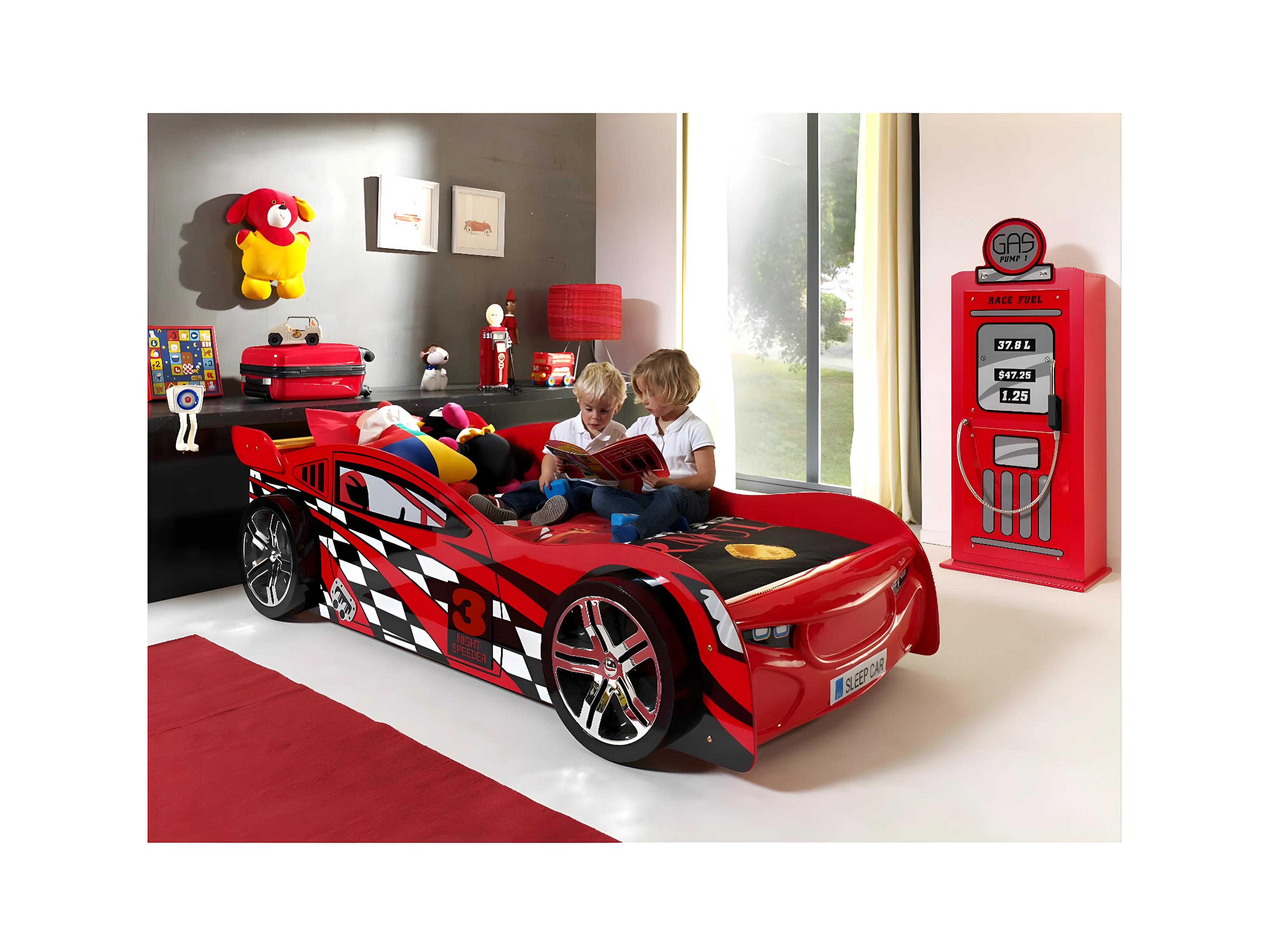 TURBO - Lit Voiture de Course 90x200cm Rouge et Damier