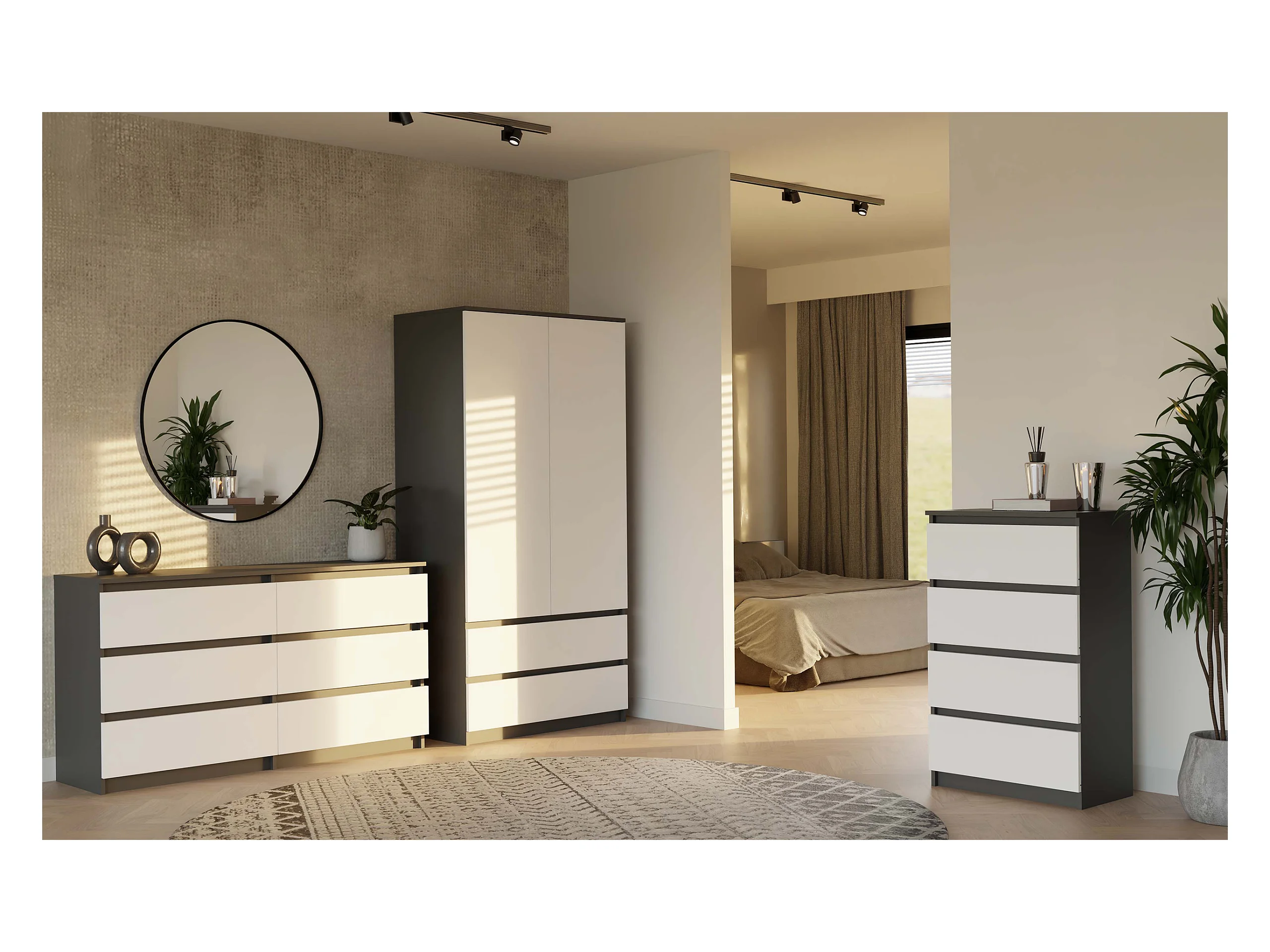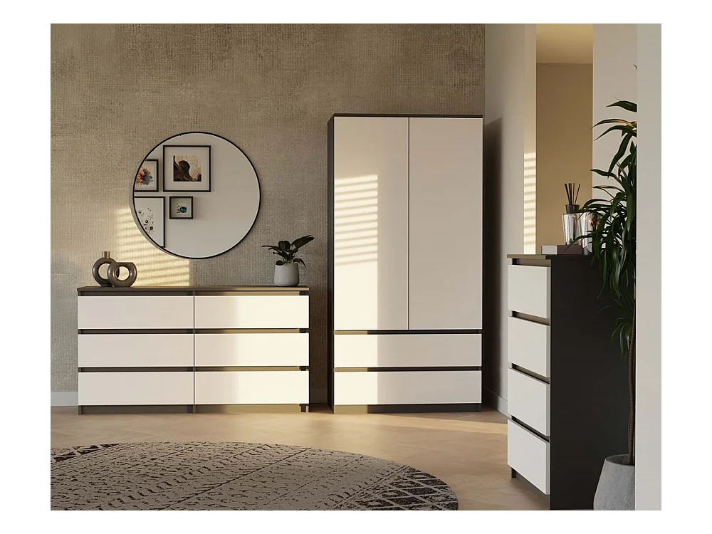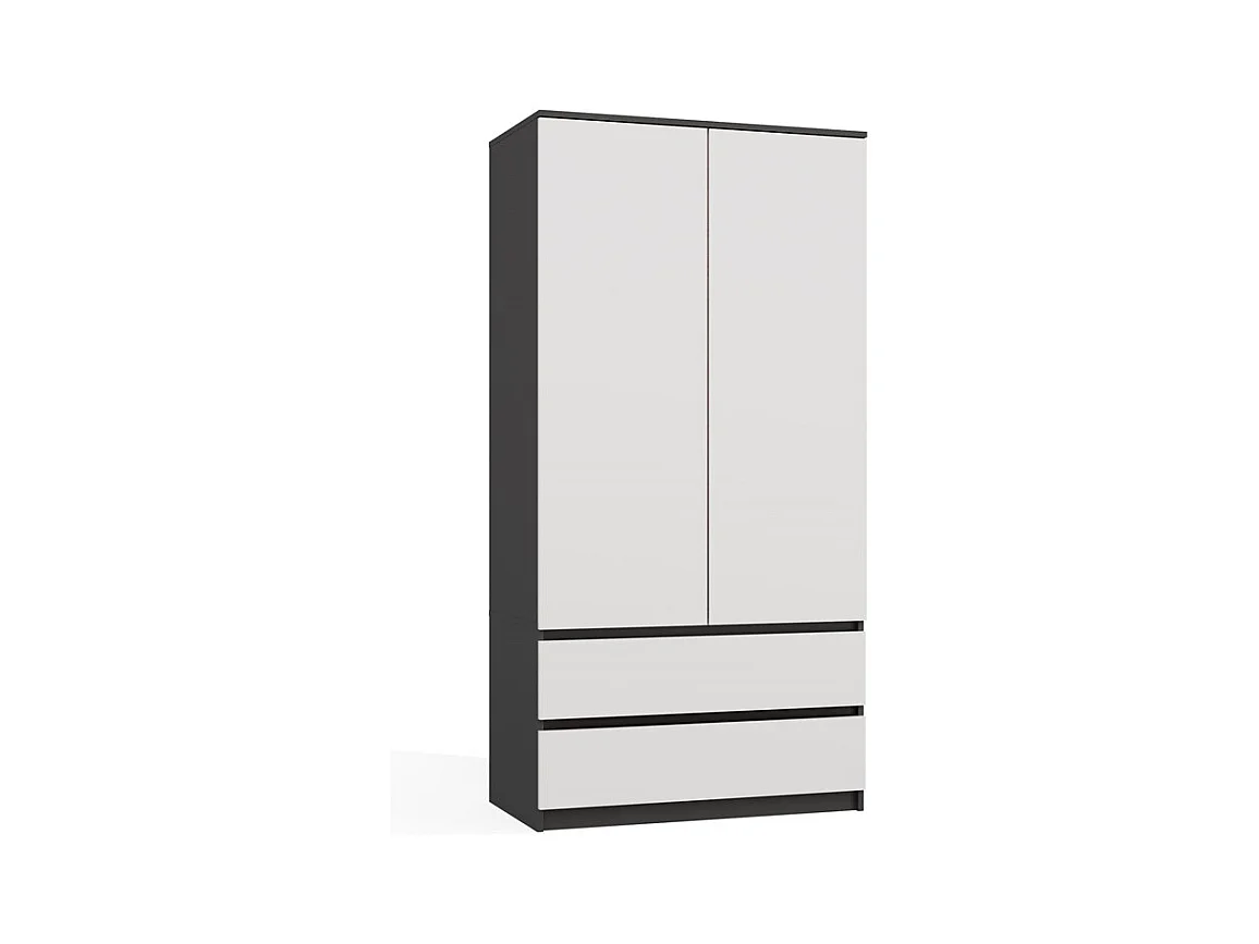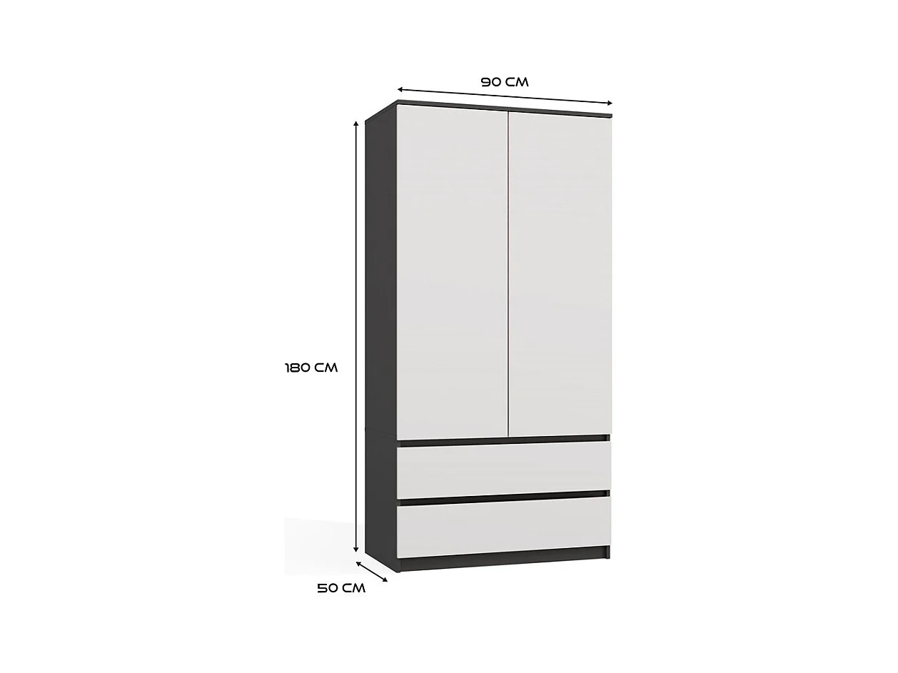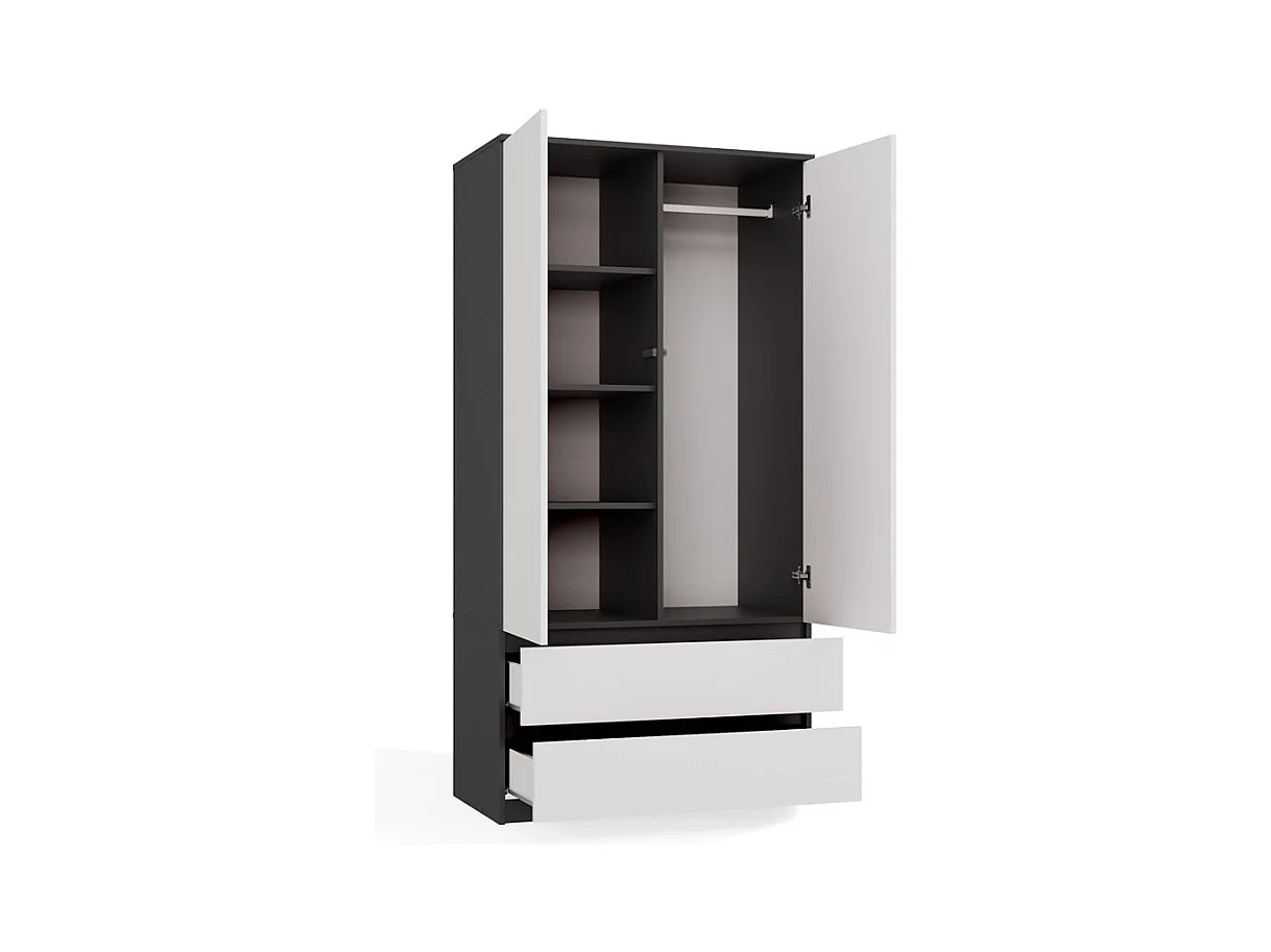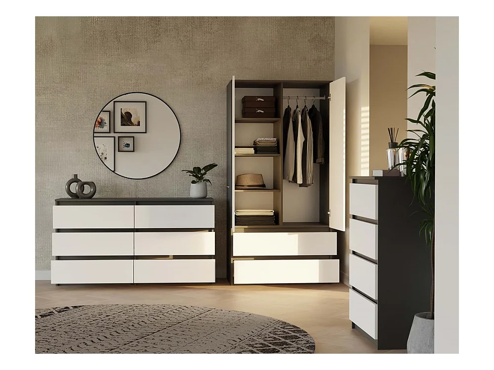 TURIN - Armoire de chambre - Penderie multifonctions - 2 portes + 2 tiroirs - Dressing - Anthracite et Blanc