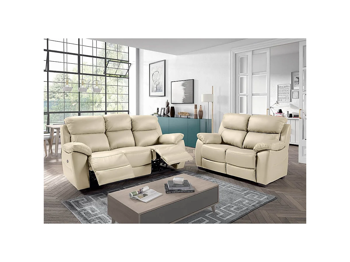 TURIN - Canapé Relax Manuel 3 Places Crème