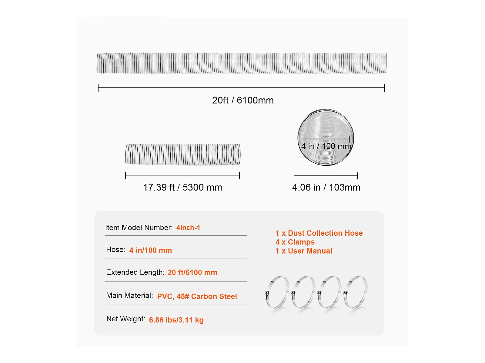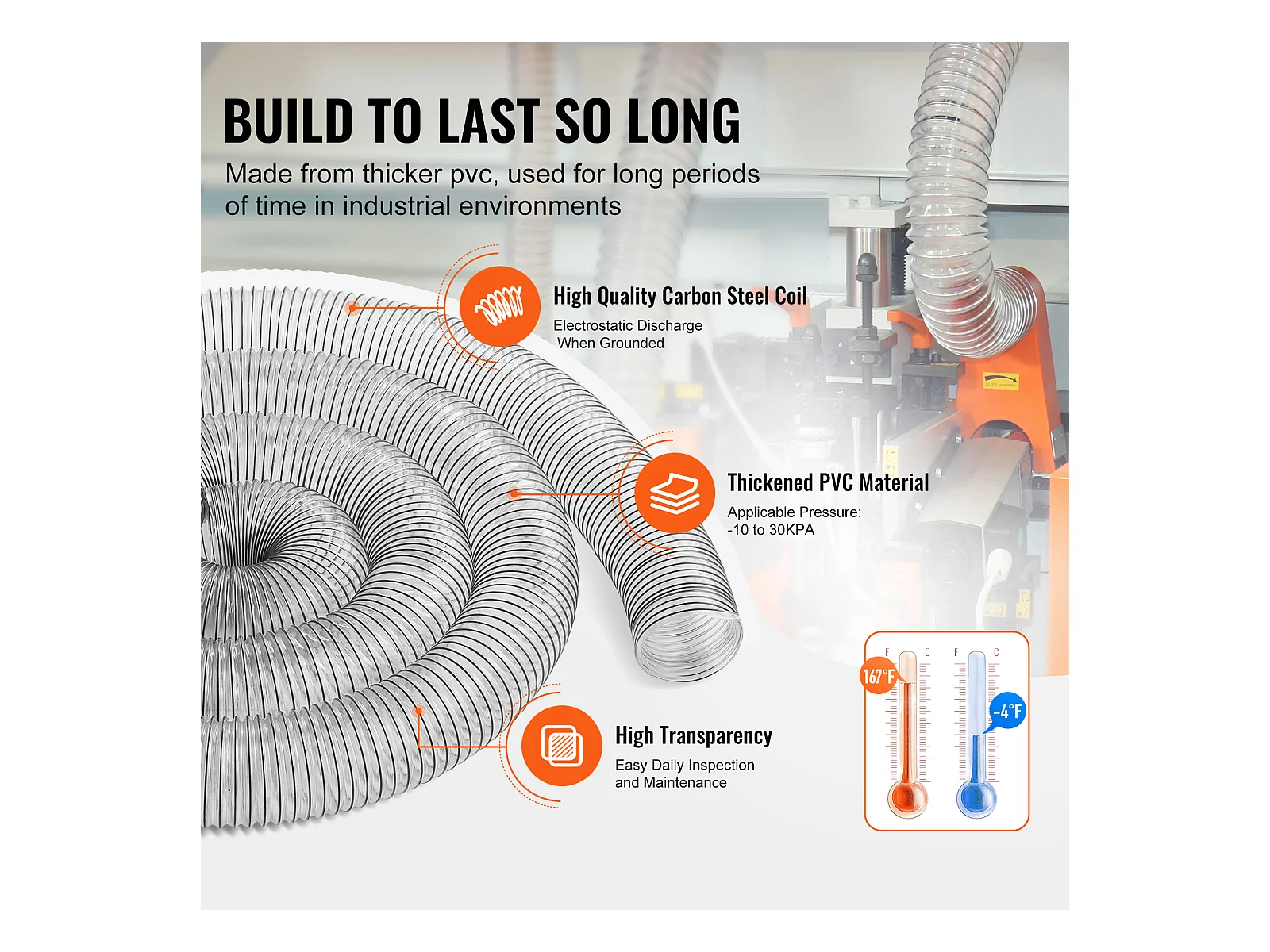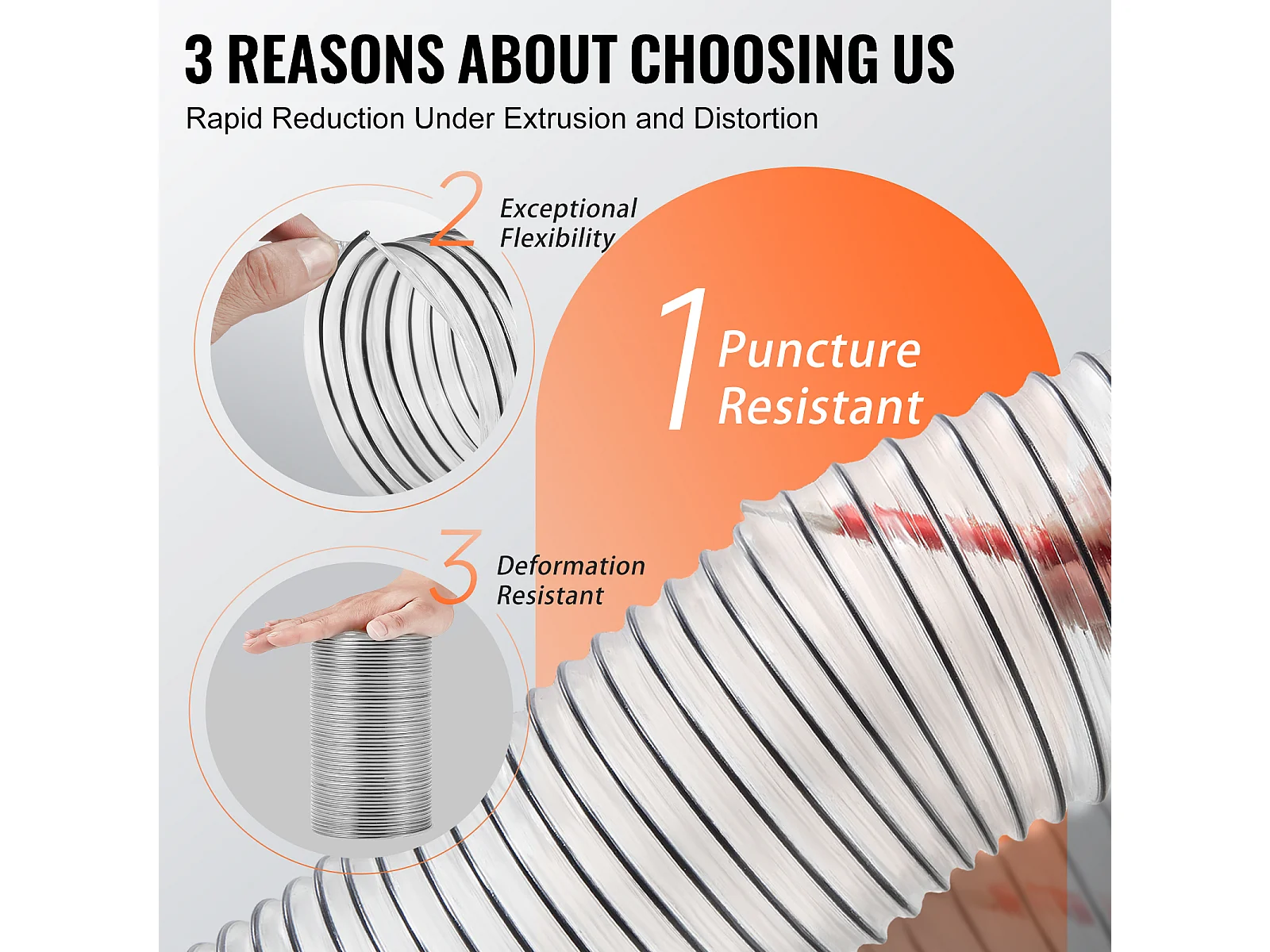 Tuyau d'Arrosage, SucceBuy Tube Collecteur de Poussière 10 cm x 610 cm, PVC Flexible, Résistant aux Piqûres, Transparent
