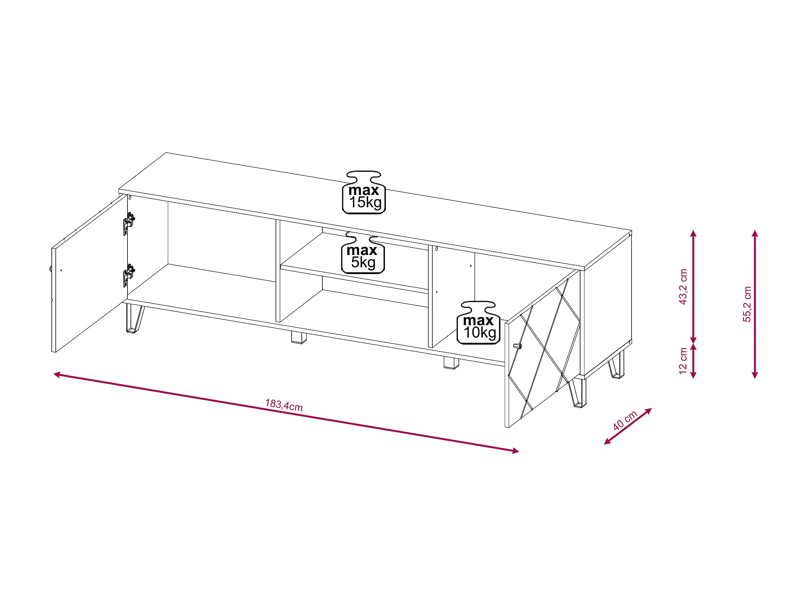 TV Tabaco à deux portes à simple encastrement artisanal Bilbao avec façades en graphite