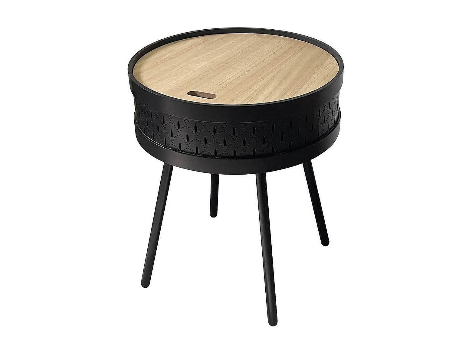 TYA - Table d'Appoint Noire avec Coffre Plateau Effet Bois