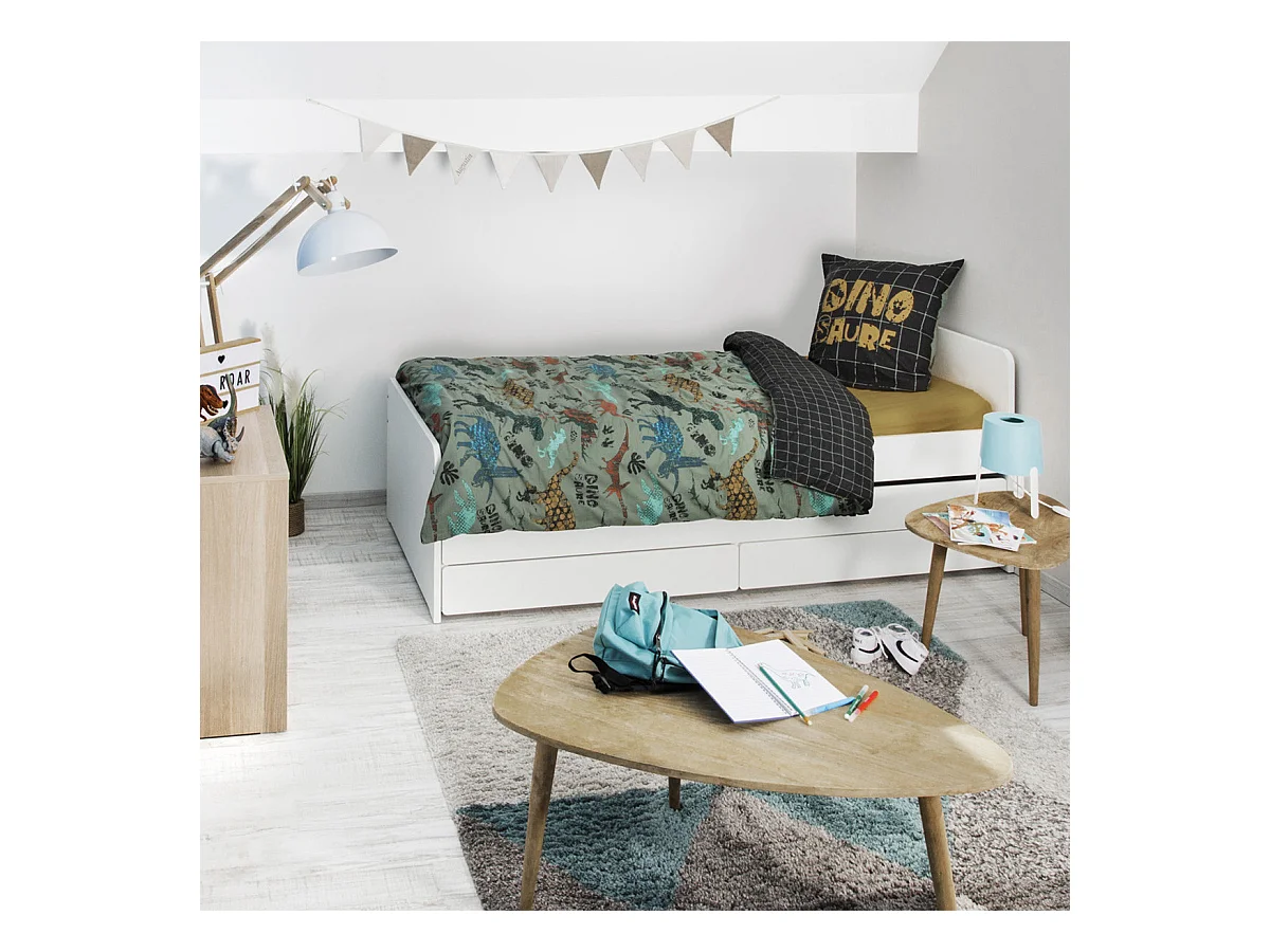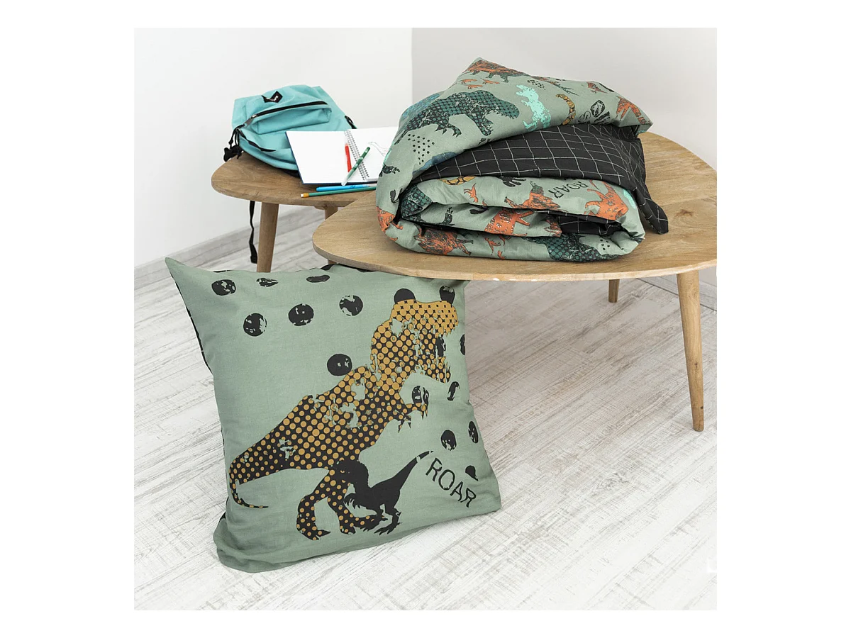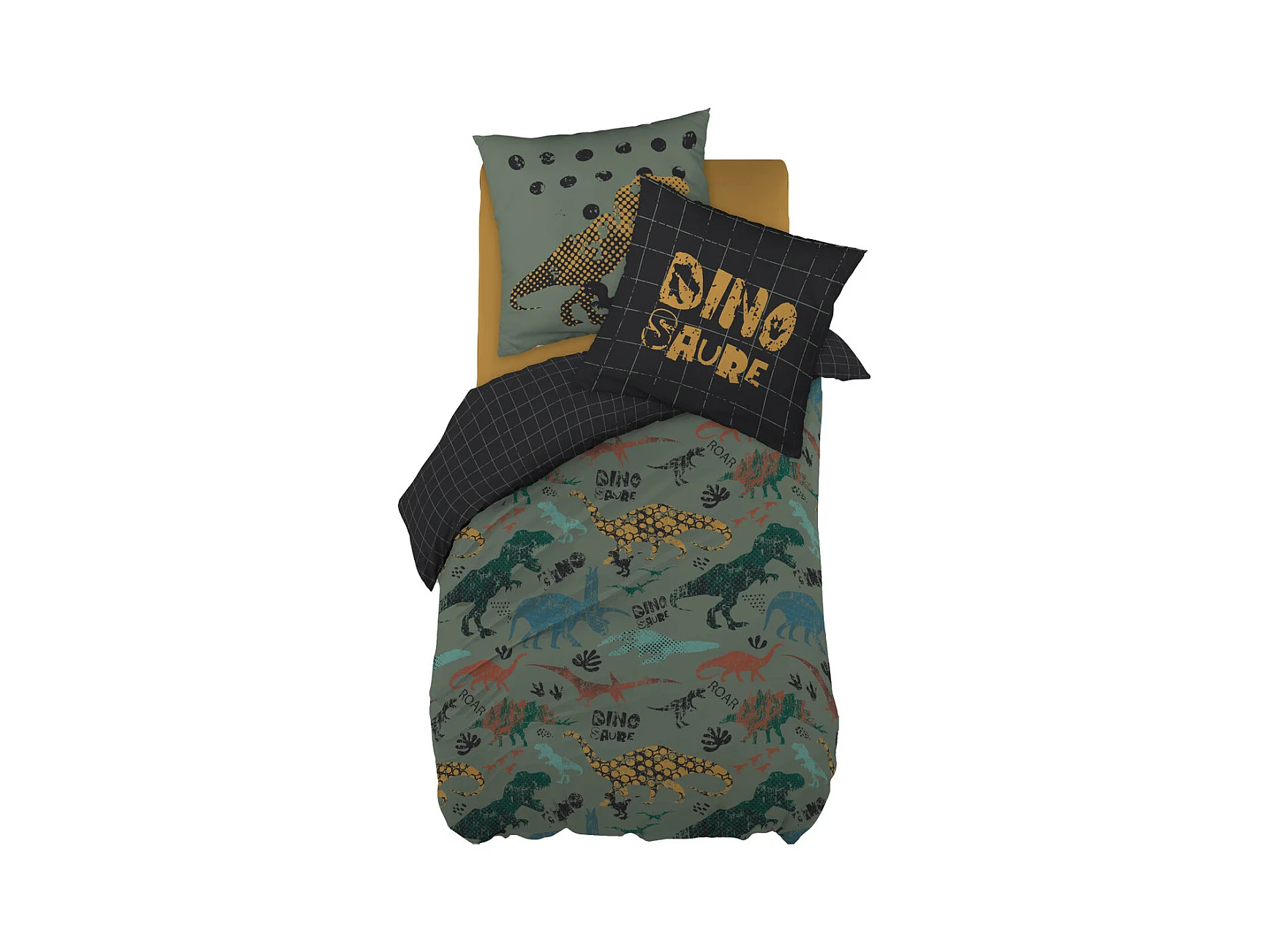 TYREX - Parure de Lit Coton Motif Dinosaures Housse de Couette 140x200cm + Taie d'Oreiller